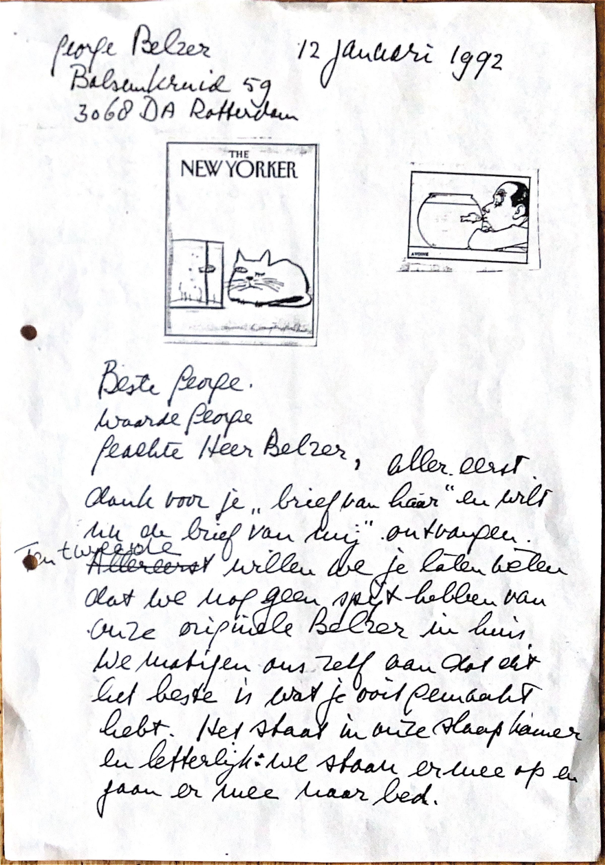 Aller eerst dank voor je "briefkaart van haar" en wilt nu de brief van mij ontvangen. Ten tweede willen je laten weten dat wij nog geen spijt hebben van onze originele Belzer in huis.