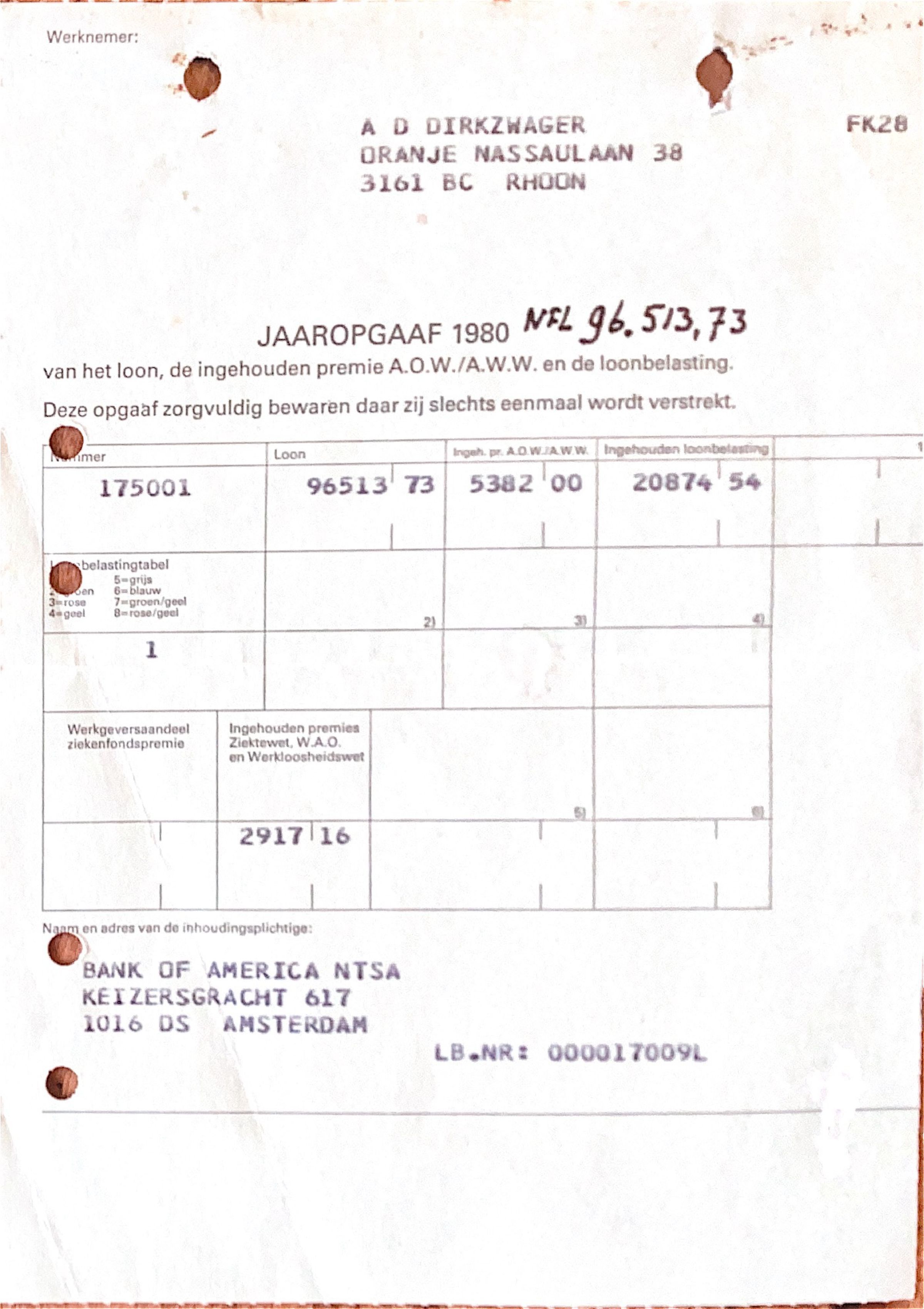 ADD was in 1980 werkzaam bij de Bank of America NT & SA Rotterdam branch