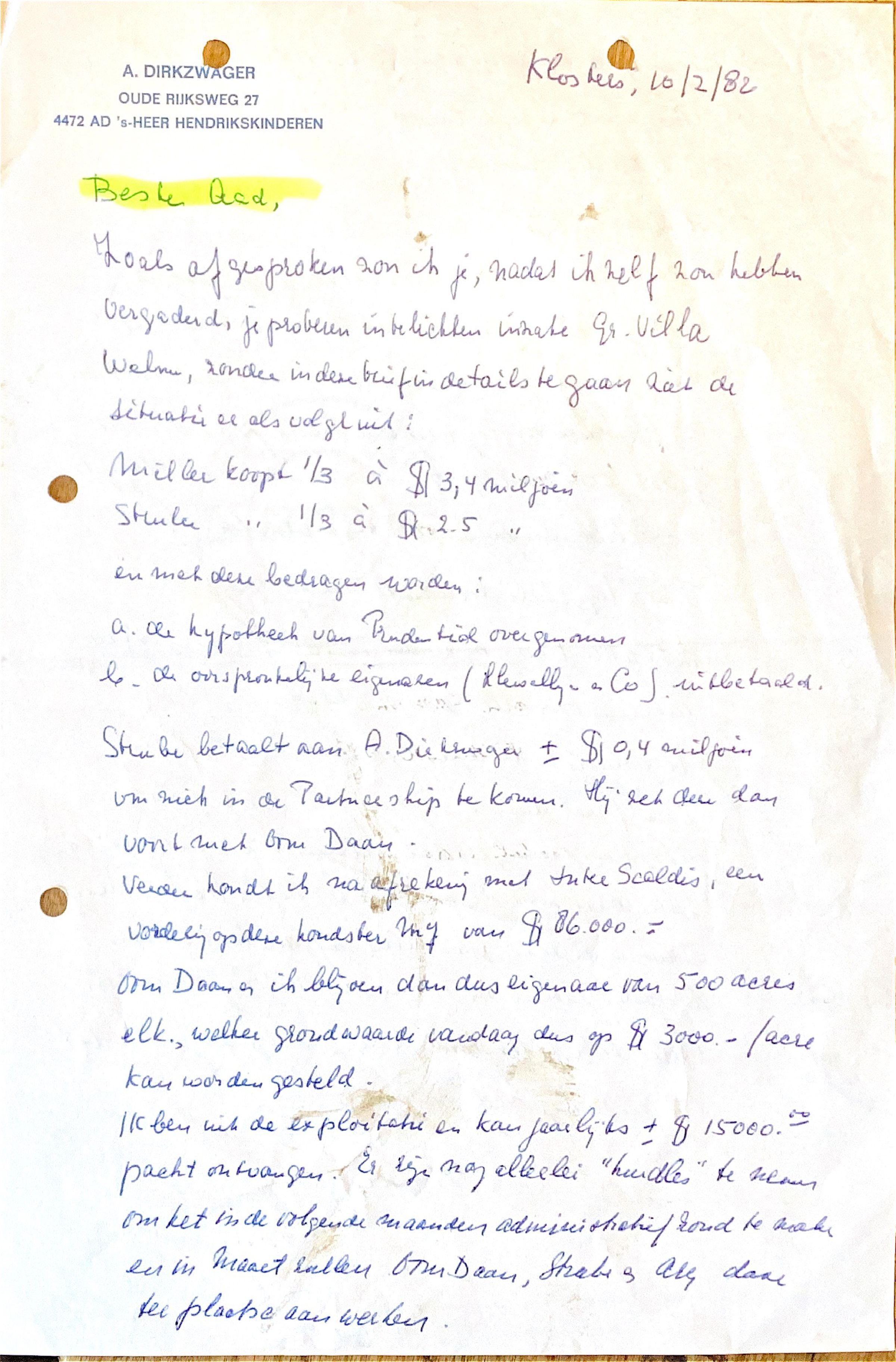 Zoals als afgesproken zou ik je, nadat ikzelf zou hebben vergaderd, je proberen in te lichten in zake Green Villa Farms. Welnu, zonder in de brief in details te gaan, ziet de situatie er als volgt uit: