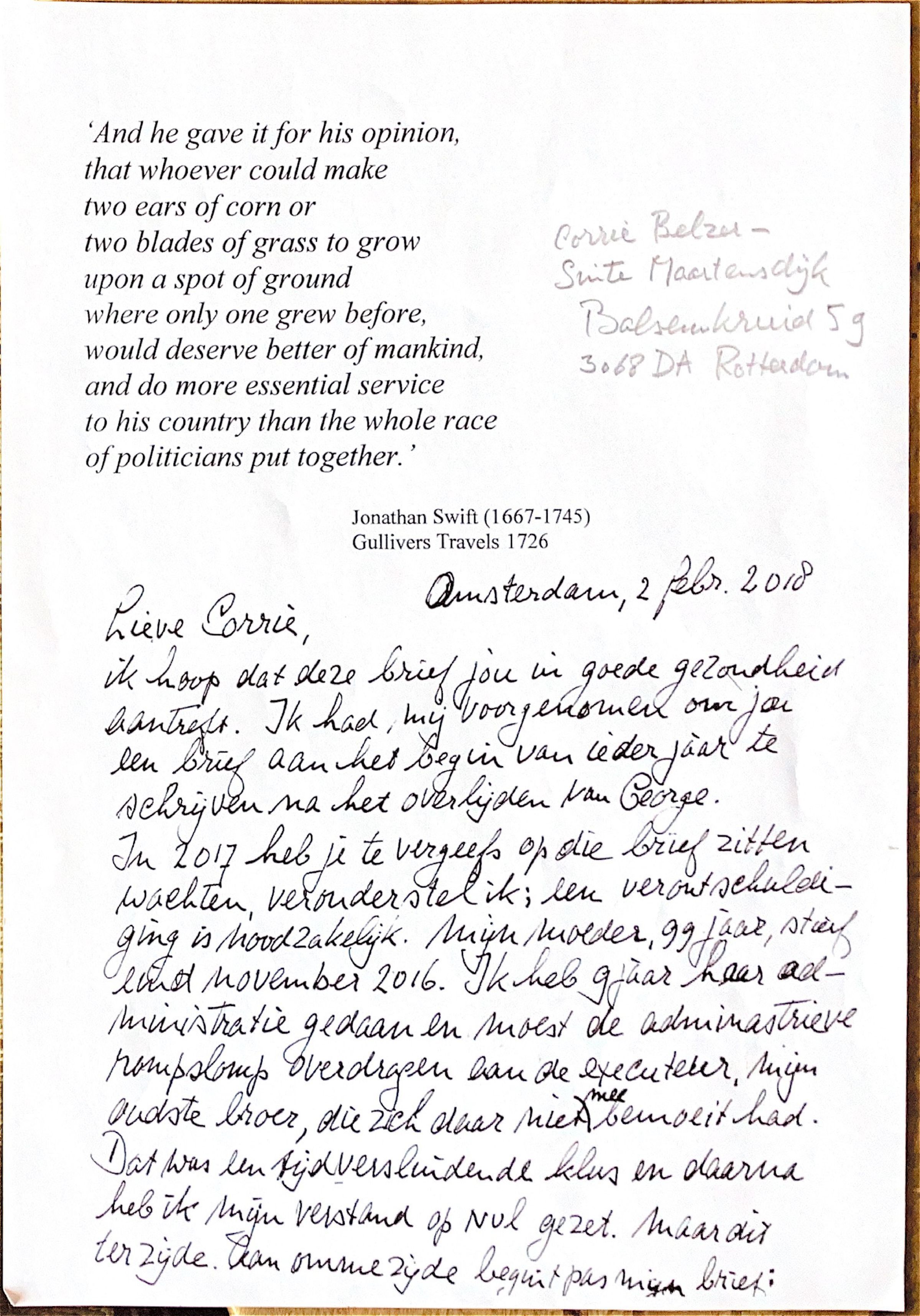 2018-02-02 Jaarlijkse brief aan Corrie Belzer