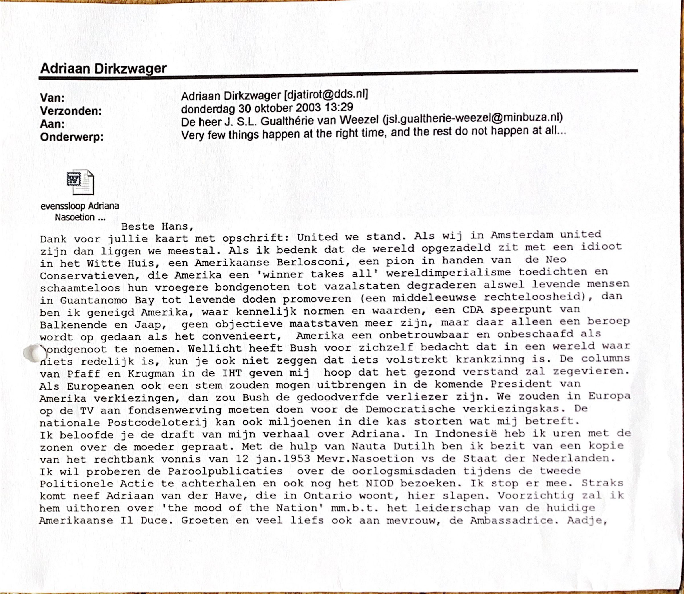 2003-10-30 Mail aan Hans Guathérie v. Weezel.