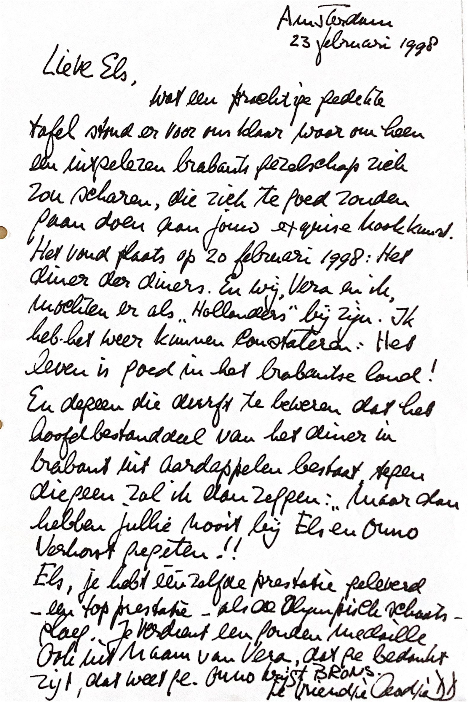 Het vond plaats op 20 februari 1998: Het diner der diners. En wij, Vera en ik. mochten er als "Hollanders" bij zijn. Ik heb het weer kunnen constateren: "Het leven is goed in het Brabantse land !"