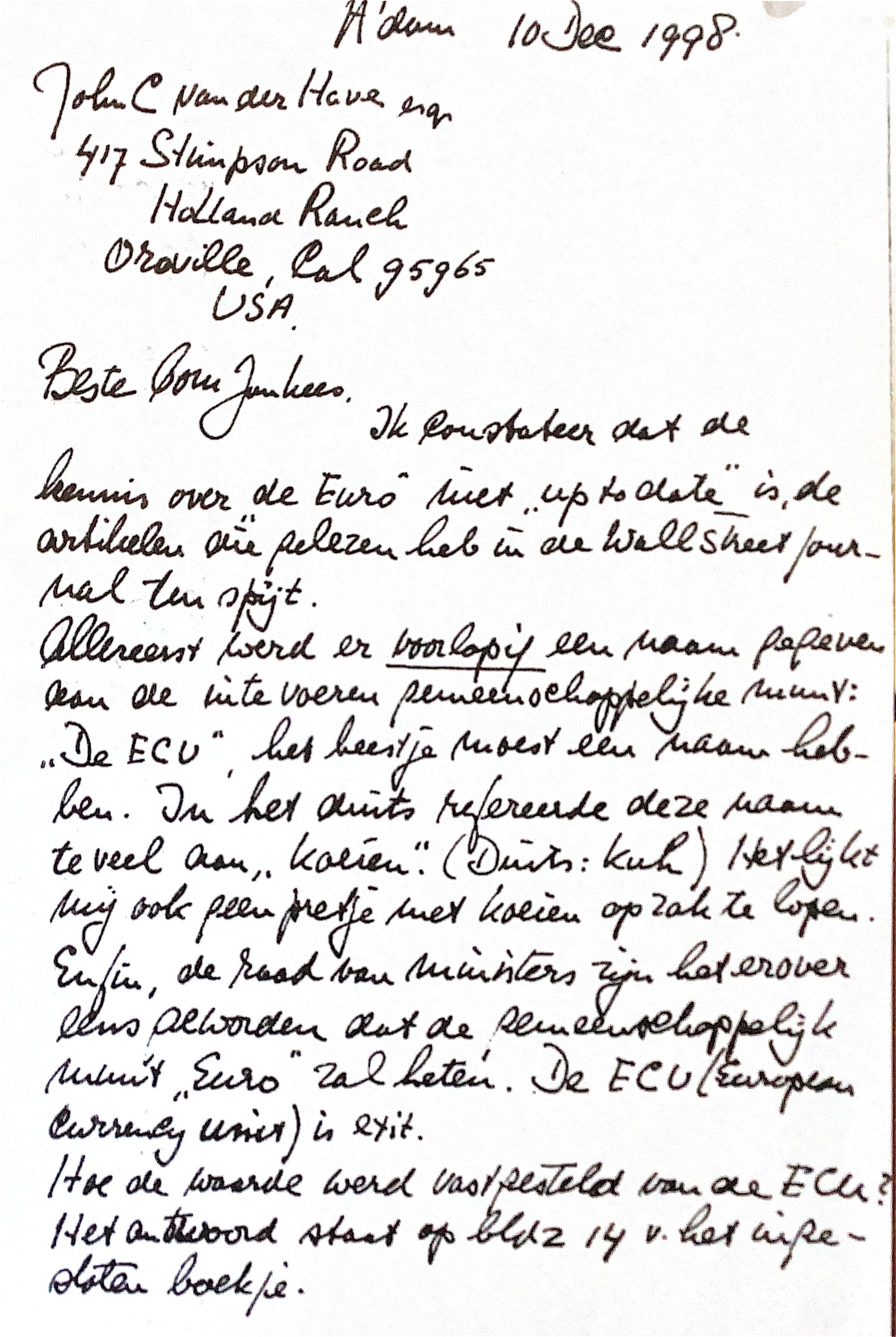 Allereerst werd er een voorlopige naam gegeven aan de in te voeren gemeenschappelijke munt: "de ECU." Het beestje moest een naam hebben. In het Duits refereerde ECU te veel aan koeien ( Duits: Kuh). Het lijkt mij ook geen pretje om met koeien op zak te lopen,