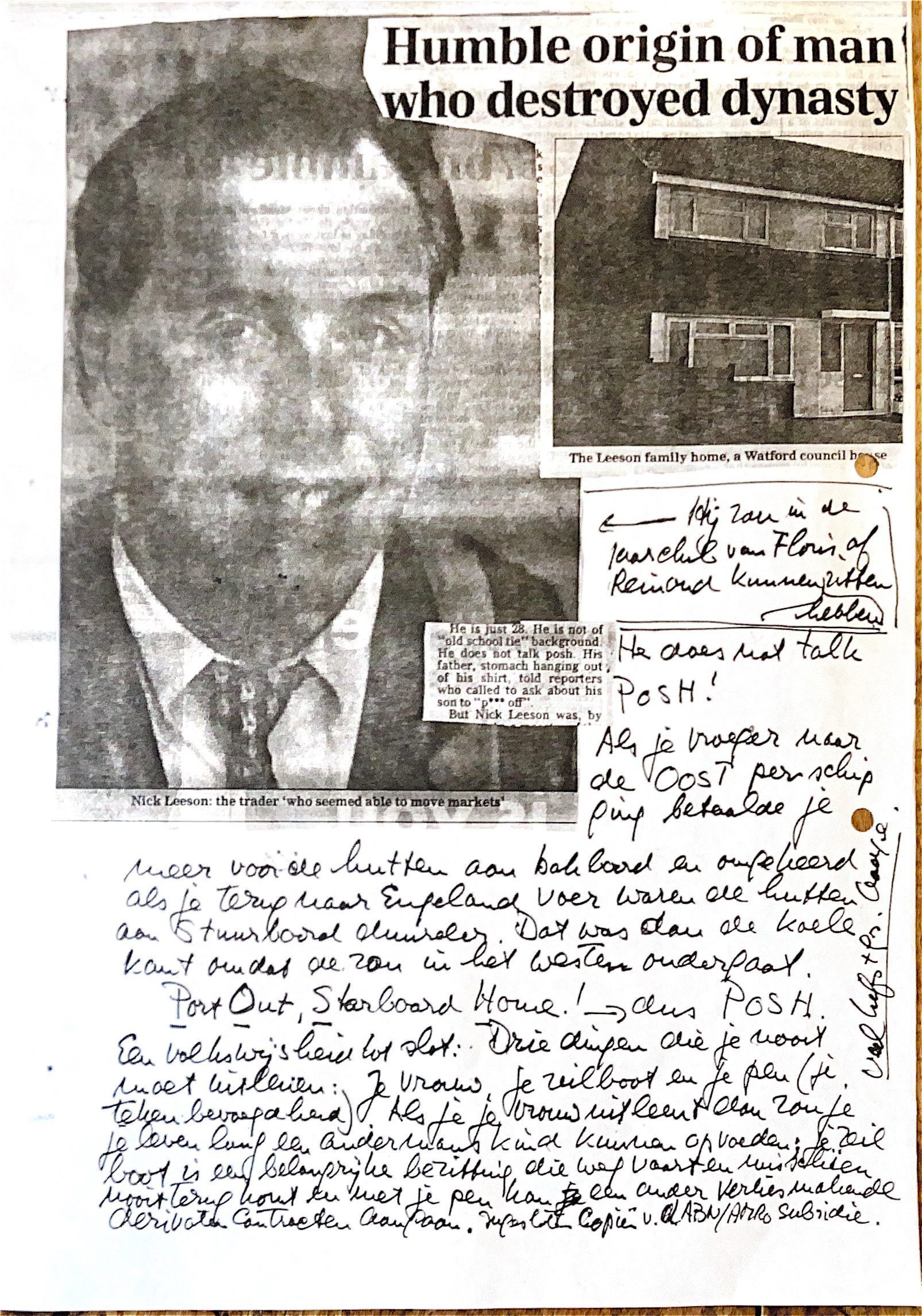"The man alleged to have brought down Baring brothers Bank is a product of a modest council house on an estate in Watford Herts and an education which saw him fail A level mathematics" einde citaat. Dit kunnen allen Engelsen zo beschrijven. Wie voelt zich aangesproken? Al die eenvoudige lieden, die in 'Council' huizen wonen, moeten maart tevreden zijn met hum beperkte verantwoordelijkheden en gelukkig zijn met hum proletarisch bestaan.