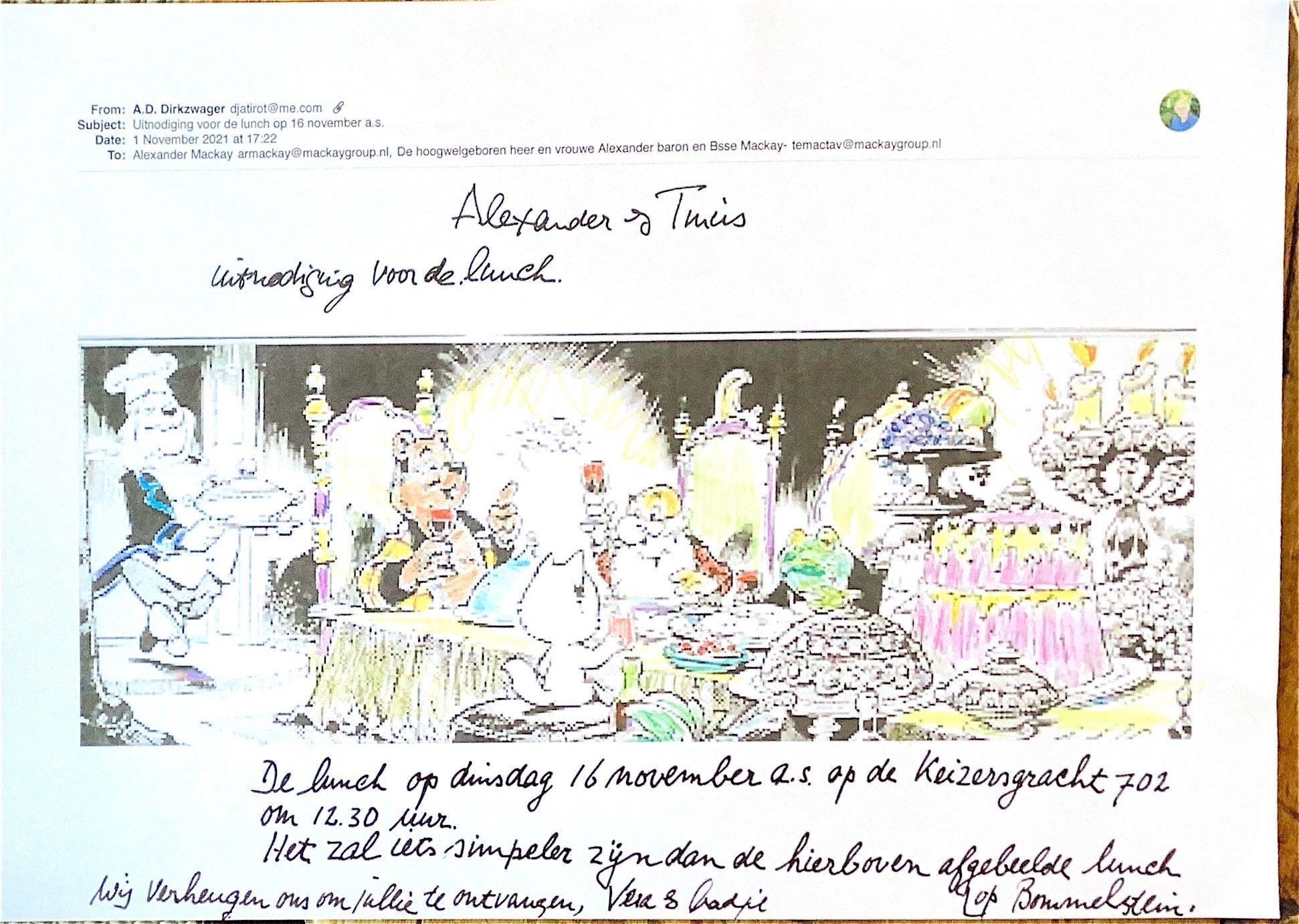 2021-11-01 Lunch-uitnodiging voor Alexander & Tinus Mackay.