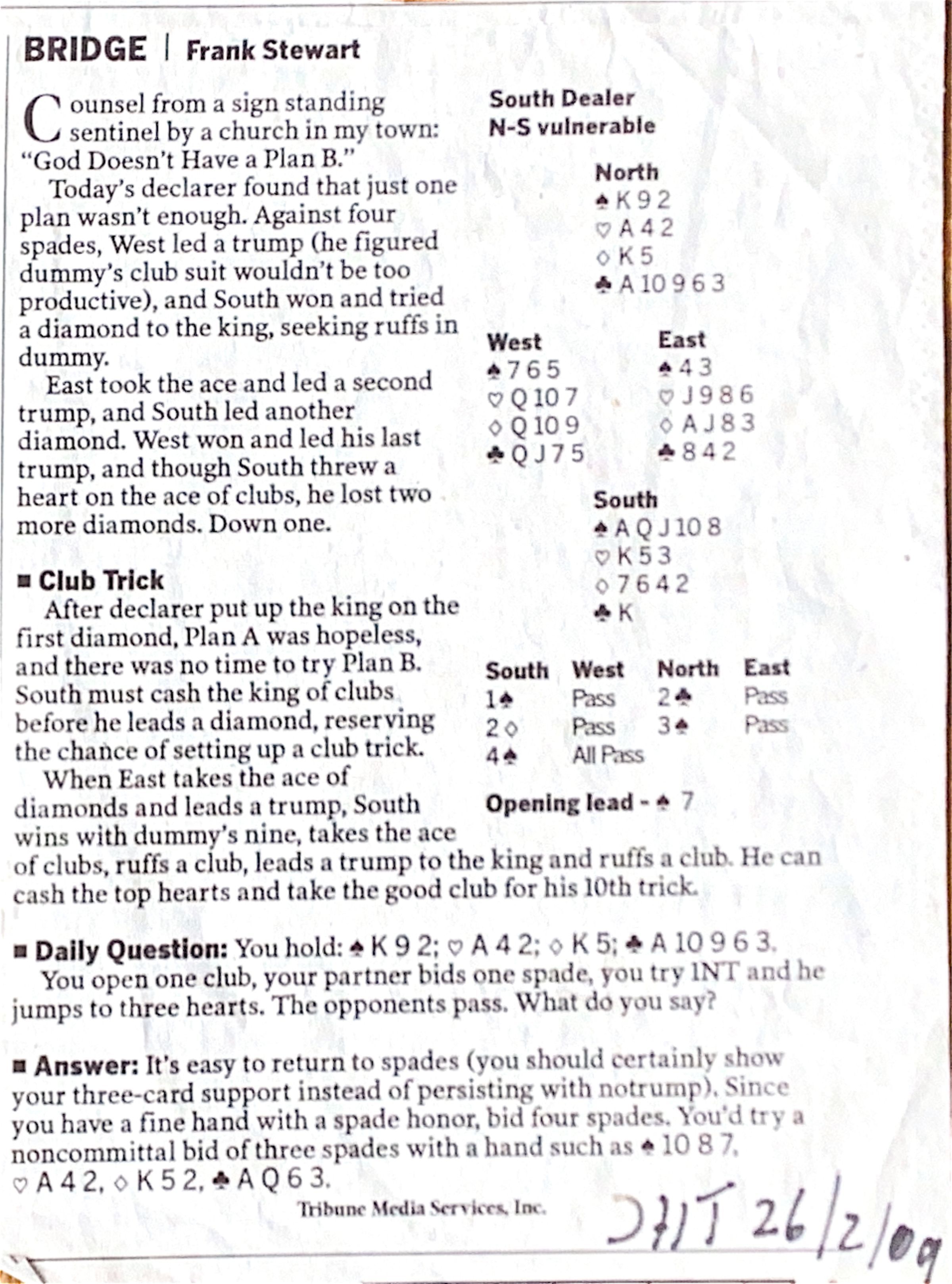 2009-02-26 Int Herald Tribune een analyse van een bridge-spel..
