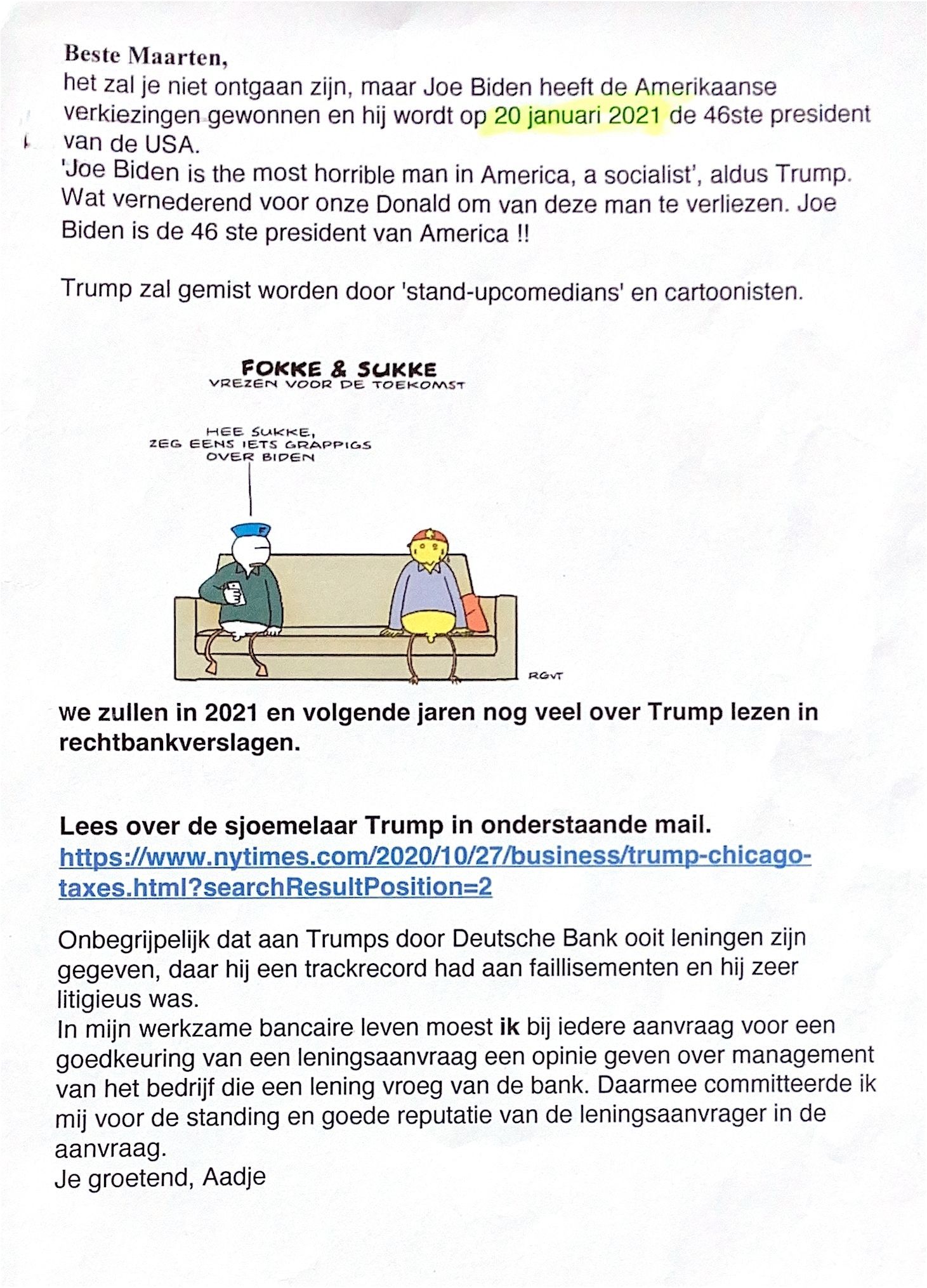 Lees over de sjoemelaar Trump in onderstaande mail.