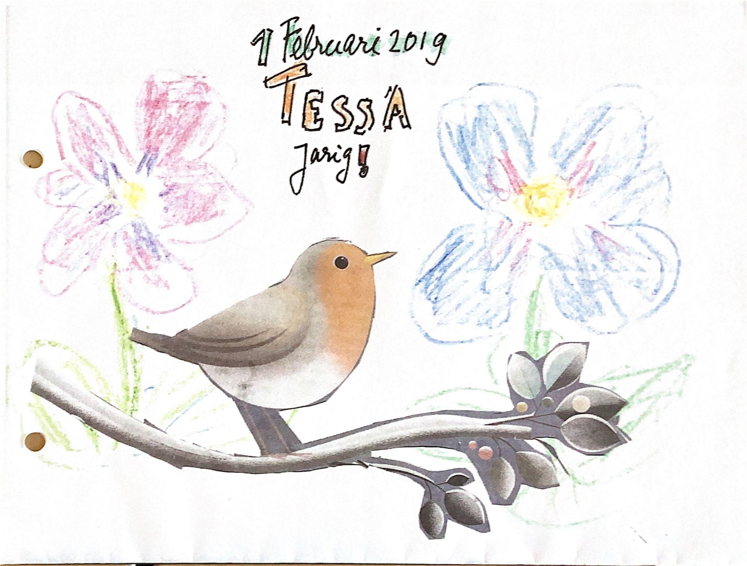 2019-02-01 Tessa 14 jaar. Felicitaties van Omoes en Opa-Aadje.
