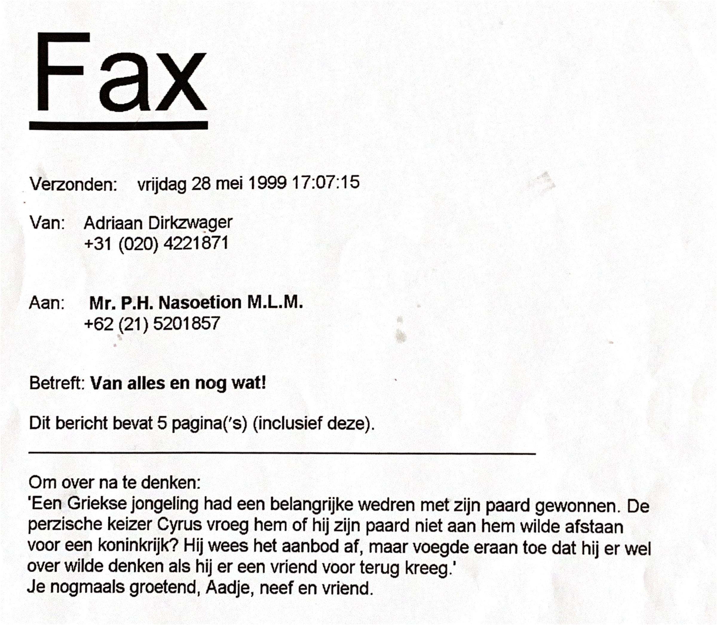 FAX : Verstuurd door A.D.Dirkzwager, Amsterdam