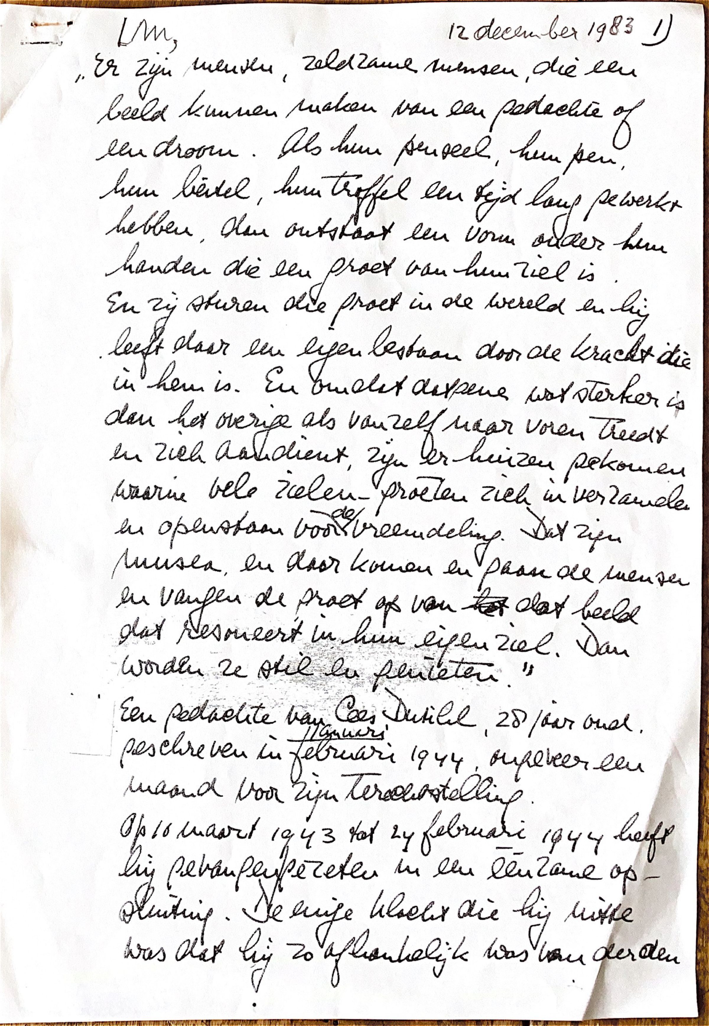 Deze hierboven staande gedachte heeft Cees Dutihl, 28 jaar oud, geschreven in Januari.februari 1944 ongeveer een maand voor zijn terechtstelling door de Duitsers.