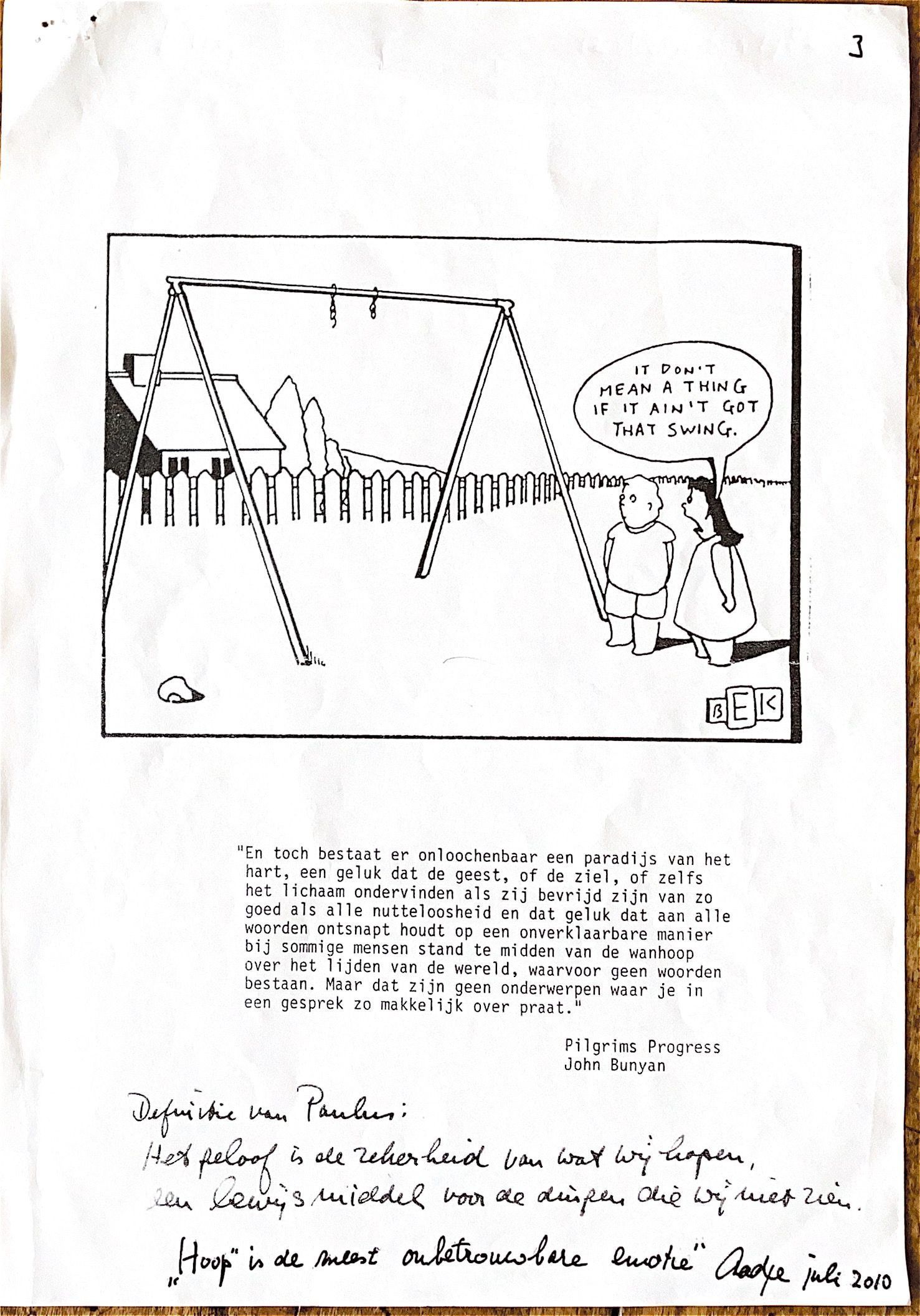 Dat hij niet gek geworden is van angst, dankt hij aan zijn grote geestkracht om zijn omstandigheid, waarin hij verkeert, te relativeren. Veel zingen troostte hem. Ook veel steun vond hij in het geloof. "Geloof is niet iets dat pasklaar geleverd wordt of gekocht kan worden", schrijft hij. Hij gebruikt ook de term: "Geloofszekerheid." Wanner je die éénmaal omarmt, behoef je niet verder te zoeken. Met dat zoeken vind je alleen een theorie.