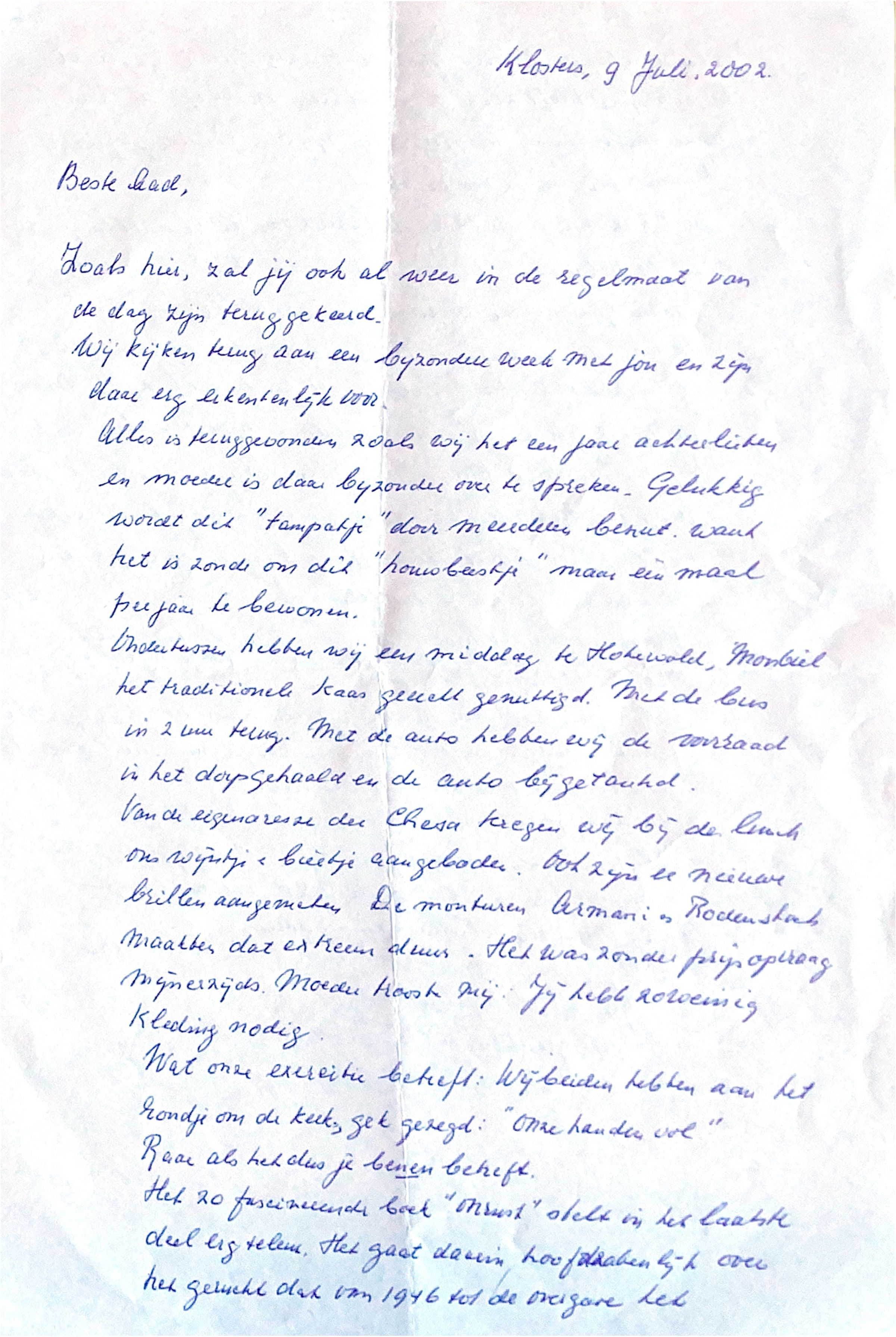 Ook zijn er nieuwe brillen aangemeten. De monturen van Armani en Rodenstock maakten dat extreem duur. Het was zonder prijs opvraag mijnerzijds. Moeder troostte mij: "Jij hebt zo weinig kleding nodig."