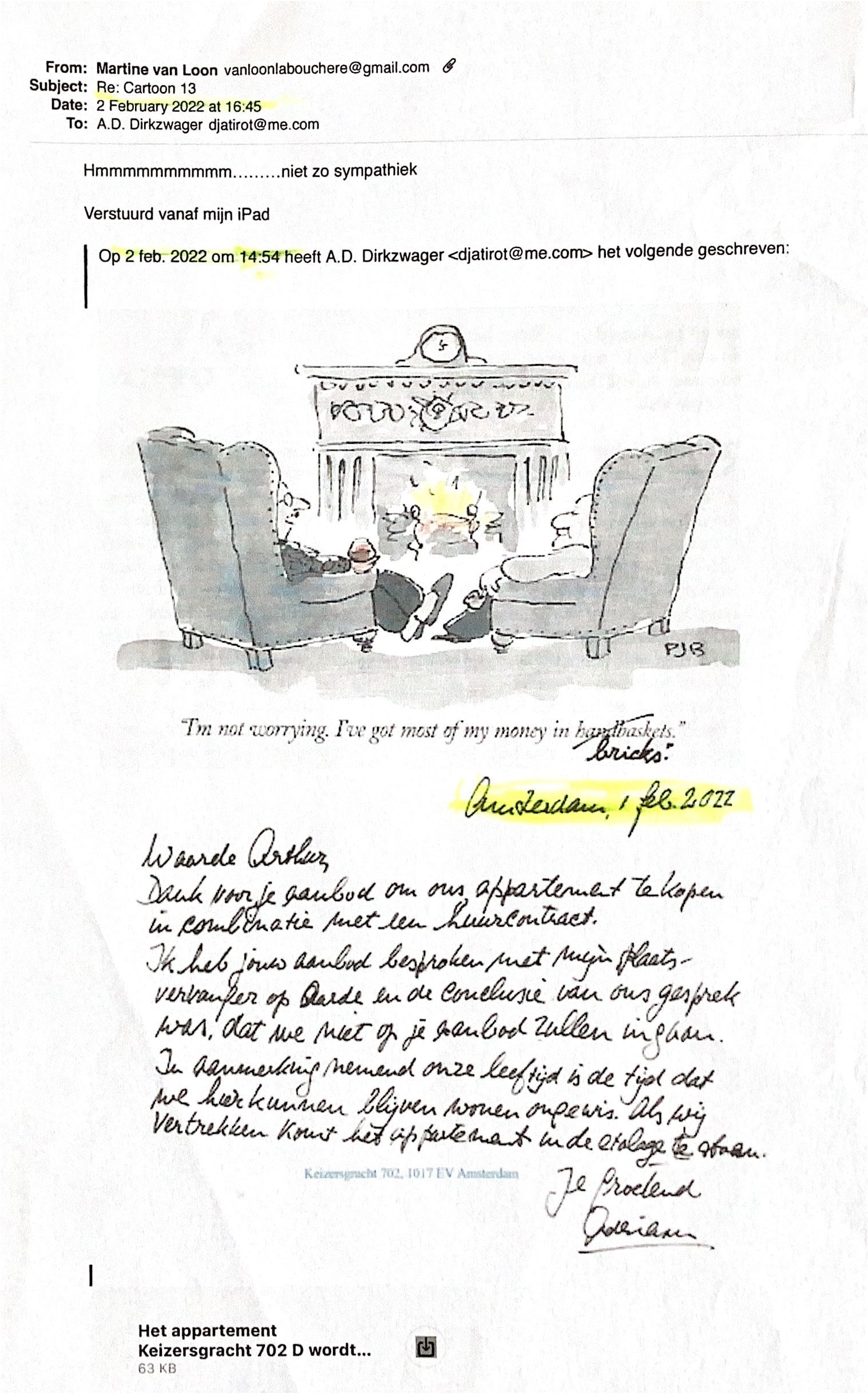 Dank voor jr aanbod om ons appartement op Keizersgracht 702 te kopen in combinatie met een huurcontract.