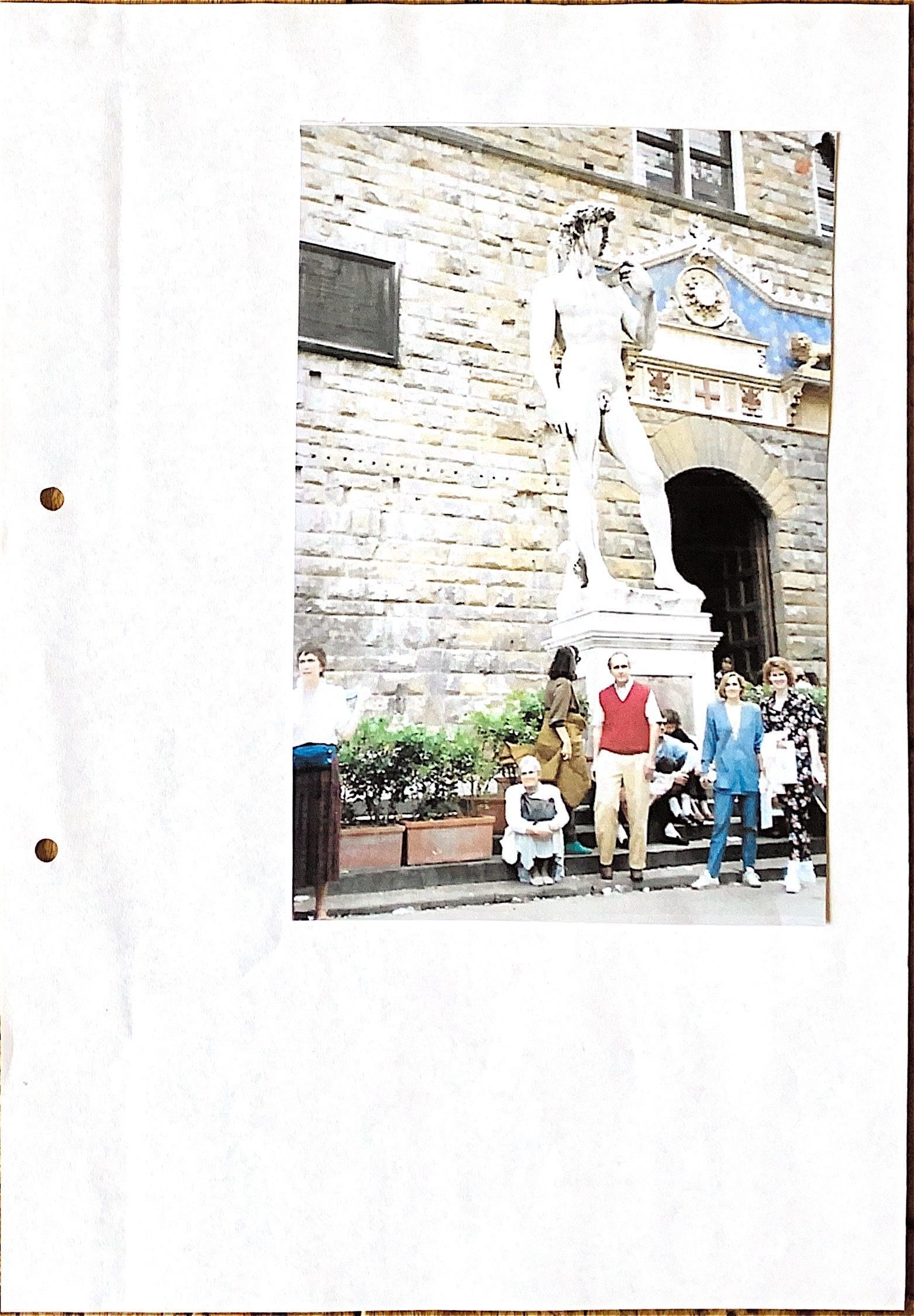 We hadden daar een prachtig krakkemikkig familie hotel midden in Siena geboekt en vandaar uit ook Assisi, San Gimignano, Volterra en Florence bezocht. Geloof je het niet? Wil een bewijs? Nu dan, een foto van een naakte man en een geklede man. En valt je het op dat, op een willekeurig moment dat de foto is genomen, er een samenscholing van zes vrouwen om mij heen staat. (Wat kan ie er aandoen dat ie zo mooi is .ADD) Vooral de twee dames rechts op de foto, een soort "snoepje van de week", was een verrassing hen te zien op de foto. Zij toonden geen enkele terughoudendheid voor het verlies van reputatie om zich op te houden in de nabijheid van een naakte man. Als de "wiebel" maar van marmer is, dan wiebelt ie niet !