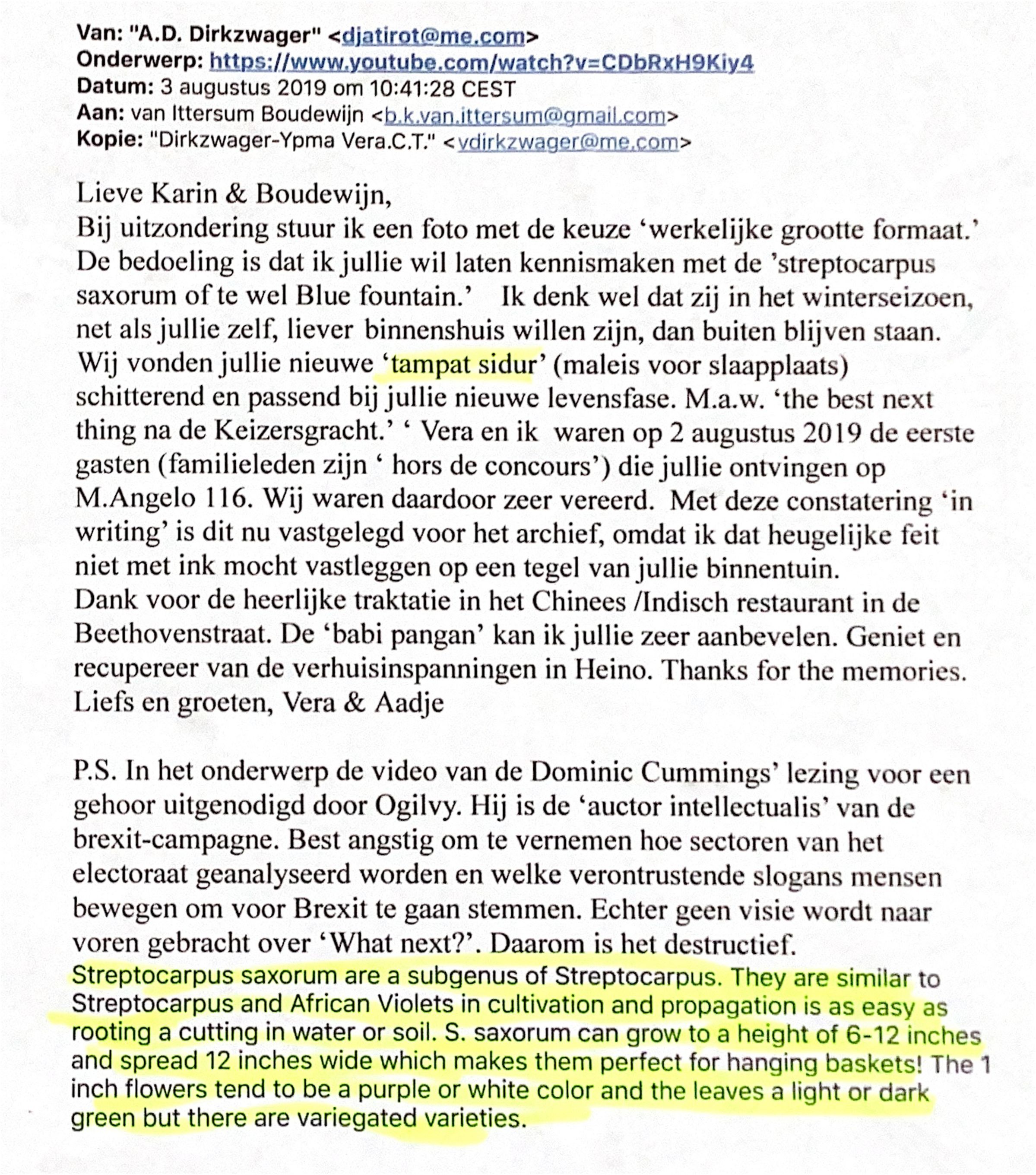 2019-08-03 Mail aan Karin en Boudewijn v. Ittersum over Streptocarpus saxorum.