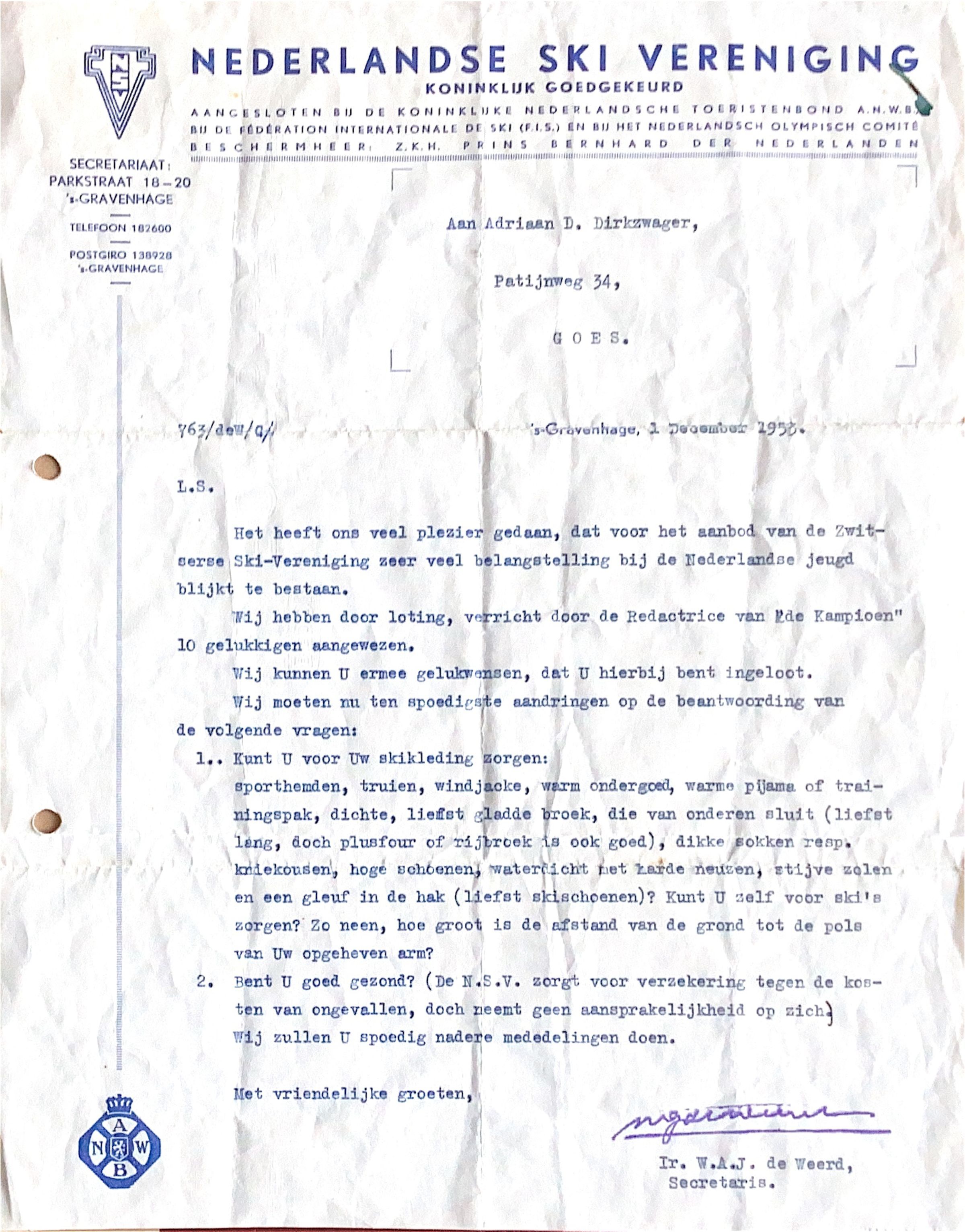 Het heeft ons veel plezier gedaan dat voor het aanbod van de Zwitserse Ski-Vereniging zeer veel belangstelling bij de Nederlandse jeugd blijkt te bestaan. Wij hebben door loting, verricht door de Redactrice van "de Kampioen", 10 gelukkigen aangewezen. Wij kunnen u ermee feliciteren dat u hierbij bent ingeloot.