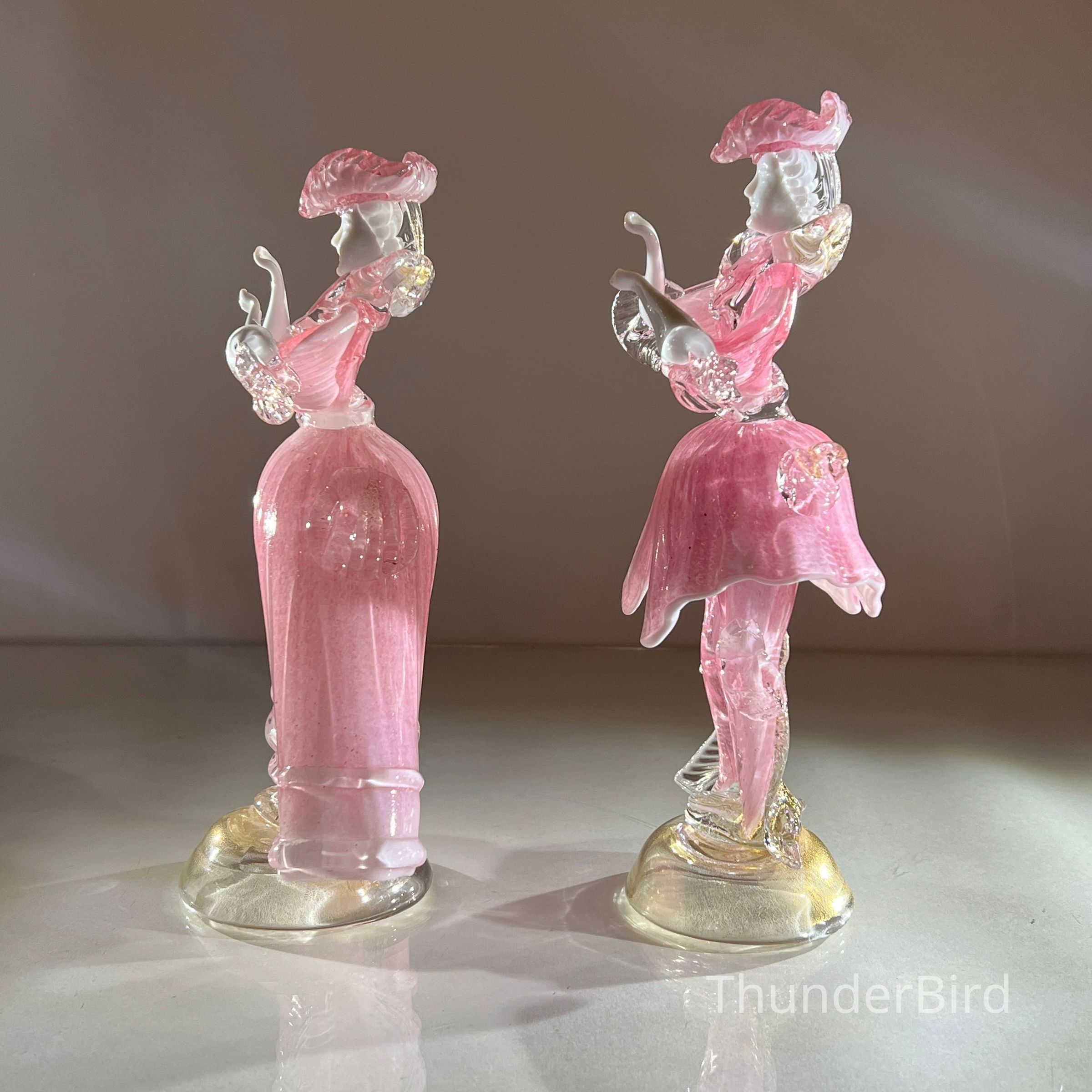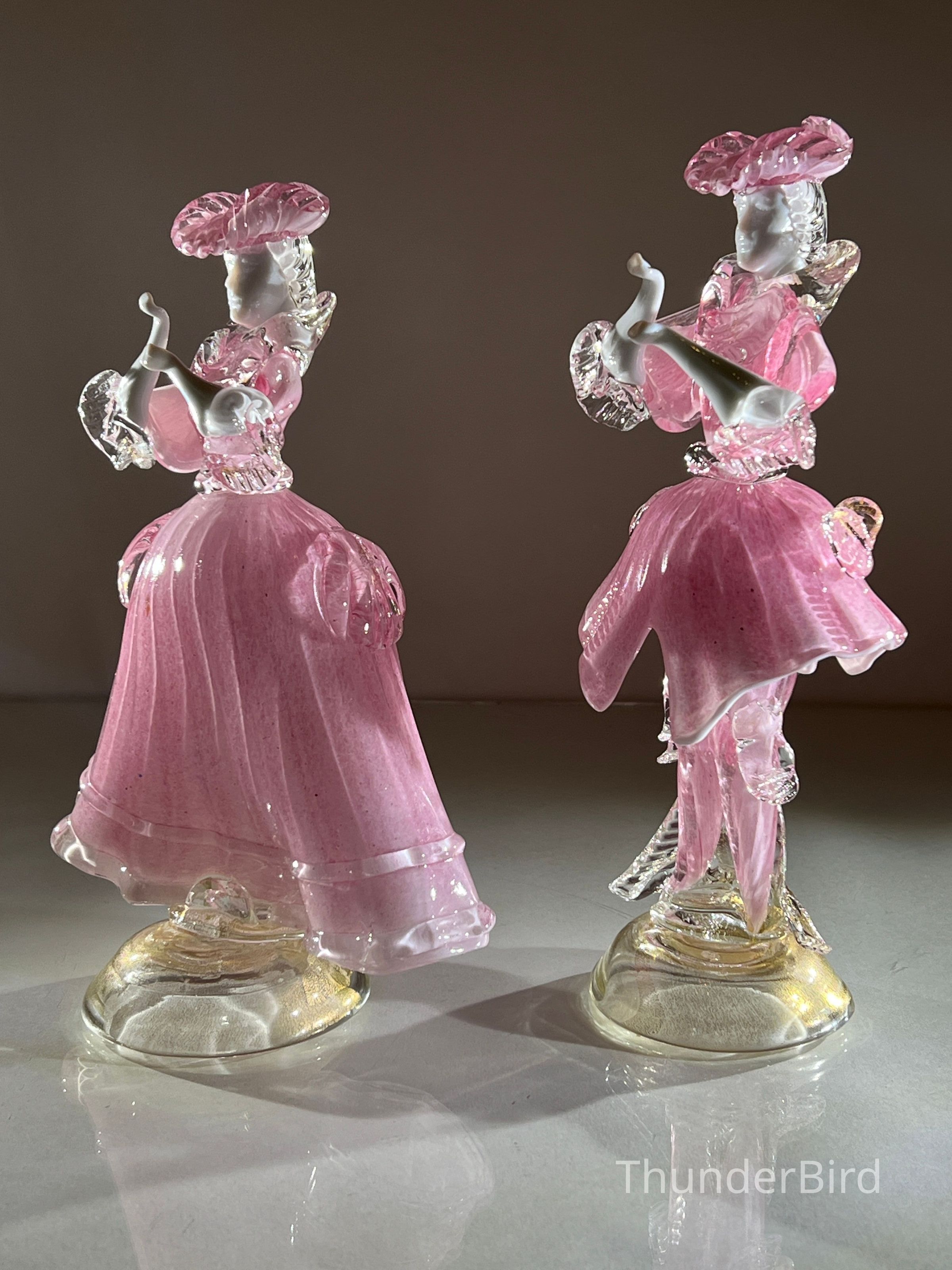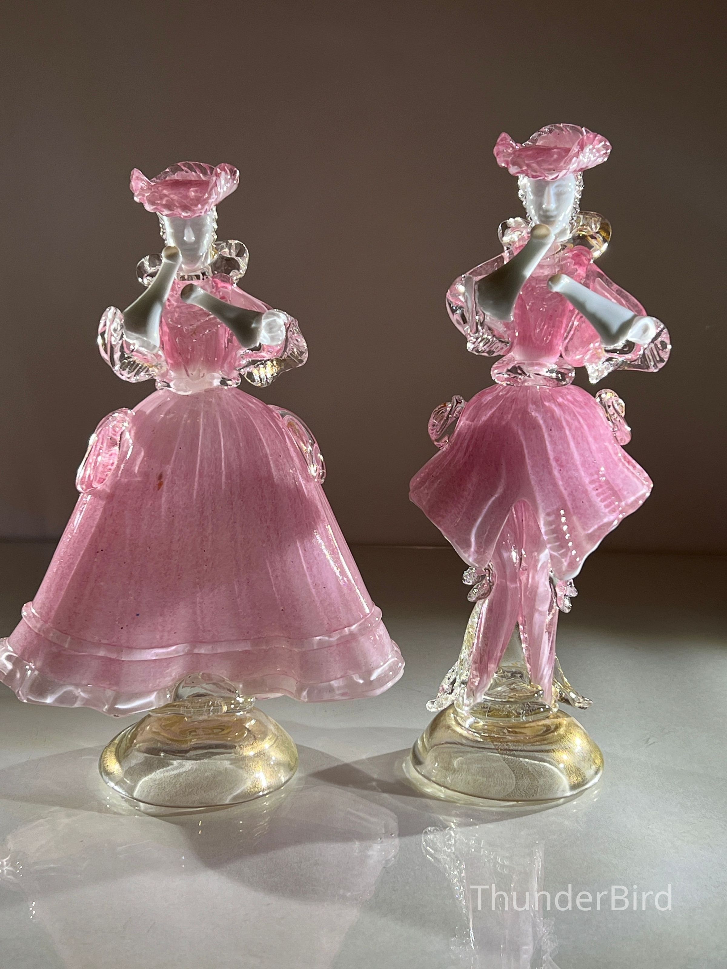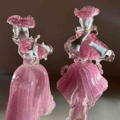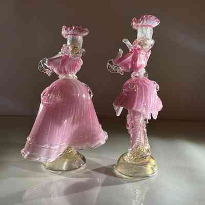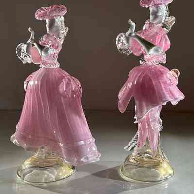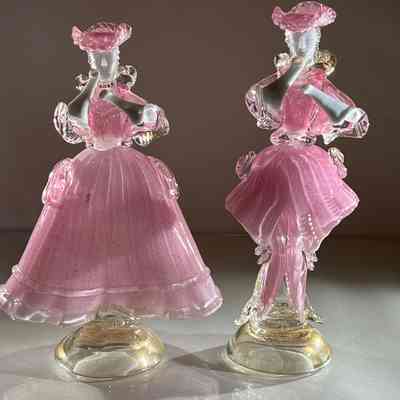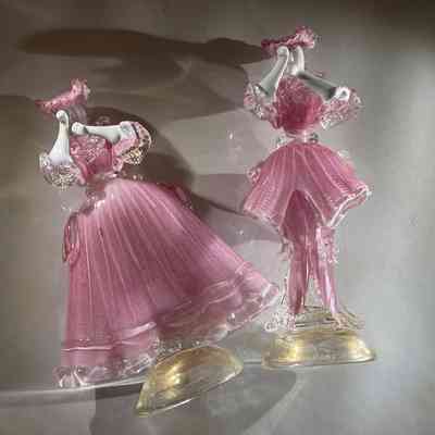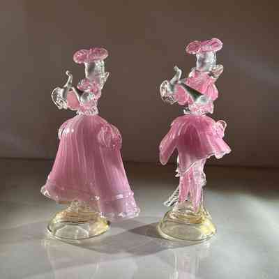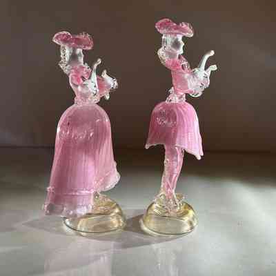 1.10.25a Vintage Pair of Murano Glass Carnival Dancing Figurines – Pink & Gold FleckEntry/Object ID