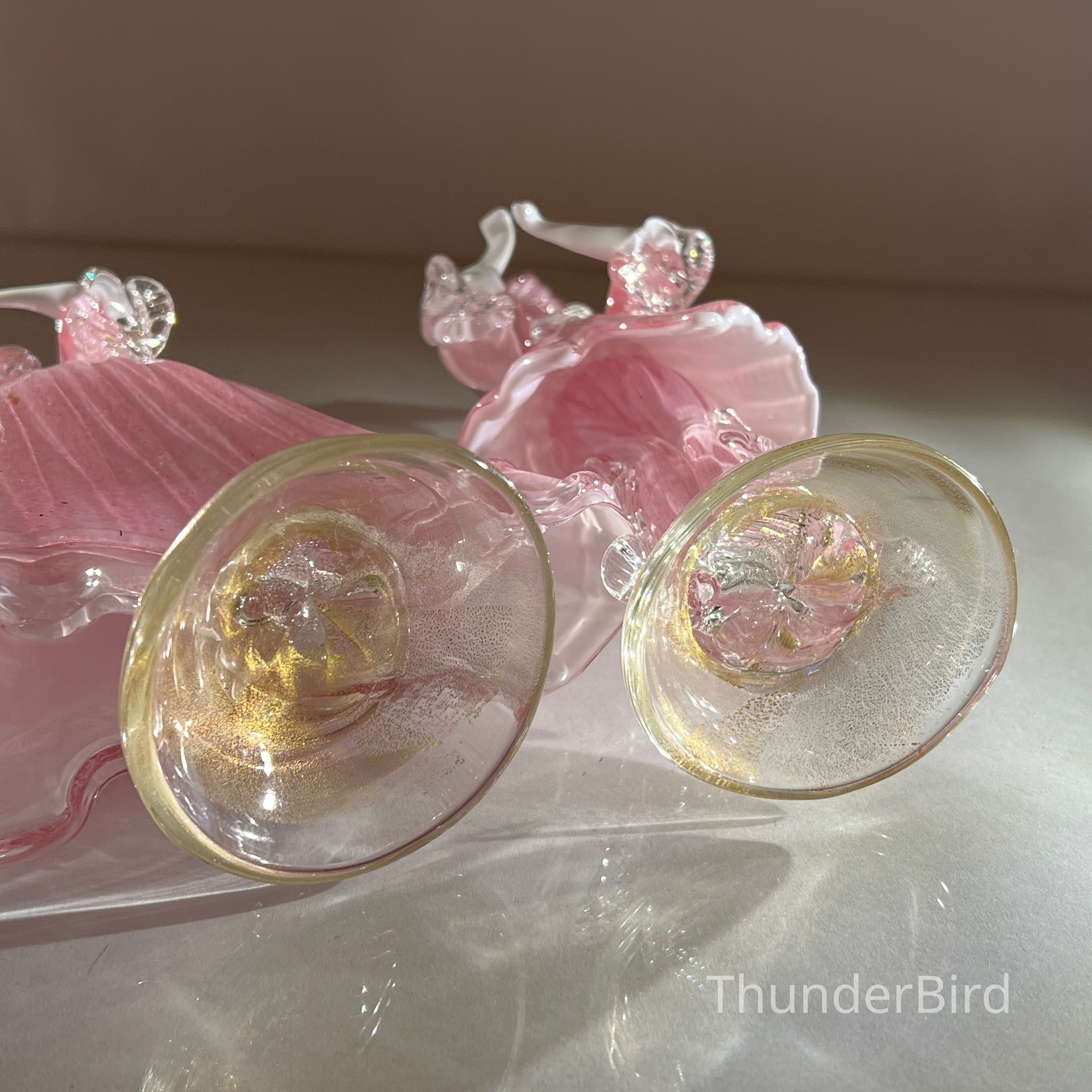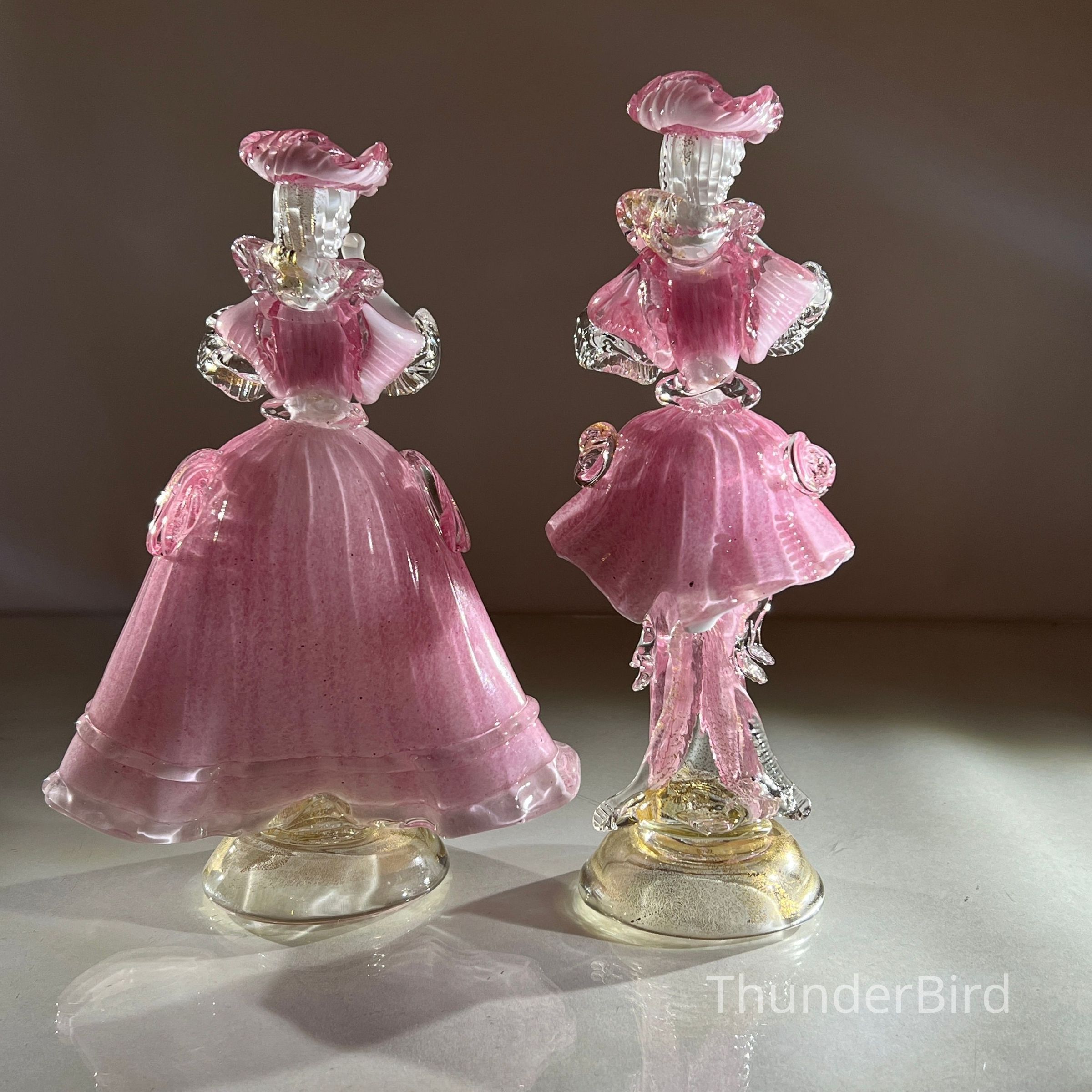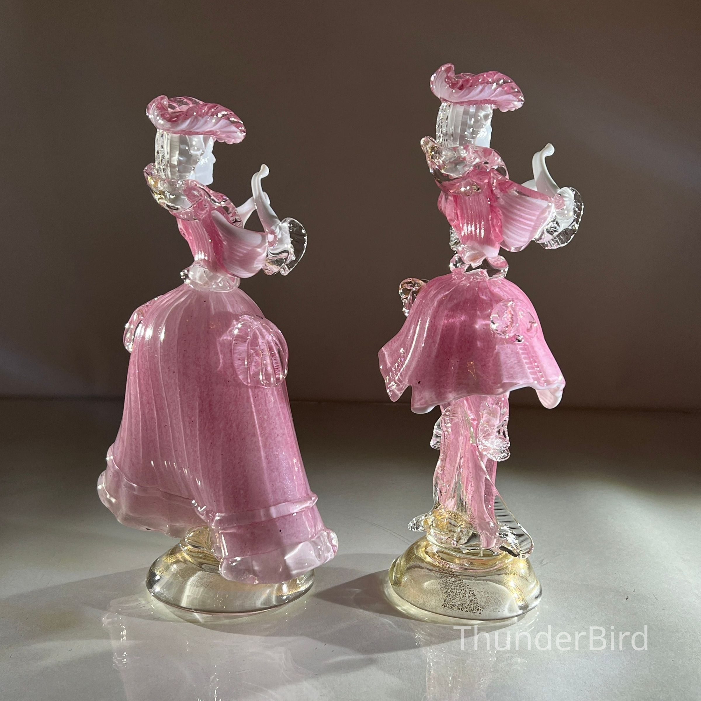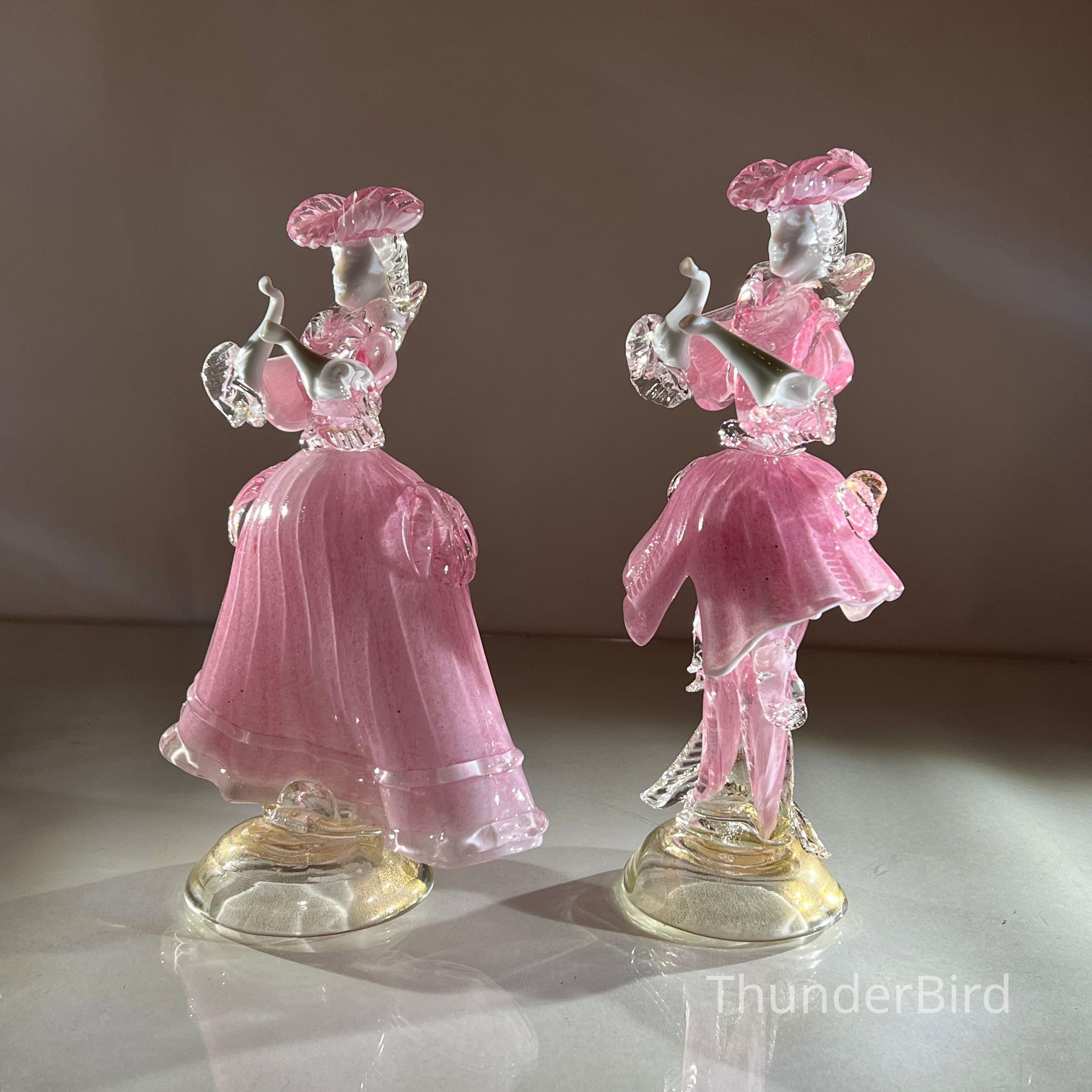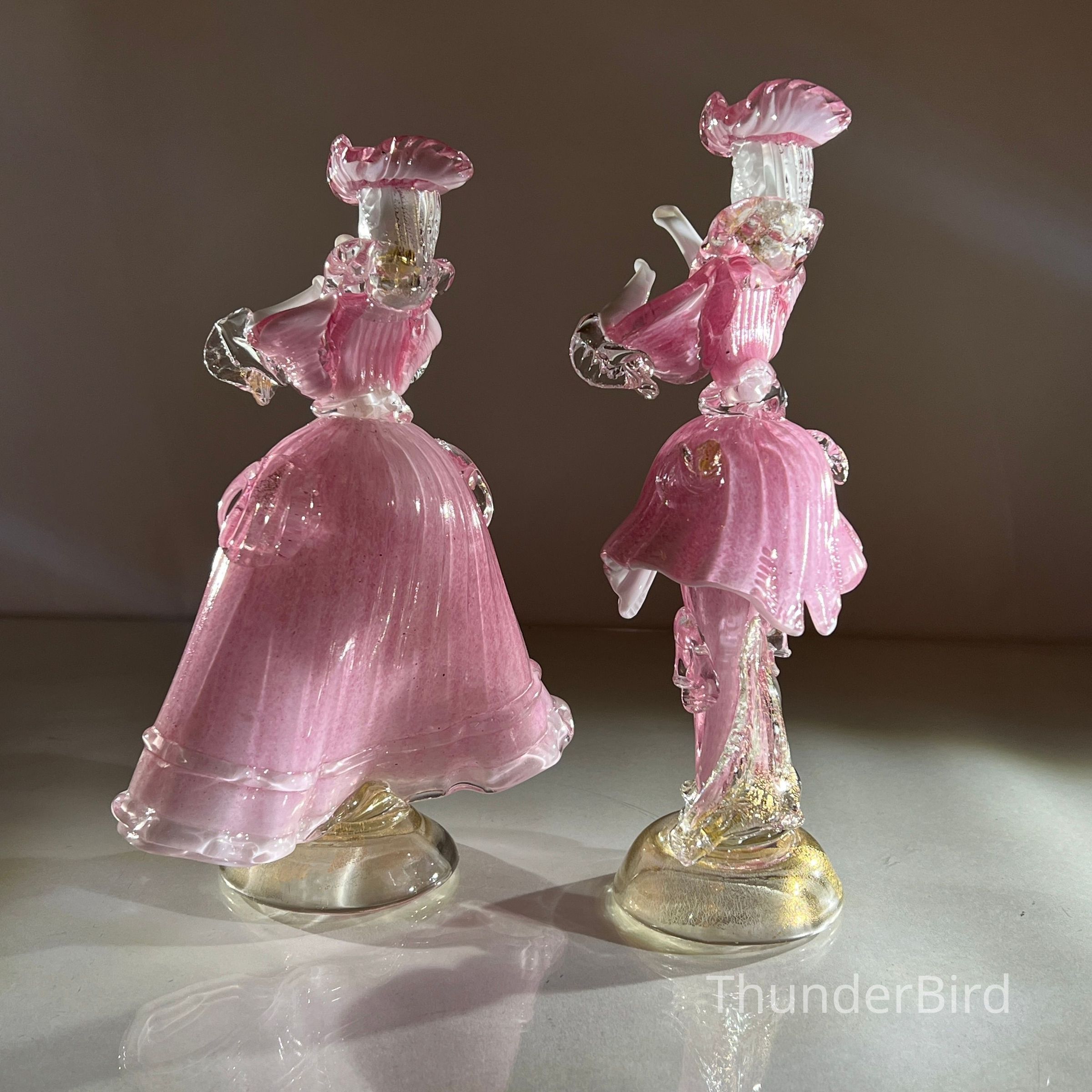 1.10.25a Vintage Pair of Murano Glass Carnival Dancing Figurines – Pink & Gold FleckEntry/Object ID