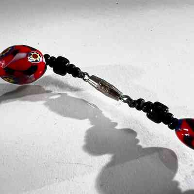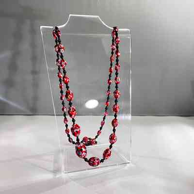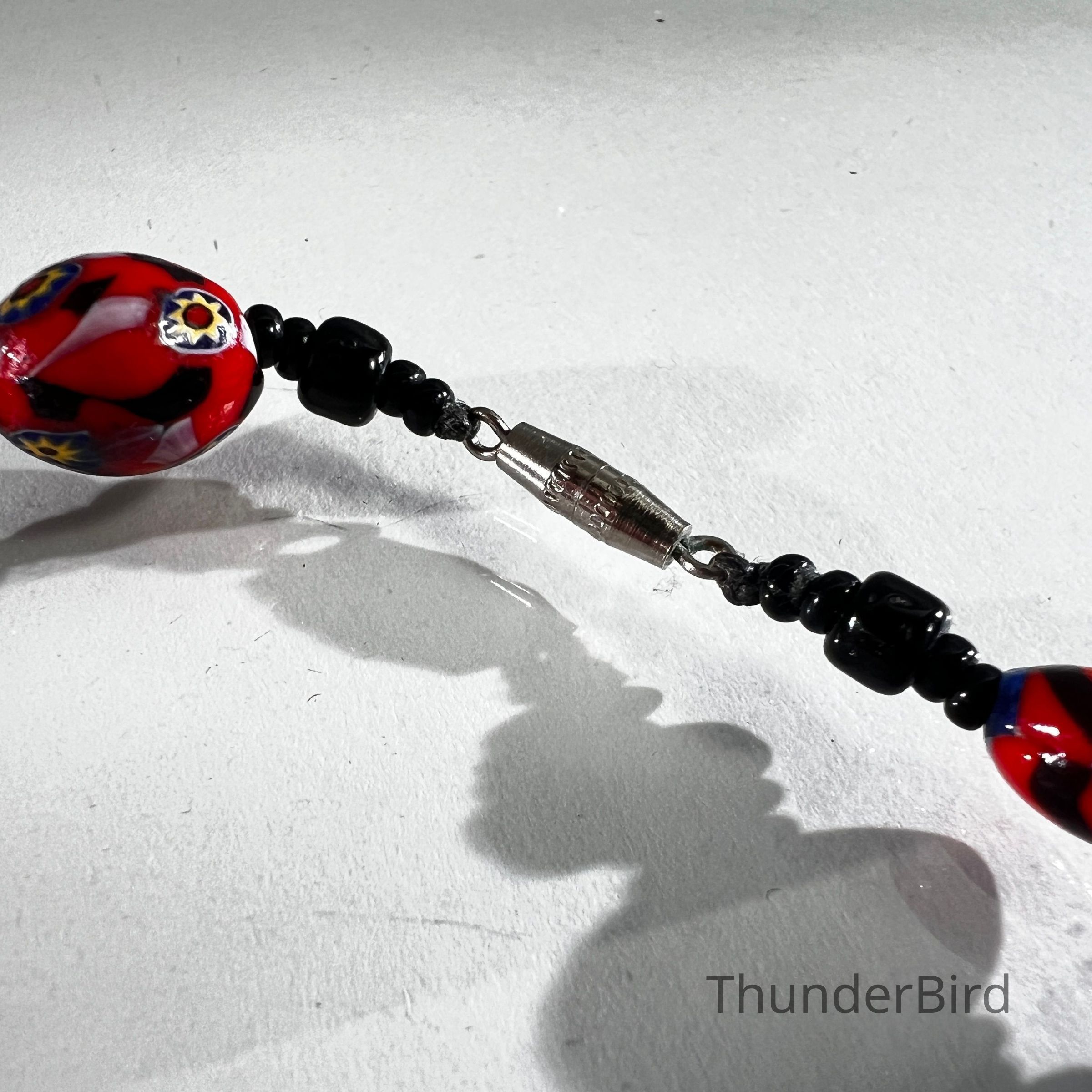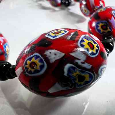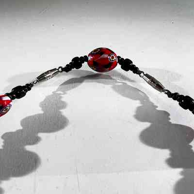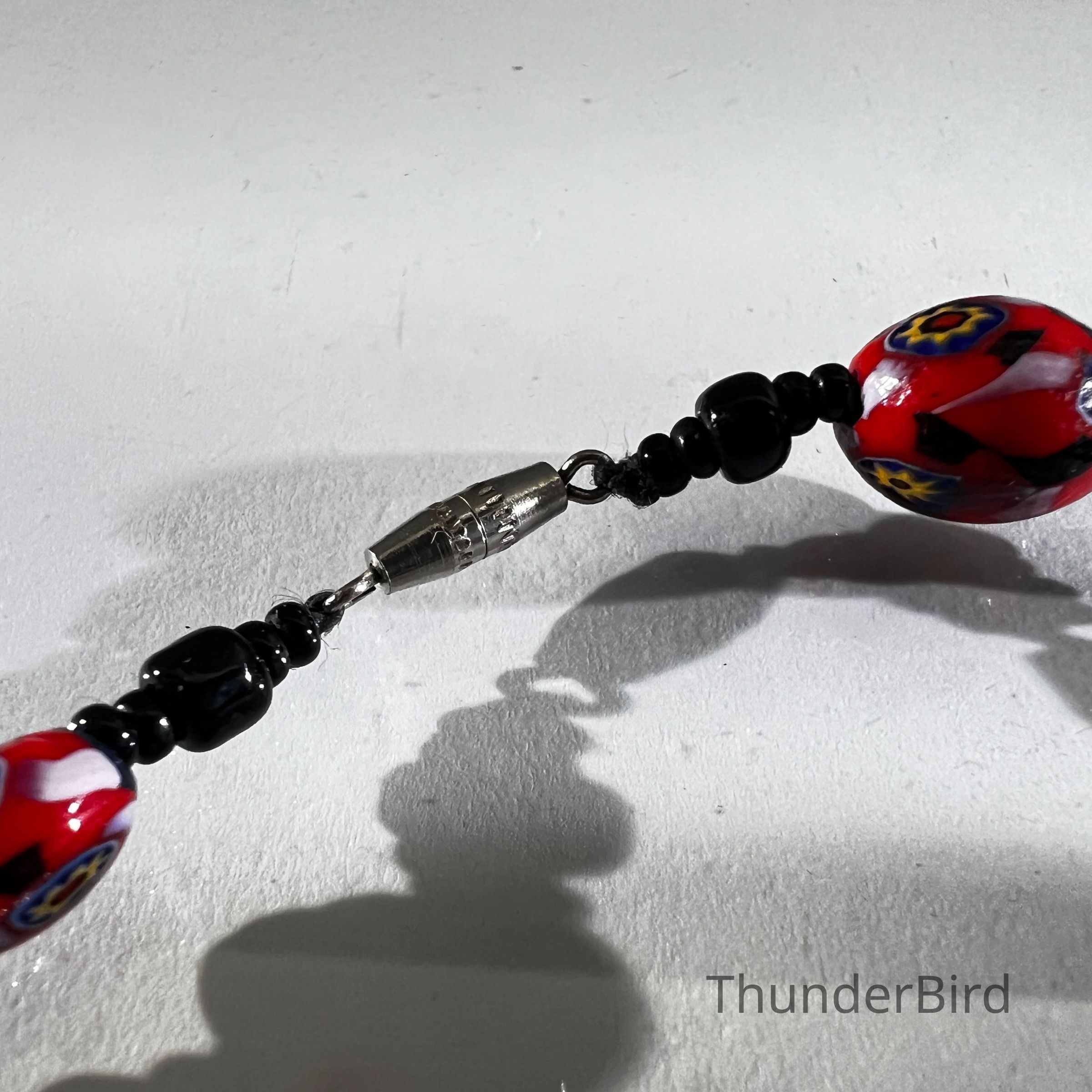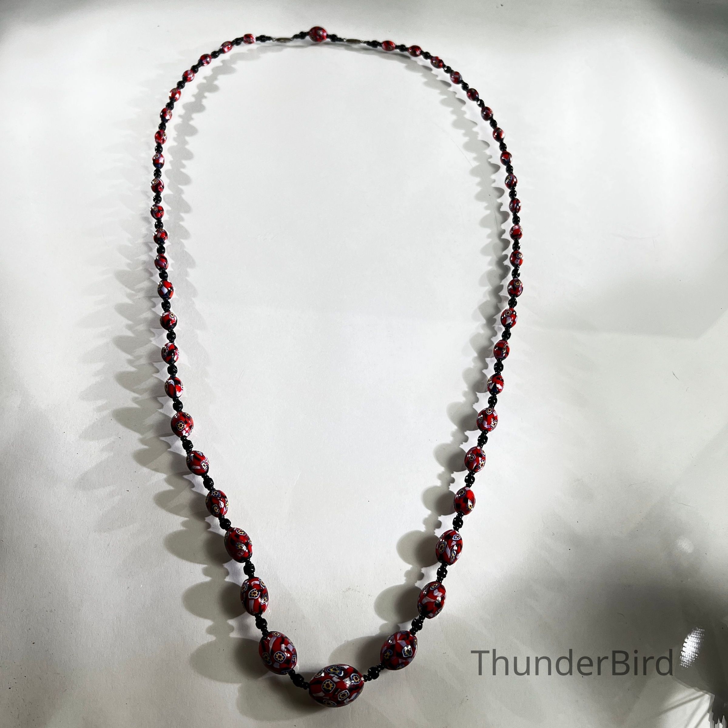 13.11.25d Vintage Murano Millefiori Glass Bead Necklace – Long Length, Vibrant Red & BlackEntry/Object ID