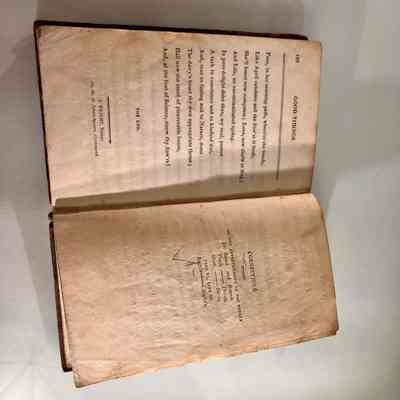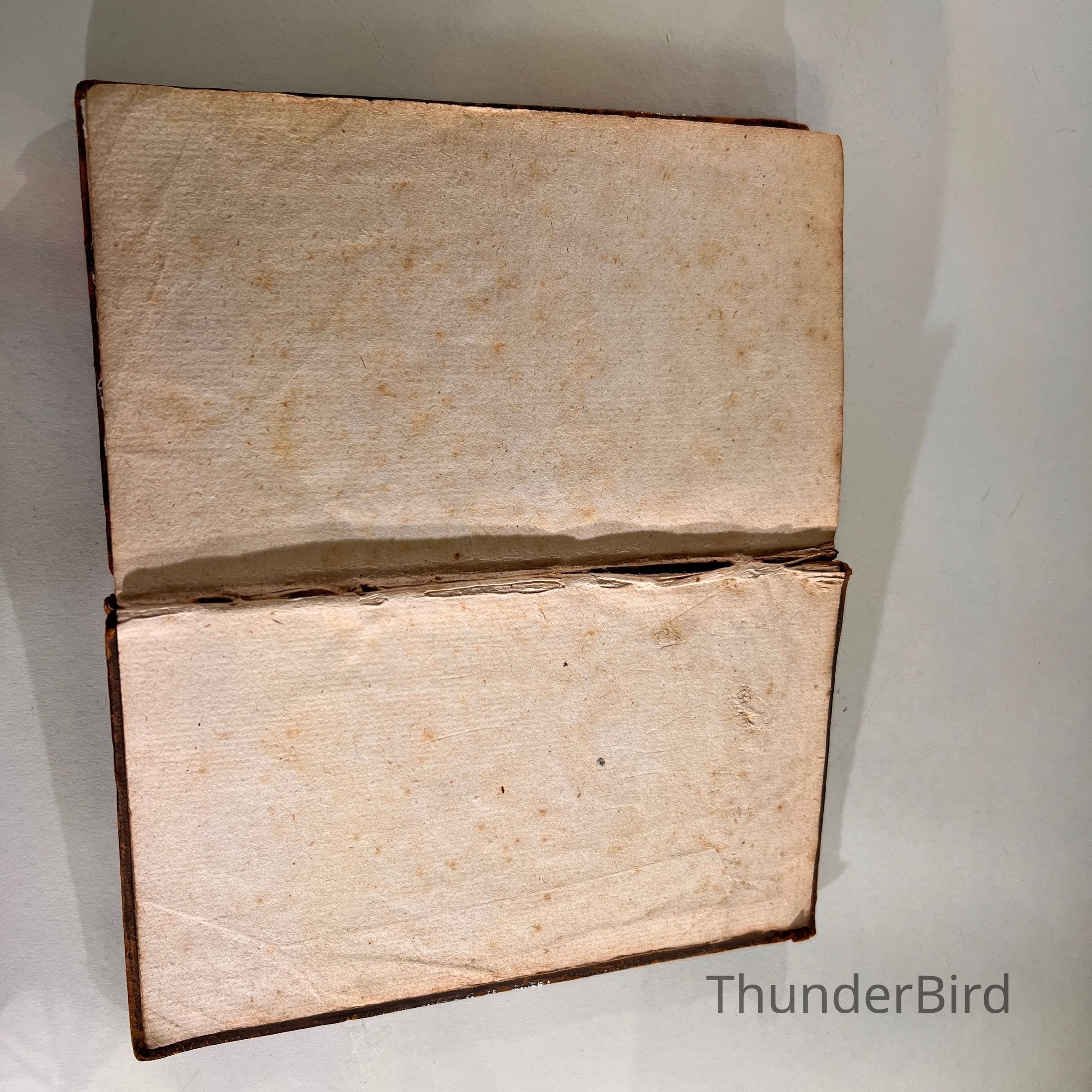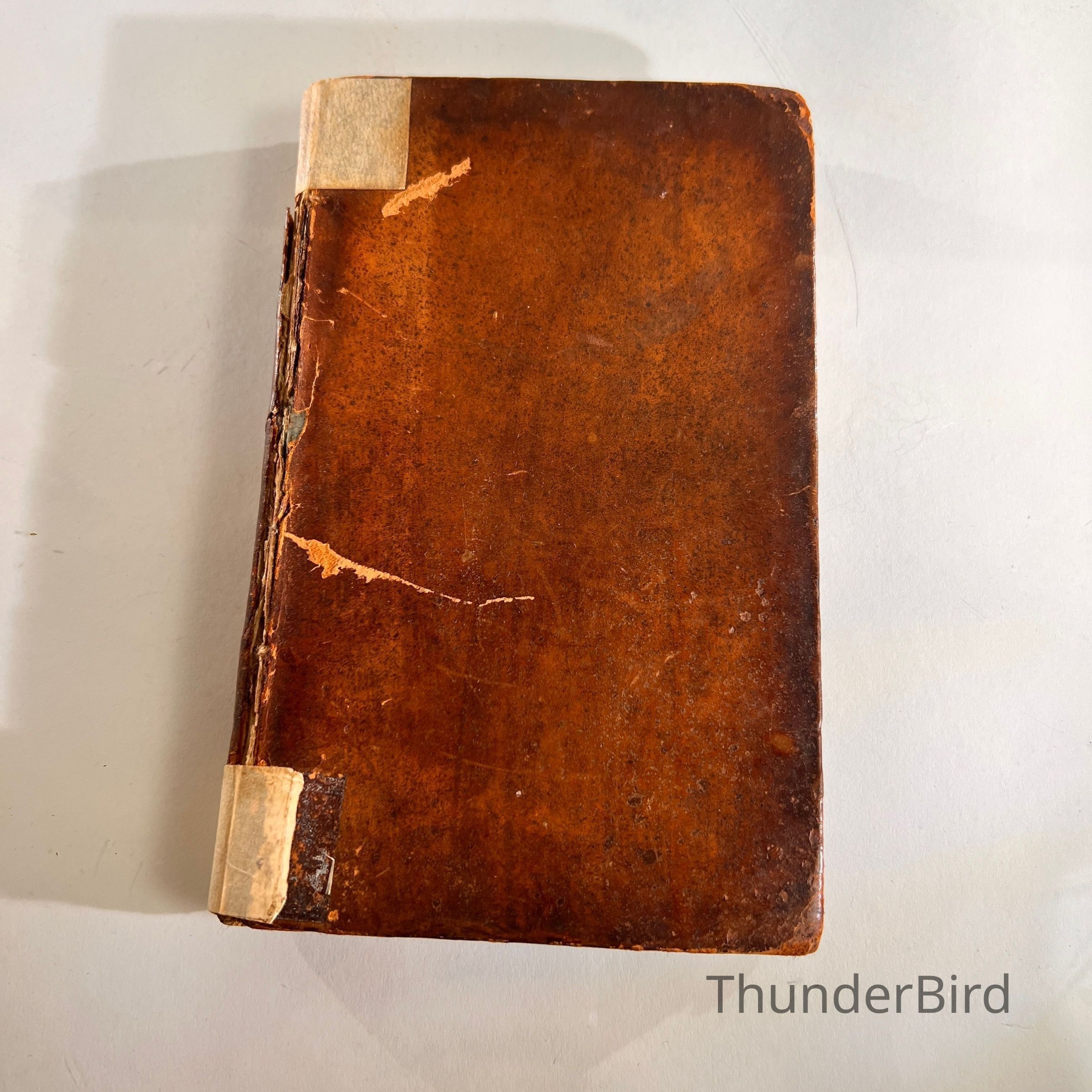 This antique book has been professionally repaired at some stage in its long life. The leather binding shows wear, cracking and age marks. Pages appear to be all present, with some historic repairs. Dealer label on inside cover (Newbolds, Dunedin). A previous owner’s name is written in fountain pen on the first page. A well-preserved and appealing early edition, showing the character expected of a book more than 200 years old.