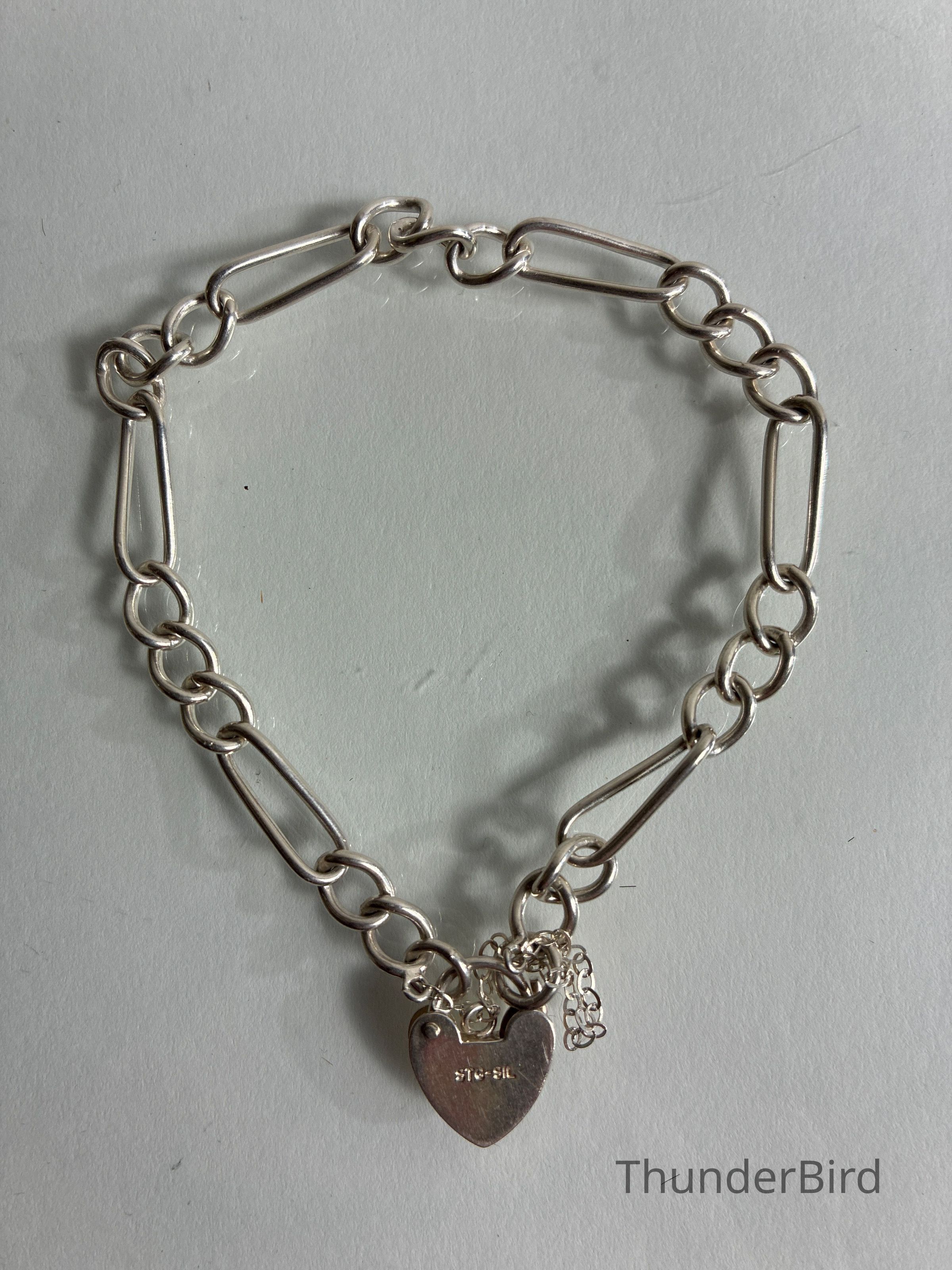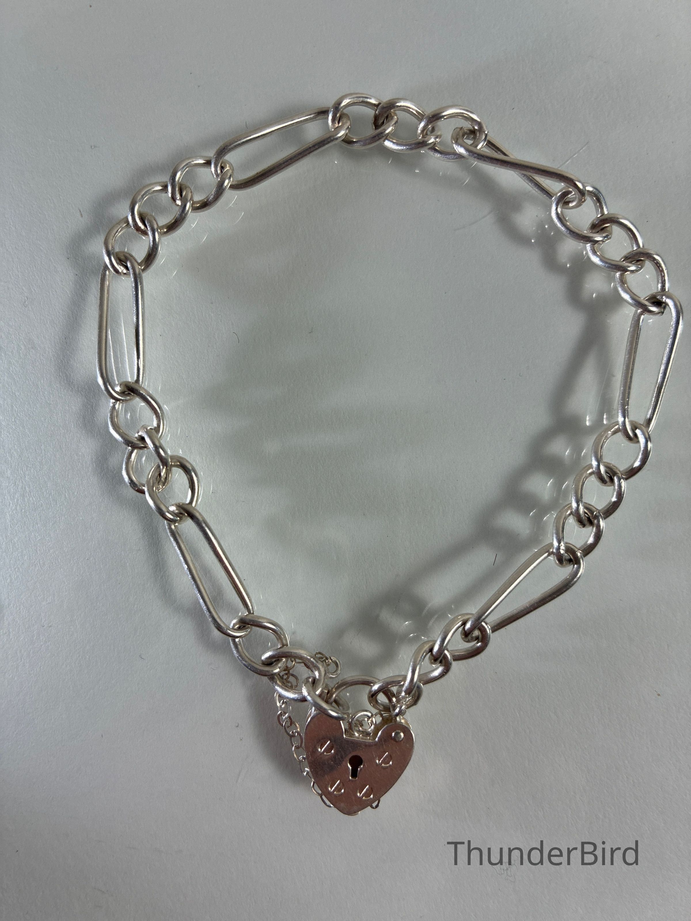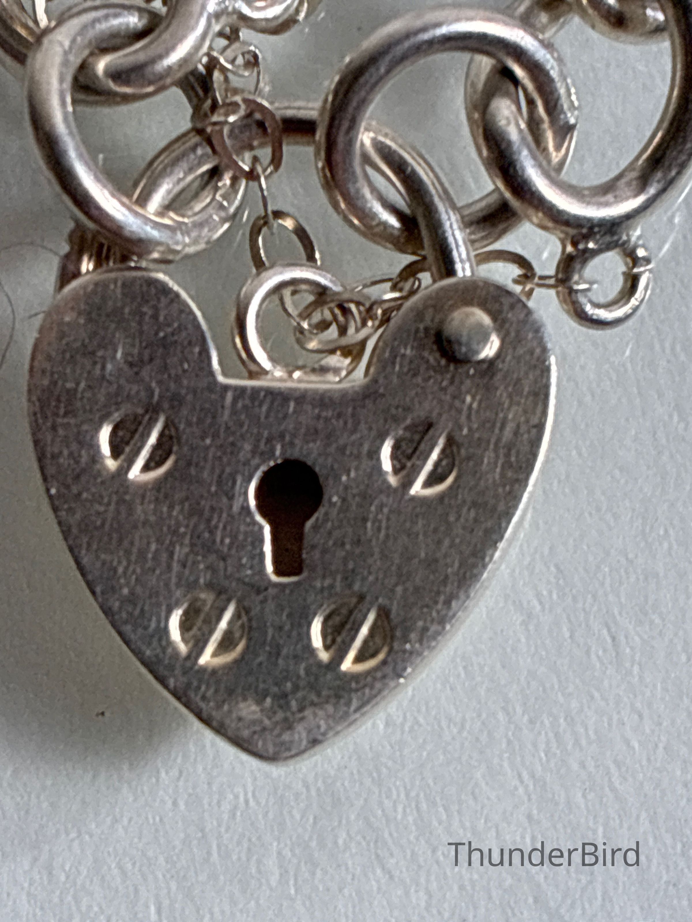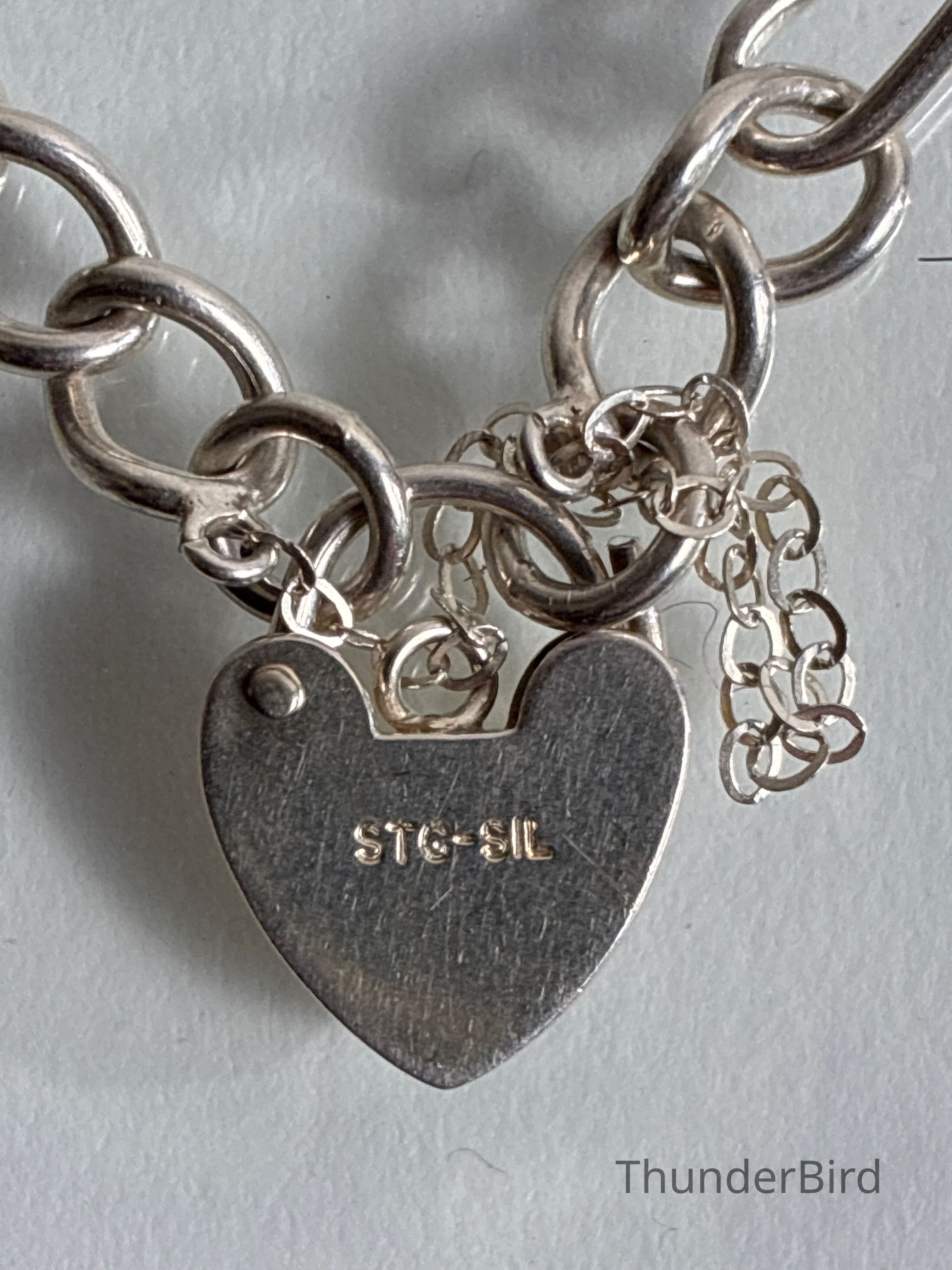 27.8.25a Vintage Sterling Silver Heart Padlock Charm Bracelet – Marked STG SILEntry/Object ID