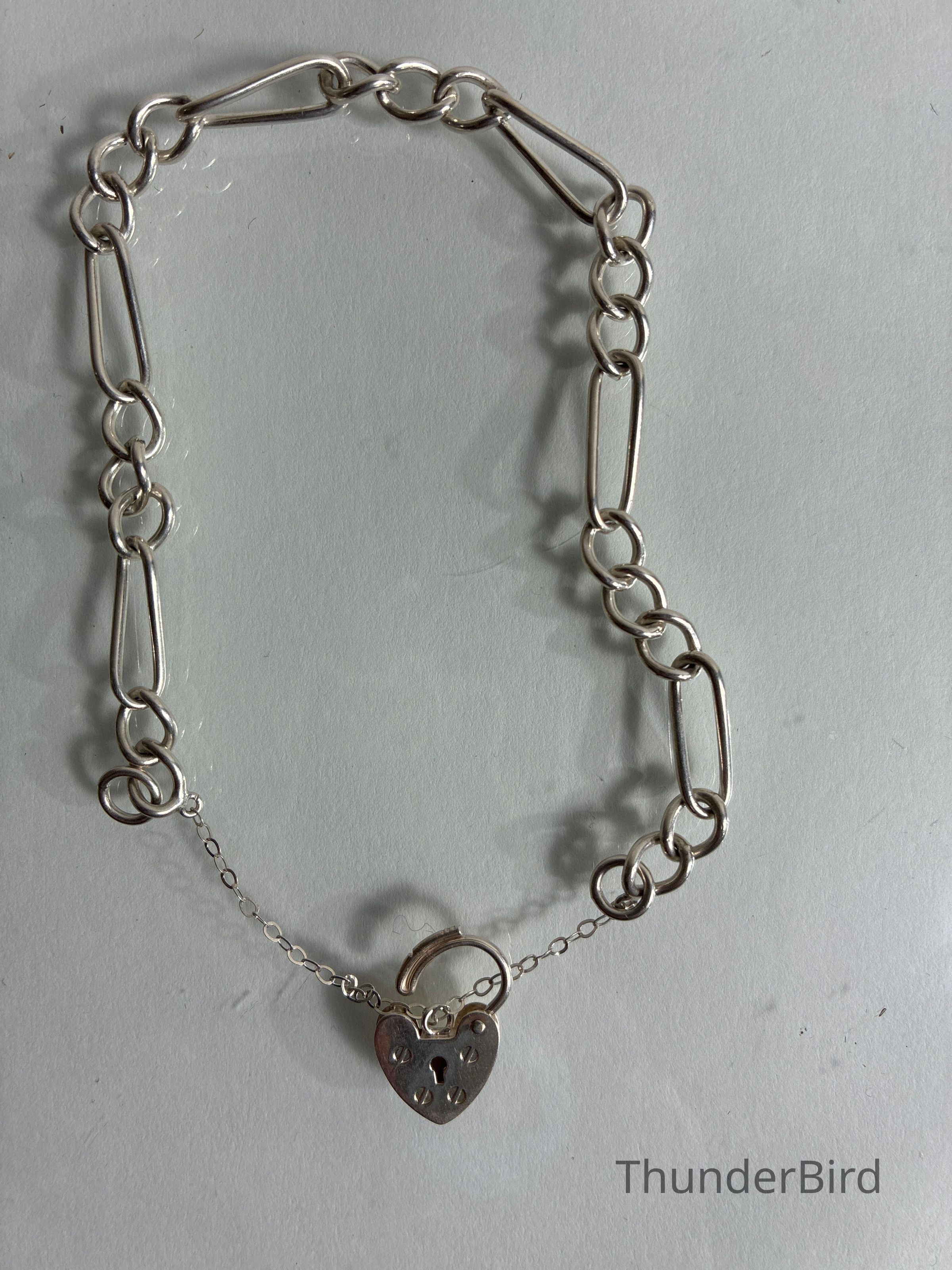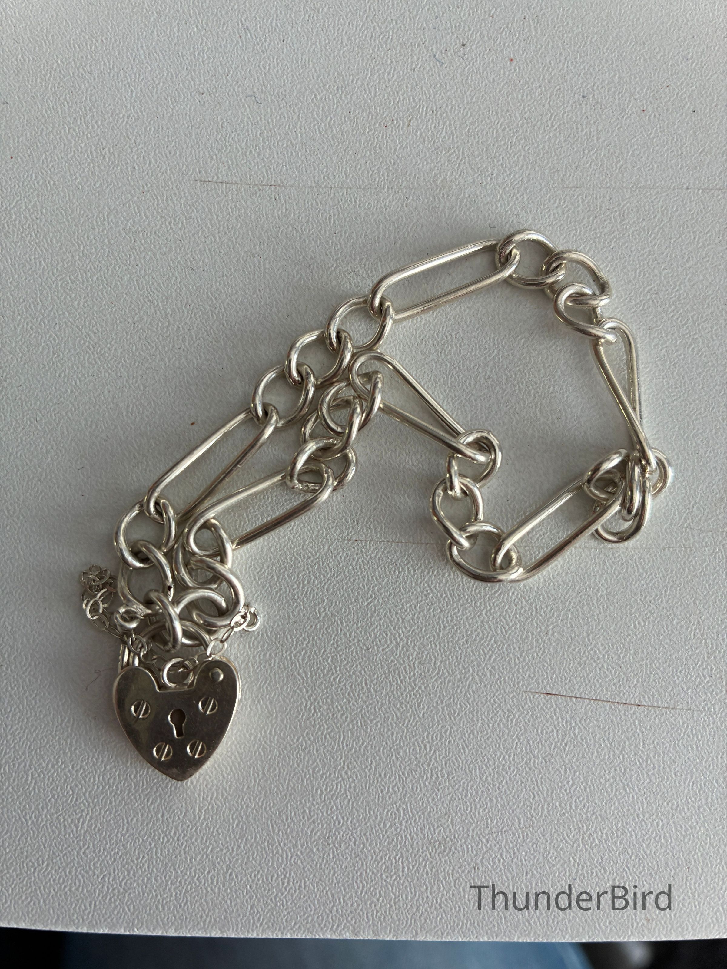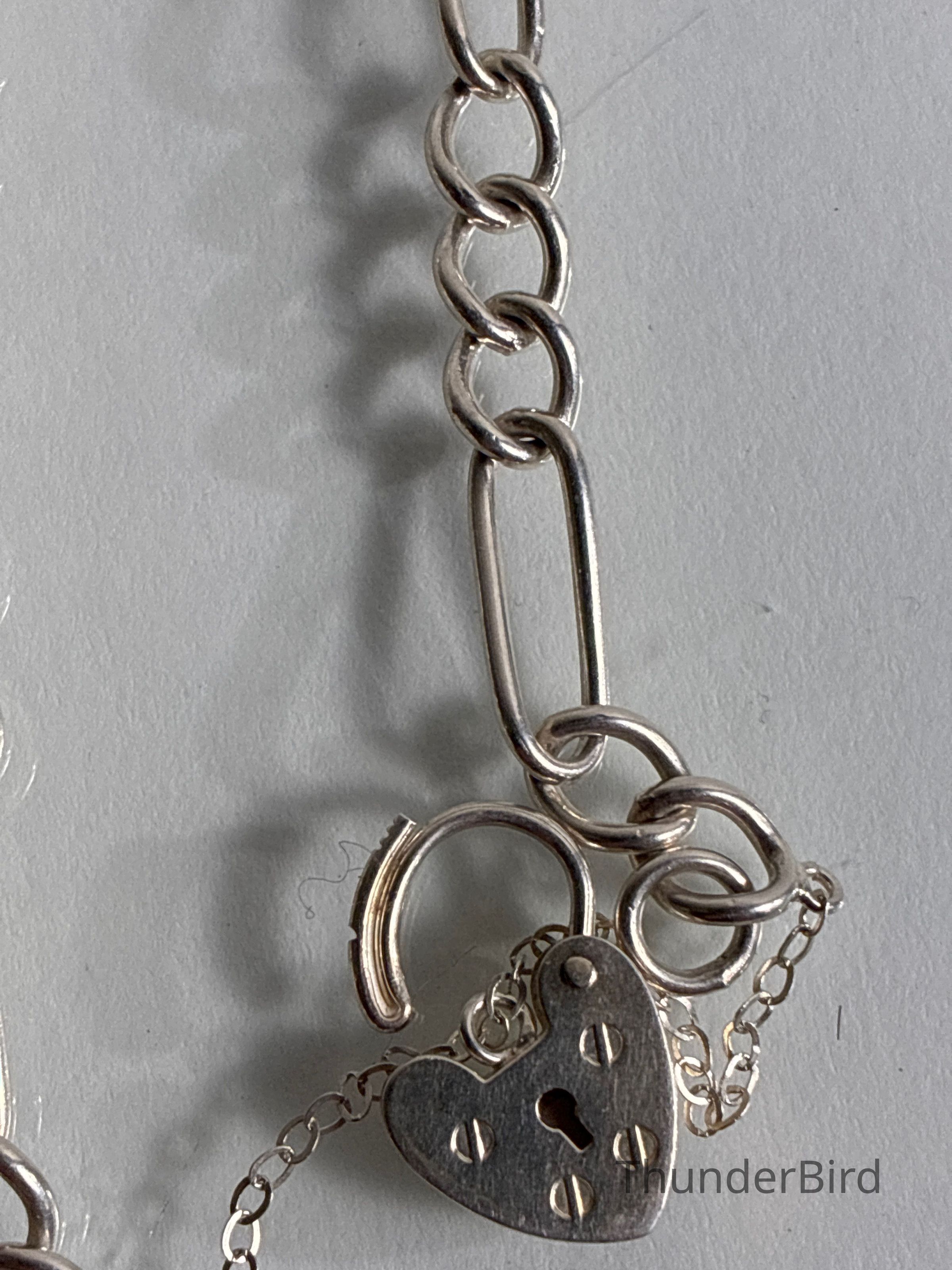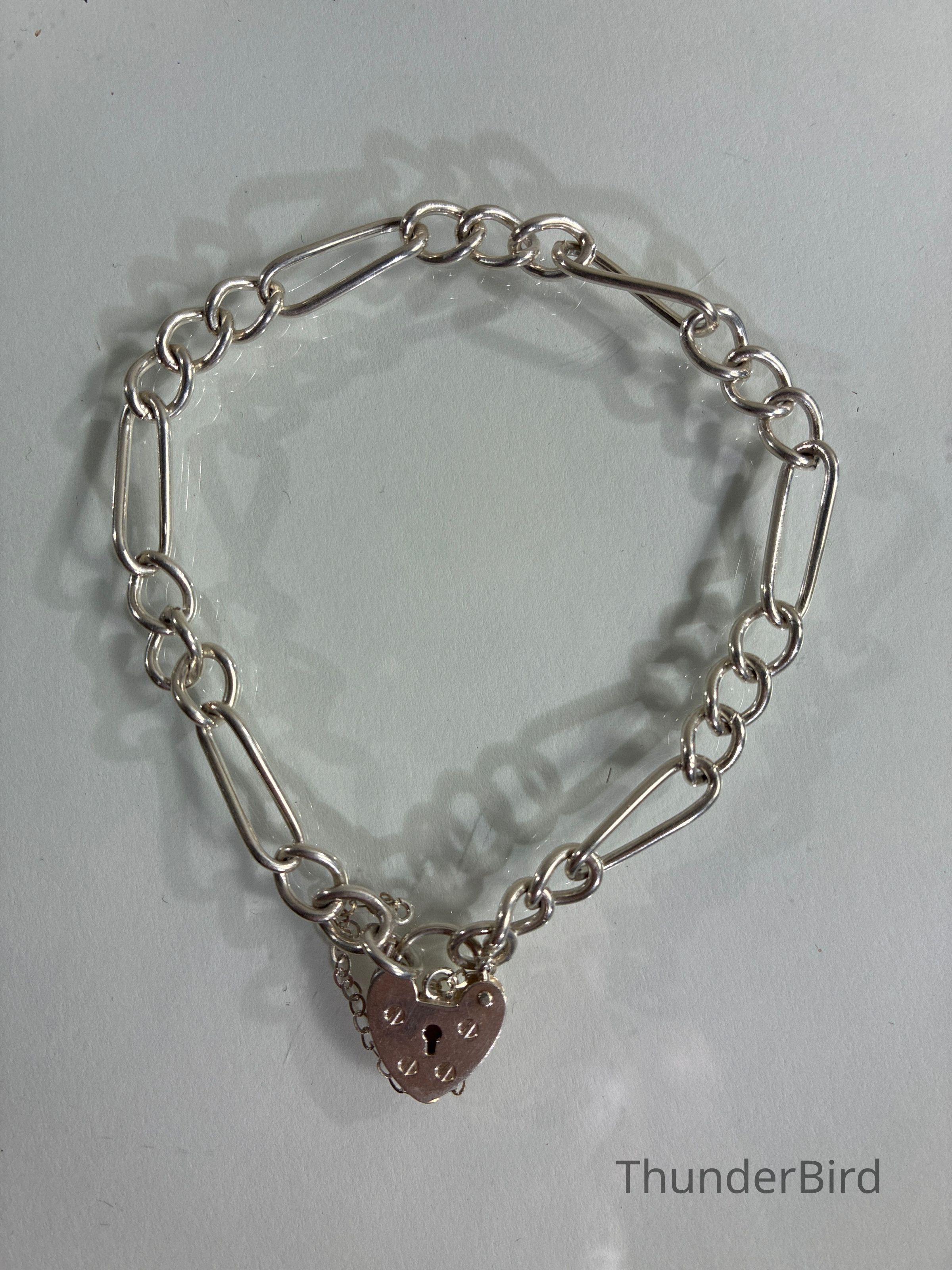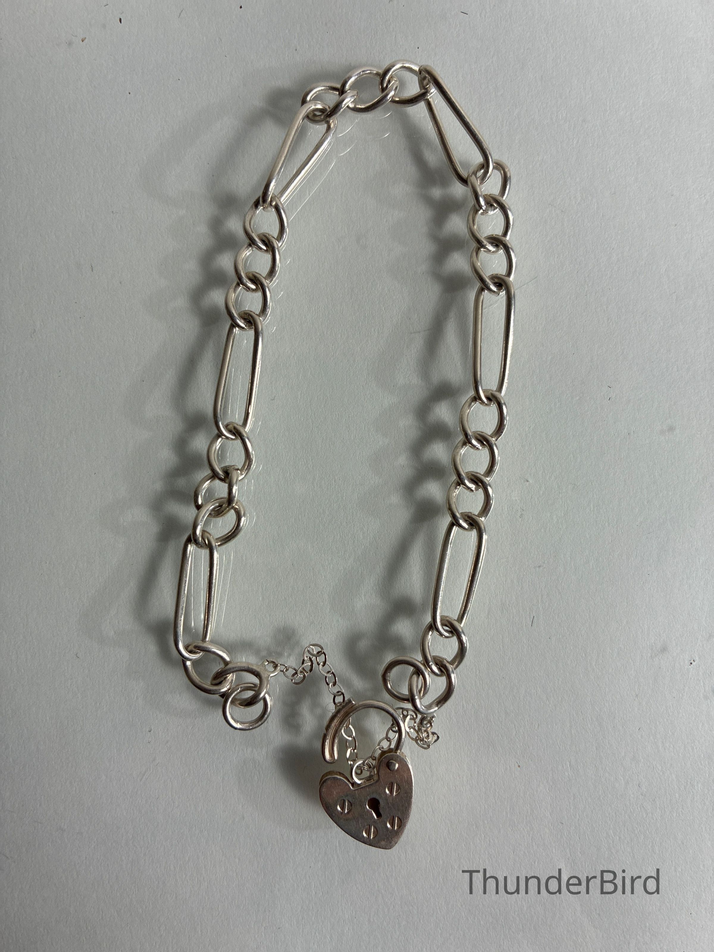 27.8.25a Vintage Sterling Silver Heart Padlock Charm Bracelet – Marked STG SILEntry/Object ID