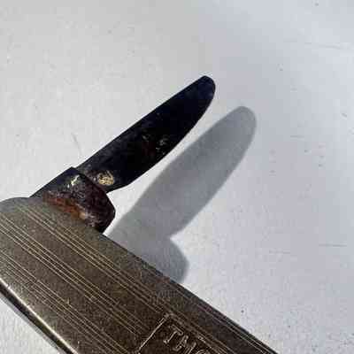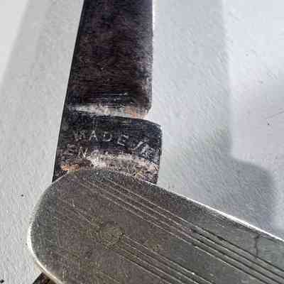 An antique advertising pen knife produced for THOs Hubbuck & Son Ltd, a long established British paint manufacturer. Marked to the handle and stamped Made in England, this compact two blade pocket knife likely dates to the early to mid 20th century. A classic example of trade promotional merchandise and industrial memorabilia, ideal for collectors of vintage tools or advertising items.