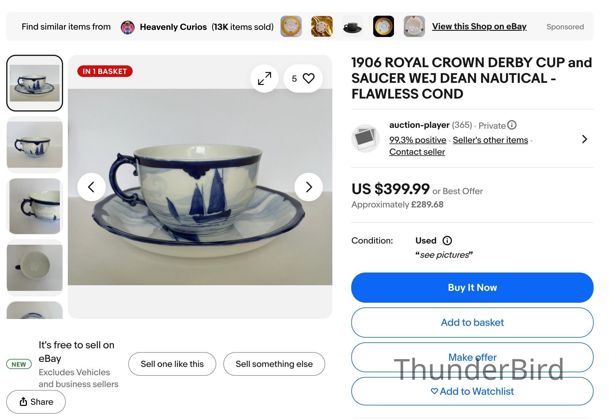 1908 Royal Crown Derby 1908 Hand Painted Marine Tea Set W.E.J. Dean = RAREEntry/Object ID