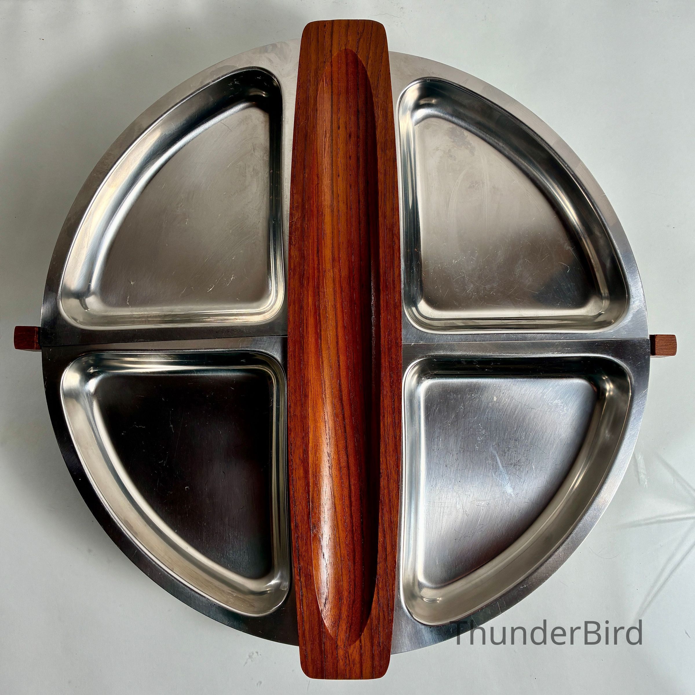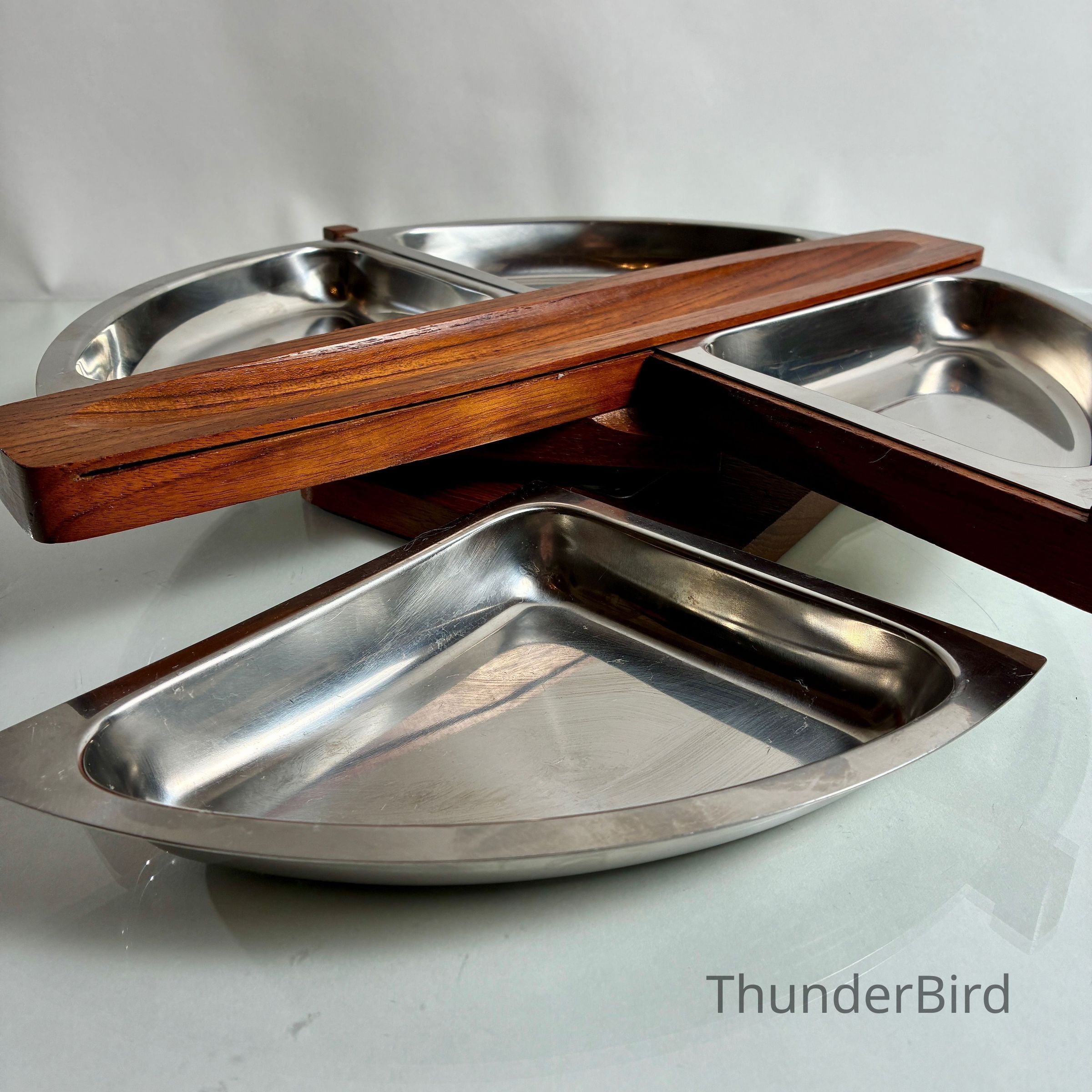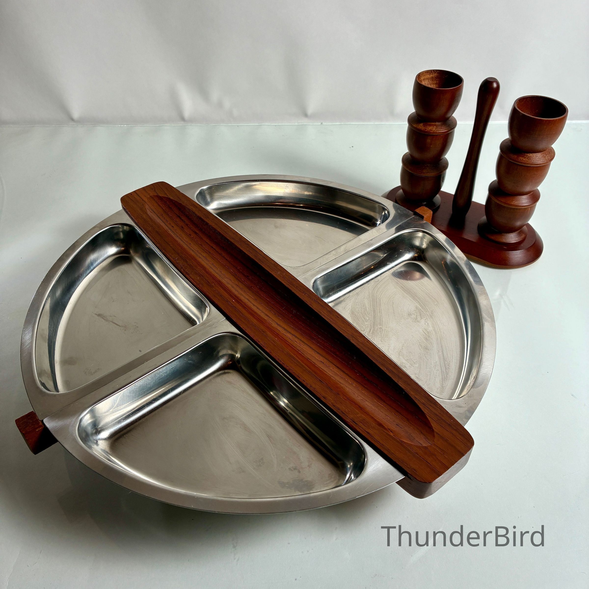 4.9.25d Mid-Cent-Mod Arthur Salm Teak & Stainless Steel Lazy Susan & Egg Cup StackerEntry/Object ID