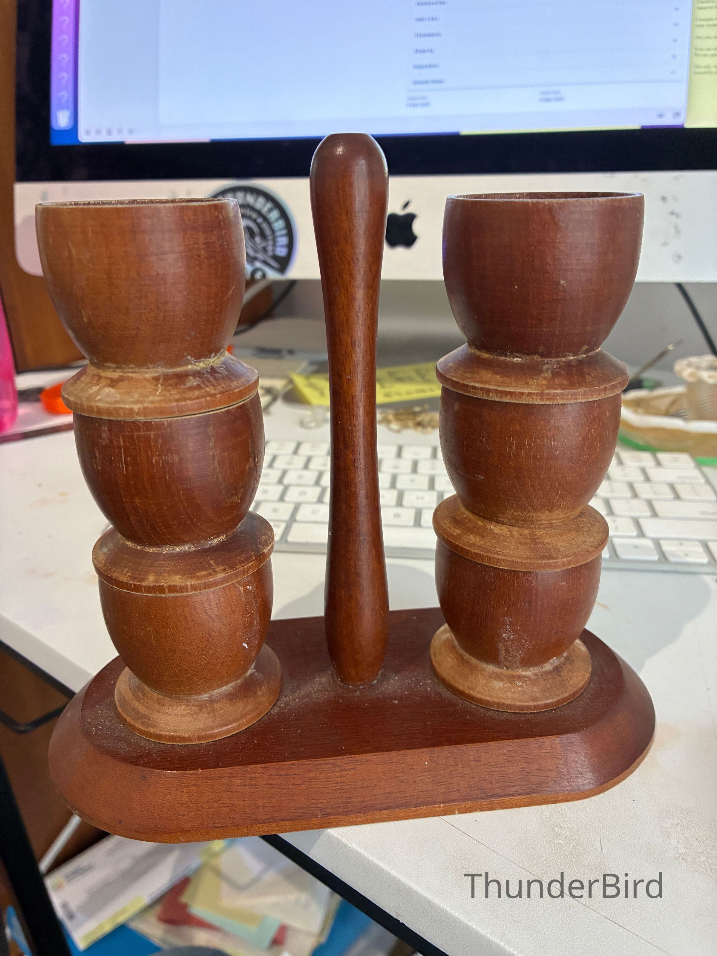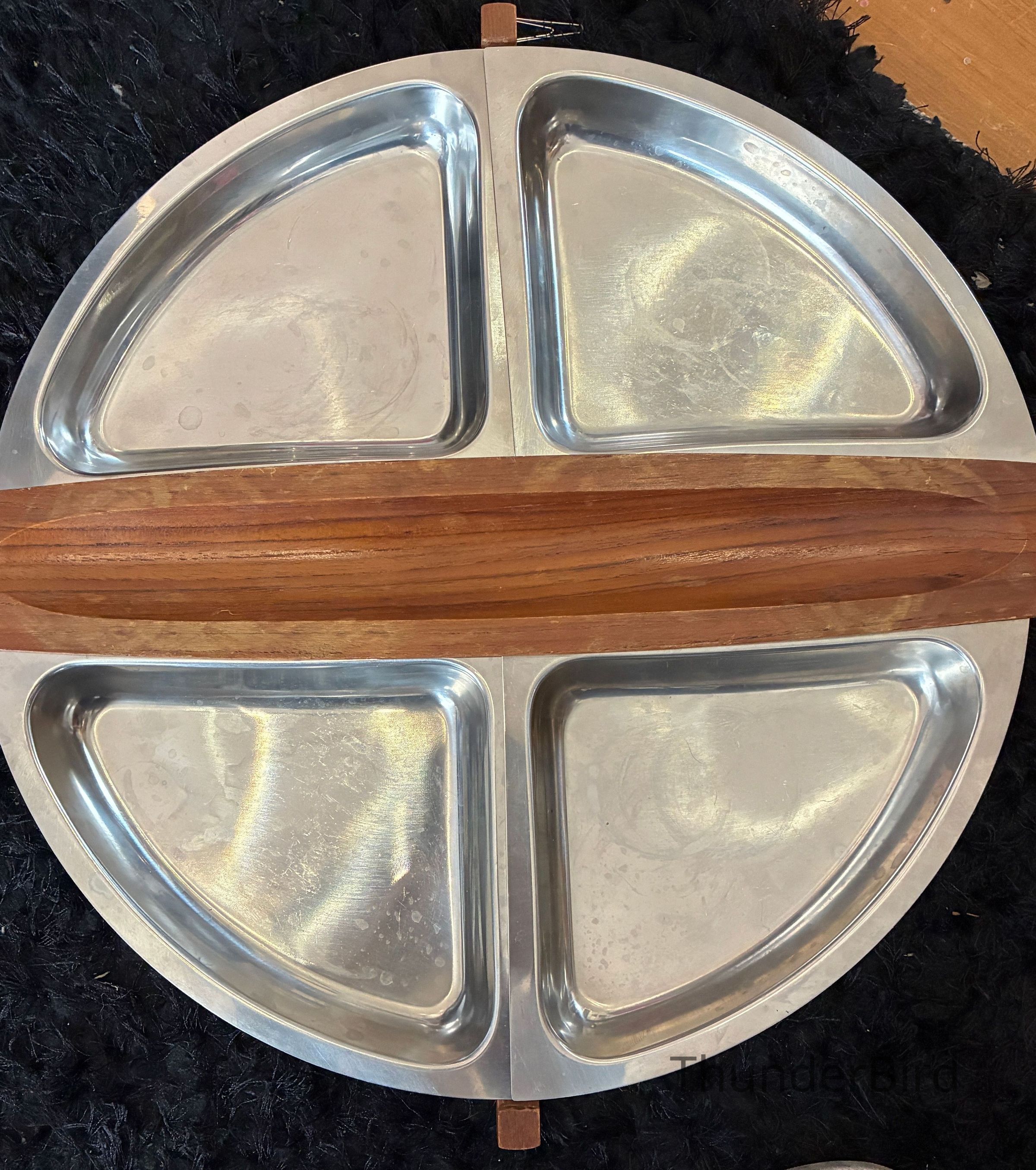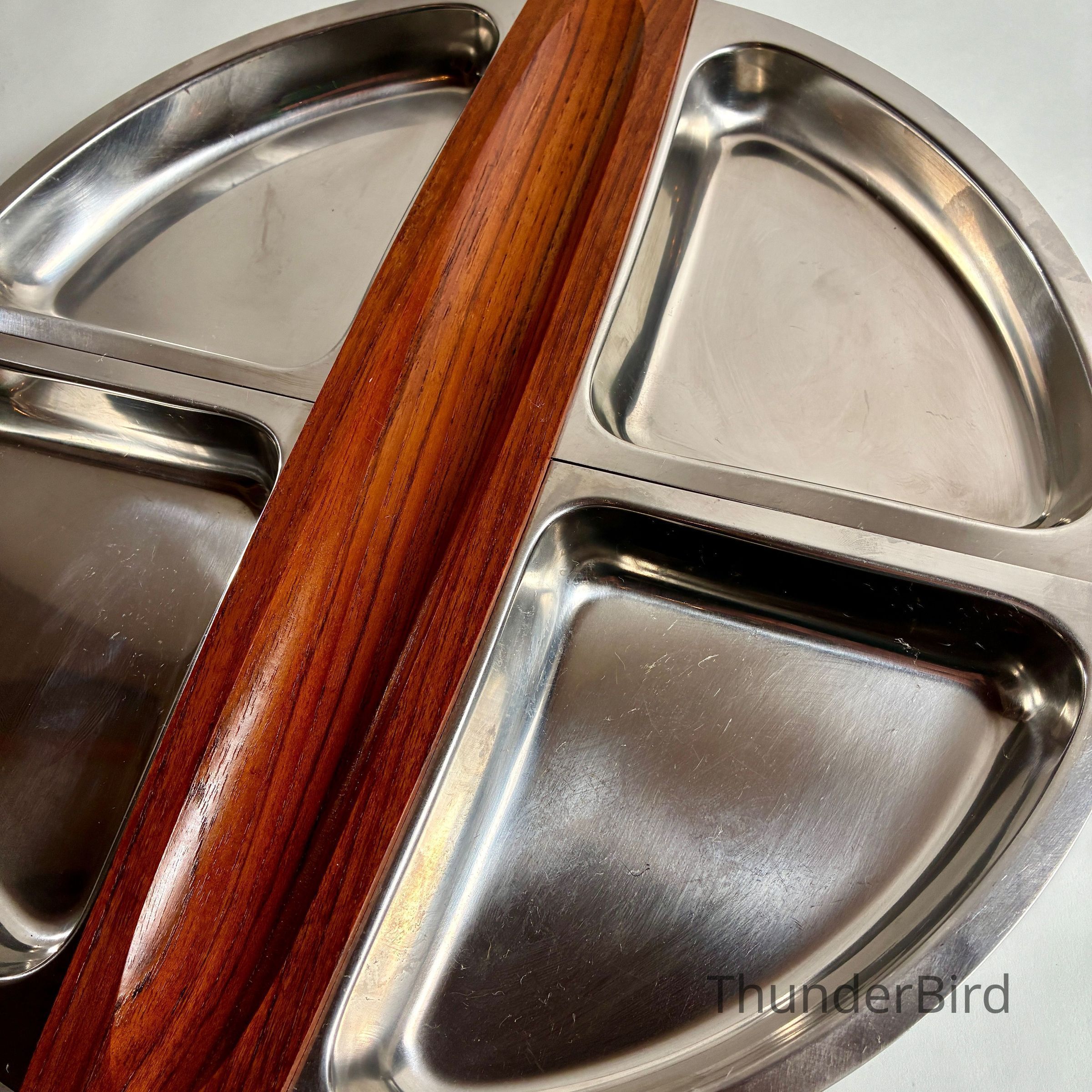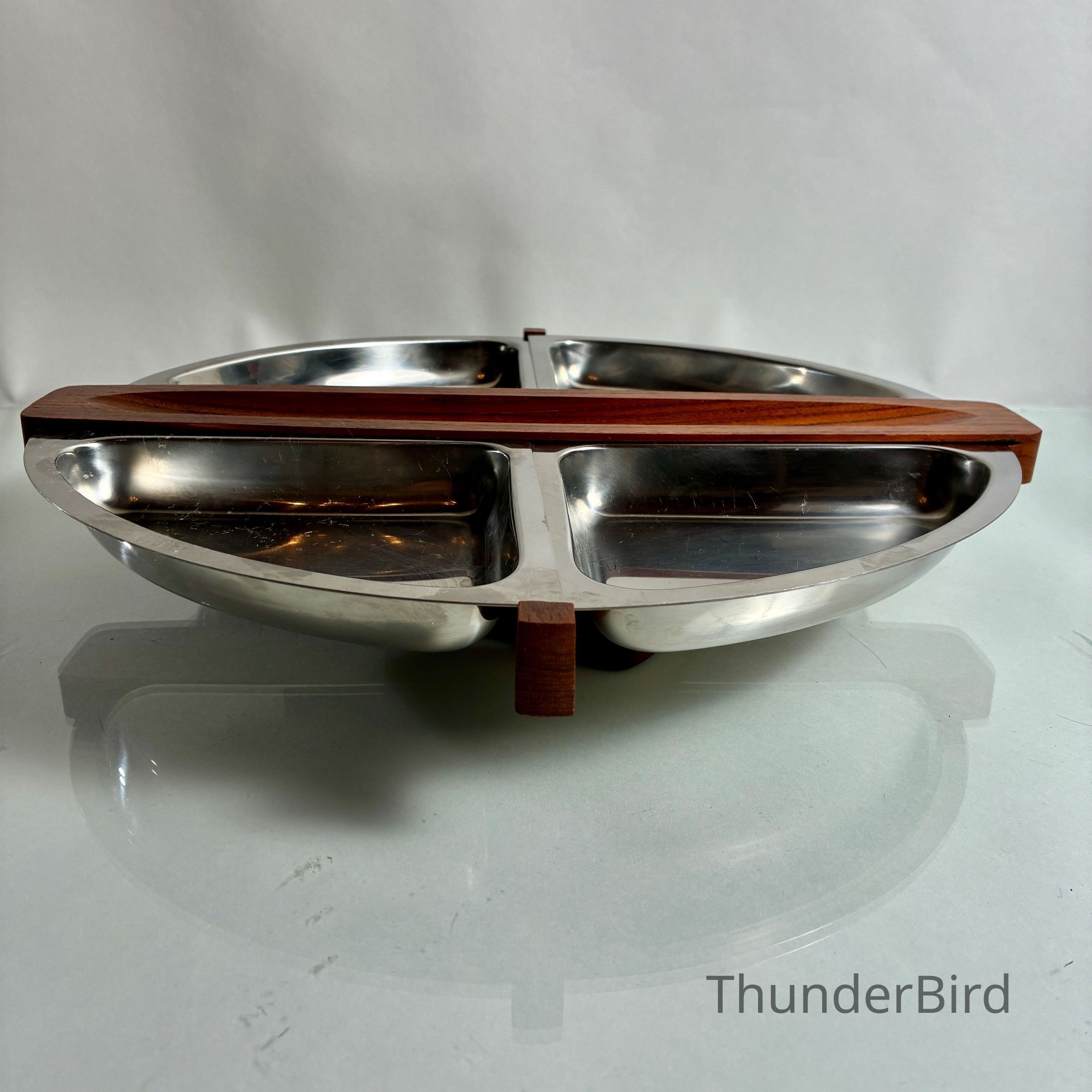 4.9.25d Mid-Cent-Mod Arthur Salm Teak & Stainless Steel Lazy Susan & Egg Cup StackerEntry/Object ID