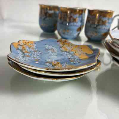 2.10.25a Vintage Japanese Tea Set with Gilded Sakura Blossom Decoration – 19-Piece Carousel 1 Vintage Japanese Tea Set with Gilded Sakura Blossom Decoration – 19-Piece Carousel 2 Vintage Japanese Tea Set with Gilded Sakura Blossom Decoration – 19-Piece Carousel 3 Vintage Japanese Tea Set with Gilded Sakura Blossom Decoration – 19-Piece Carousel 4 Vintage Japanese Tea Set with Gilded Sakura Blossom Decoration – 19-Piece Carousel 5 Vintage Japanese Tea Set with Gilded Sakura Blossom Decoration – 19-Piece Carousel 6 Vintage Japanese Tea Set with Gilded Sakura Blossom Decoration – 19-Piece Carousel 7 Vintage Japanese Tea Set with Gilded Sakura Blossom Decoration – 19-Piece Carousel 8 Vintage Japanese Tea Set with Gilded Sakura Blossom Decoration – 19-Piece Carousel 9 Vintage Japanese Tea Set with Gilded Sakura Blossom Decoration – 19-Piece Carousel 10 Vintage Japanese Tea Set with Gilded Sakura Blossom Decoration – 19-Piece Carousel 11 Description Recycle, Reuse, ReLove! Please make an offer via the ‘Questions’ panel below Thank you for your support of a purely NZ-owned small business A beautifully hand-decorated vintage Japanese porcelain tea set, comprising 19 assorted pieces including cups, saucers, and small bowls. The set includes a mix of saucers, cups with and without handles, and dessert bowls, all with scalloped rims and variations in form that reflect artisanal production. The design is reminiscent of Kutani or Satsuma-inspired export ware, likely mid-20th century (c. 1950s–70s). All items are marked to the base with a Japanese maker's stamp (unidentified). The style suggests production for export, possibly from Arita or another key porcelain centre. M E A S U R E S: Large saucers x4 Height: 2 cm Small saucers x3 Height: 1 cm Diameter: 10.5 cm High saucers x2 Height: 3 cm Diameter: 10.5 cm Cups (4 without handle, 1 with handle) Height: 7.2 cm Diameter: 6 cm Bowls x4 Height: 5.3 cm Diameter: 9 cm C O N D I T I O N: Good vintage condition. No chips, cracks, or restorations noted. Minor wear to gilt detailing consistent with age and use. Please refer to photos for detailed views of decoration and condition. P L E A S E N O T E: We recommend carefully reviewing the provided photos as they are integral to the item's description. We cannot be held liable for any damages that may occur during transit. Ref: 2.10.25a Details Condition: Used Shipping & pick-up options Destination & description Price Courier - Wellington $7.20 Courier - Wellington > Rural $14.01 Courier - Rest of North Island $25.85 Courier - Rest of North Island > Rural $31.74 Courier - South Island $46.00 Courier - South Island > Rural $51.89 Seller does not allow pick-ups Learn more about shipping & delivery options. Payment Options Pay instantly by card, Ping balance or saved bank account. What's Ping? Four fortnightly interest-free payments. What's Afterpay? Other options Cash, NZ Bank Deposit Questions & Answers thunderbirdvtg enter comment 500 characters remaining Do not use this feature to bypass the auction process or for commercial purposes. Abuse may result in suspension of your account. No questions have been asked! Vintage Japanese Tea Set with Gilded Sakura Blossom Decoration – 19-PieceEntry/Object ID