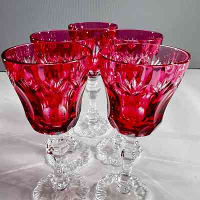 20.11.25b Vintage Cut to Clear Cranberry Crystal Glasses, Set of FiveEntry/Object ID