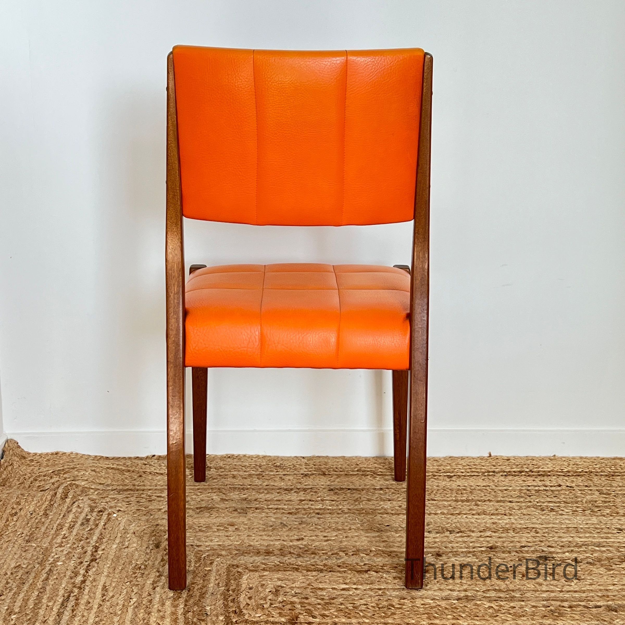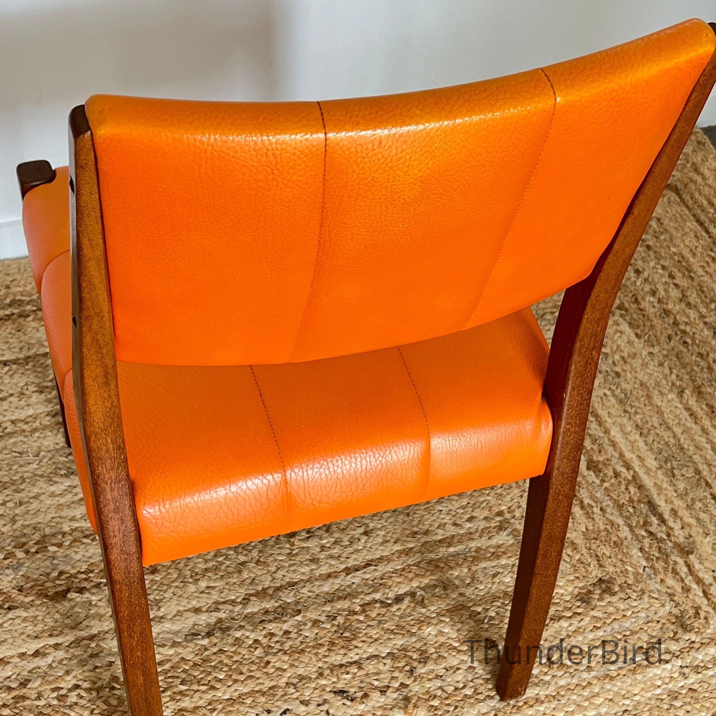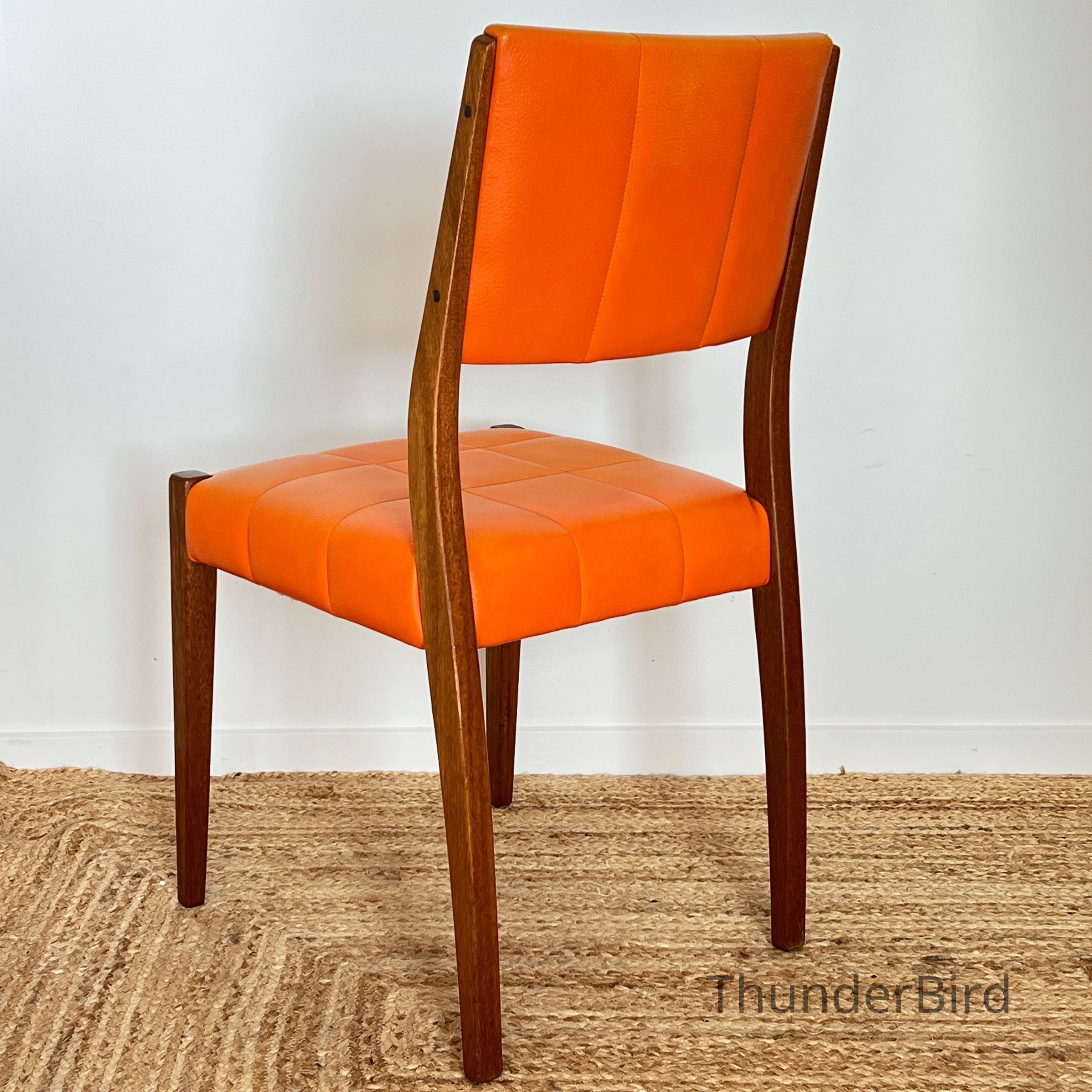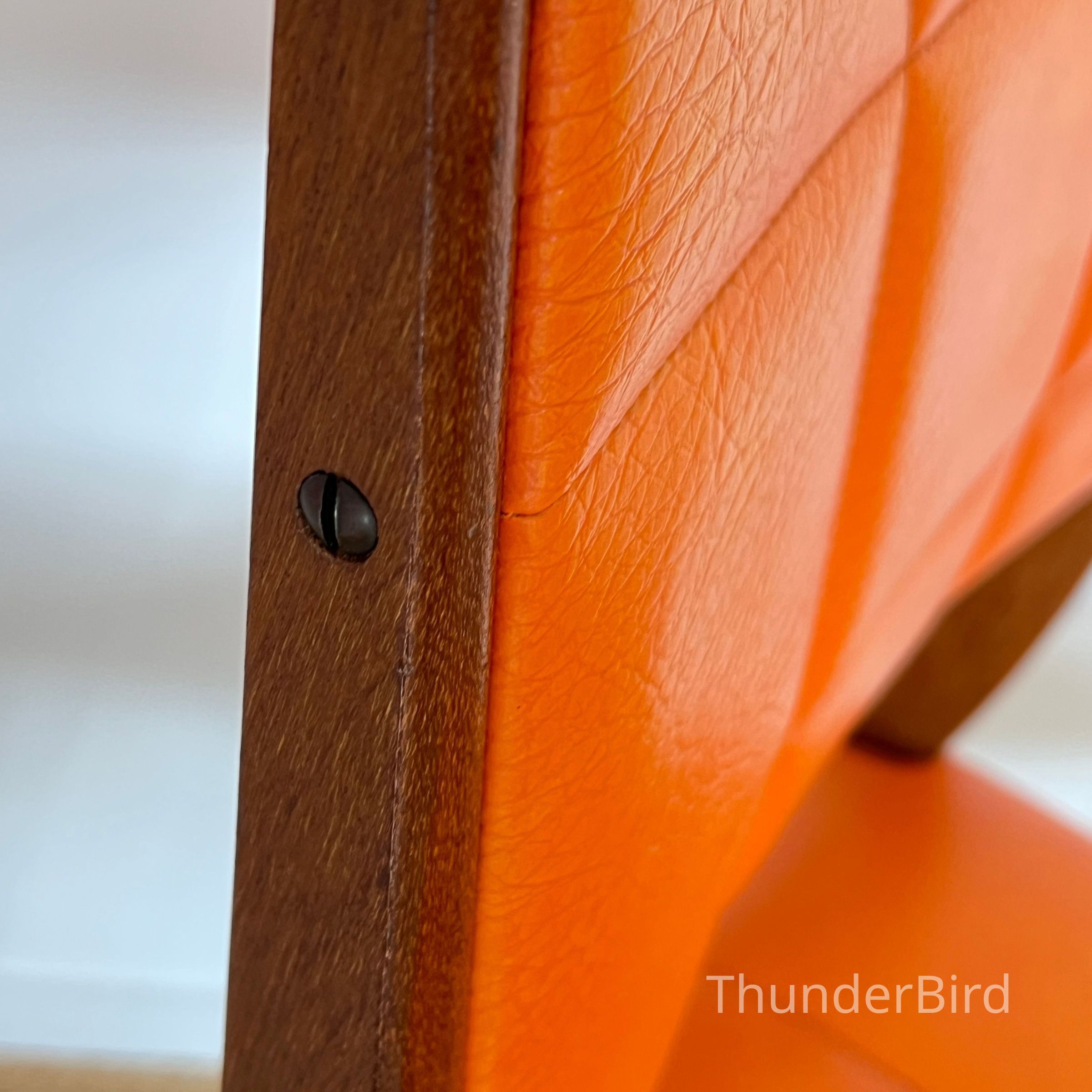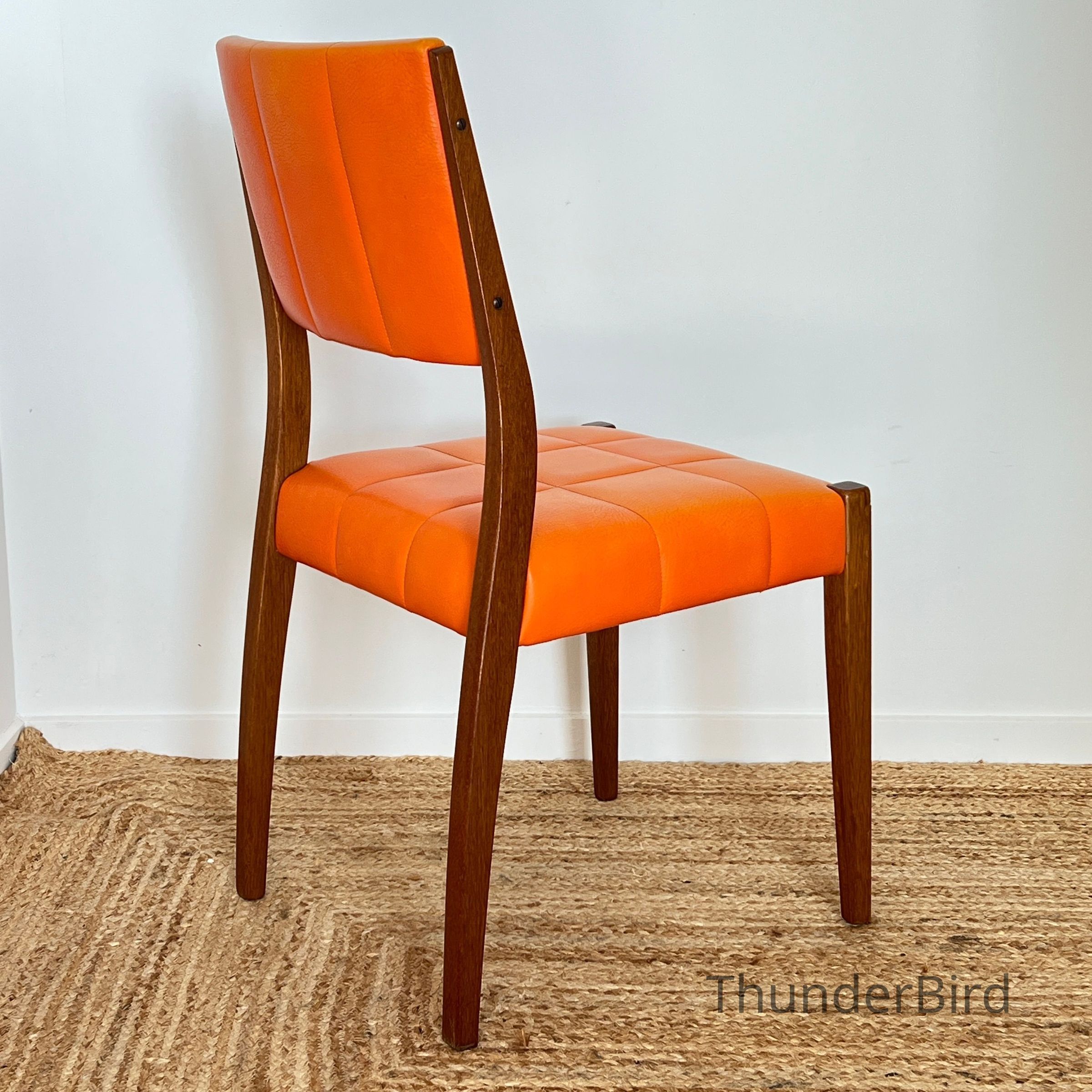 21.11.25a Authentic Mid Century Fler 64 Teak Dining Chairs In Vivid Orange VinylEntry/Object ID