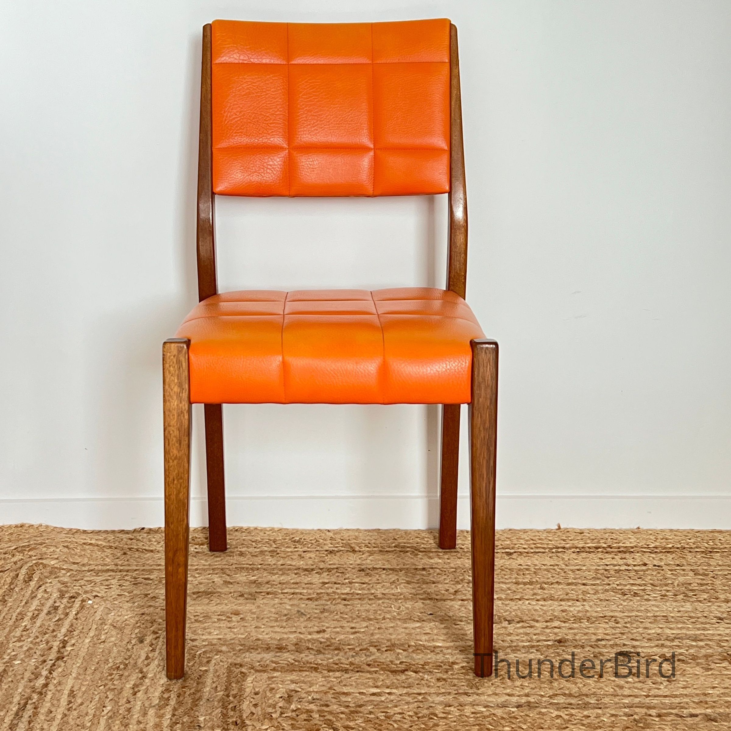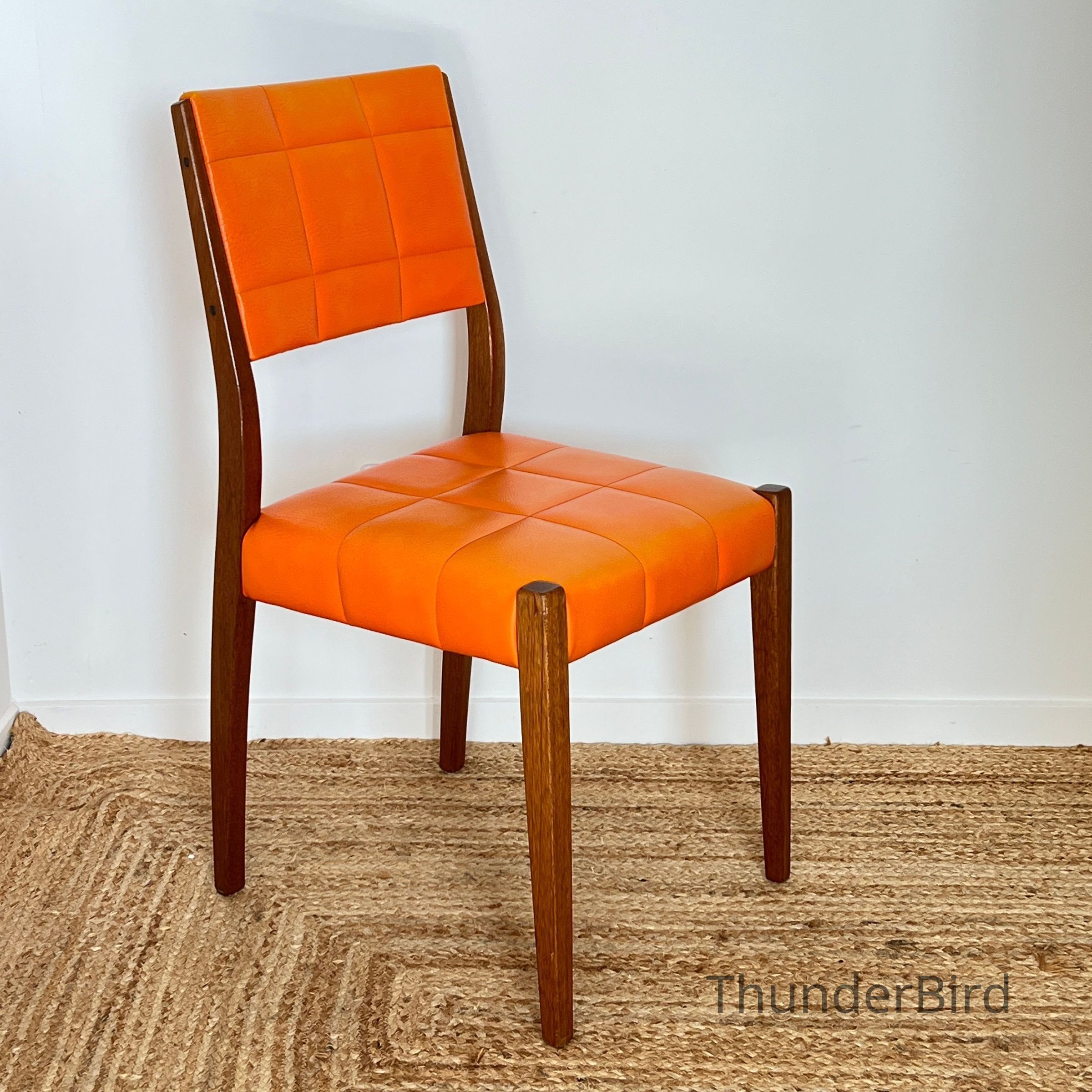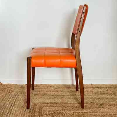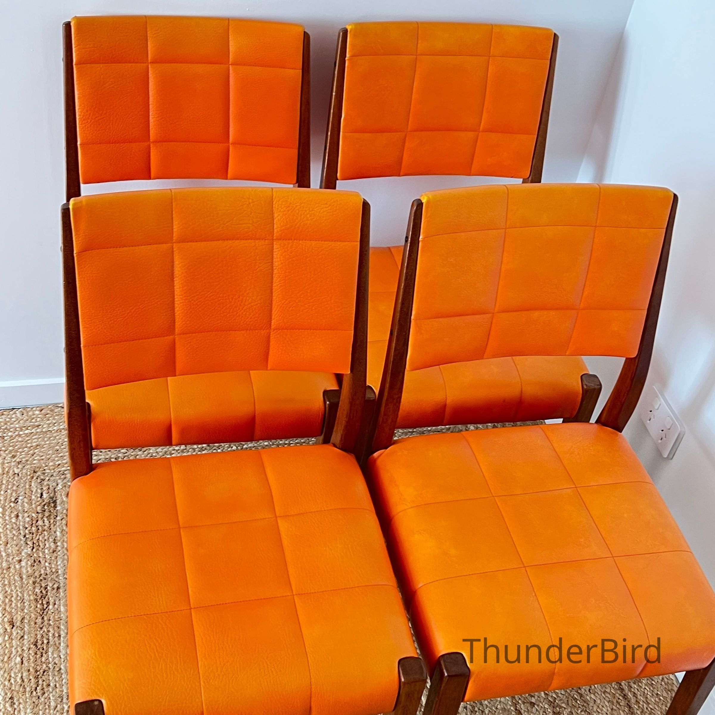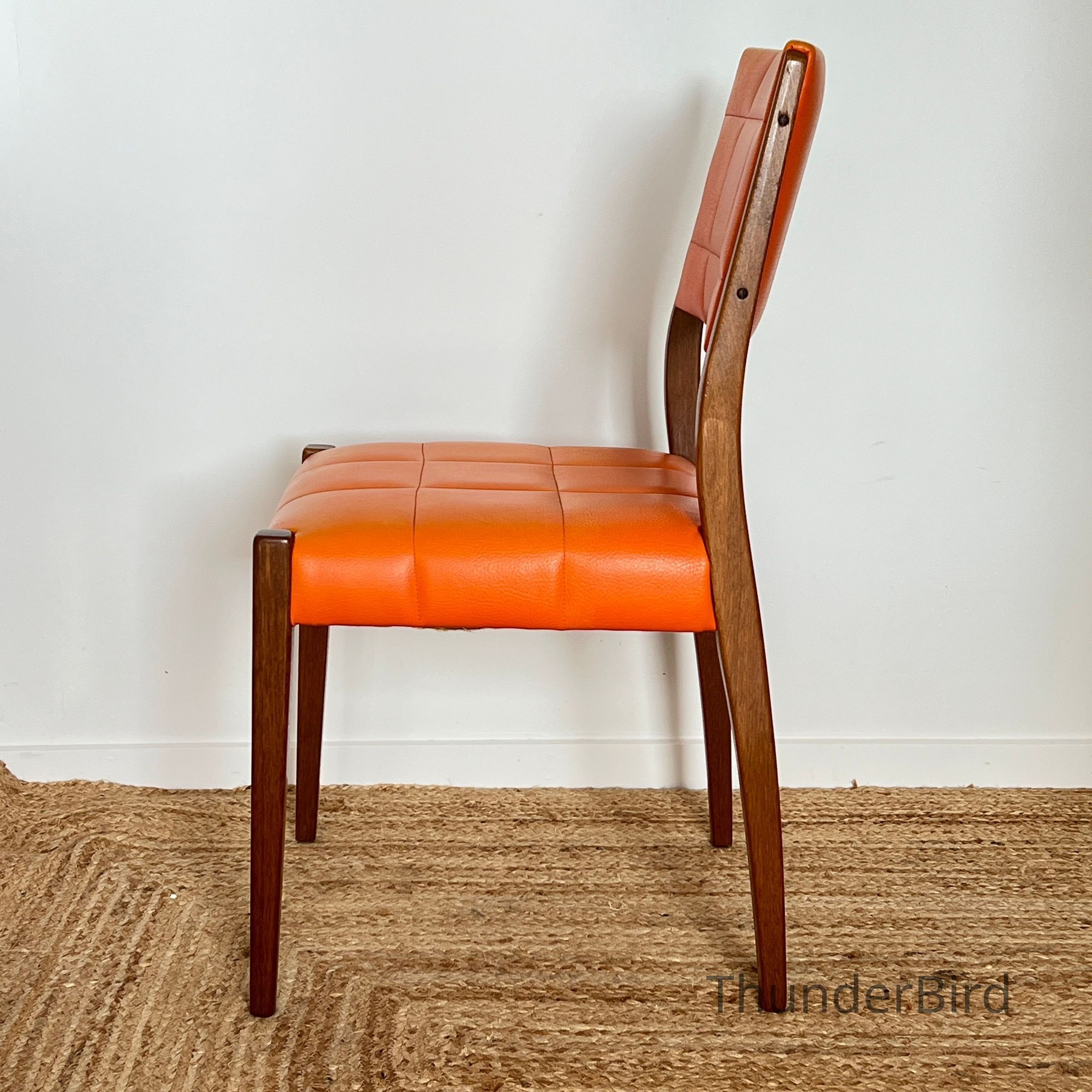 21.11.25a Authentic Mid Century Fler 64 Teak Dining Chairs In Vivid Orange VinylEntry/Object ID