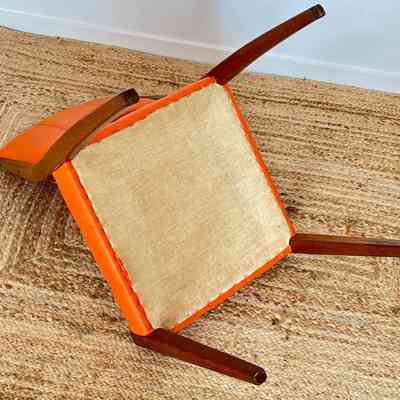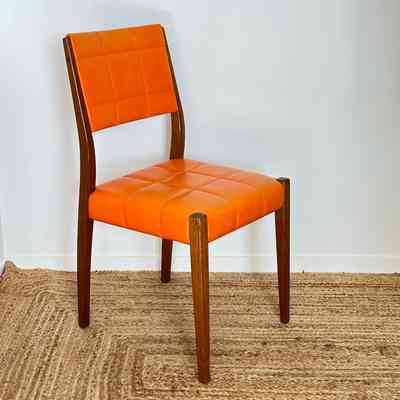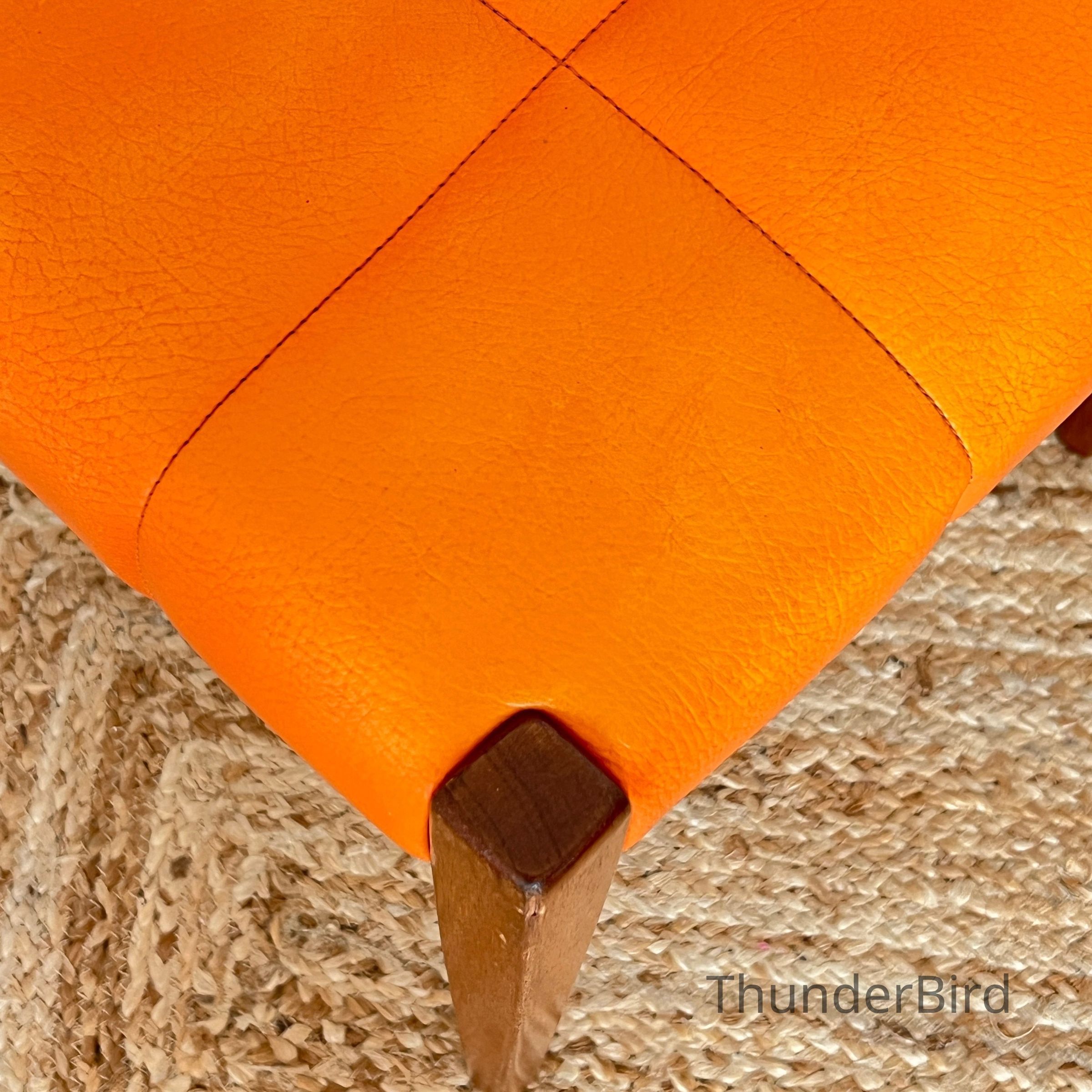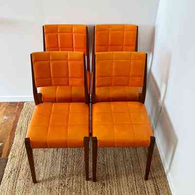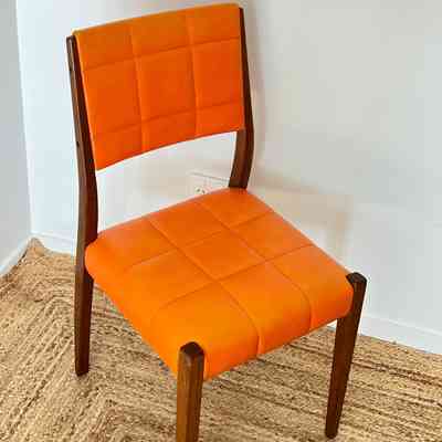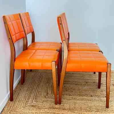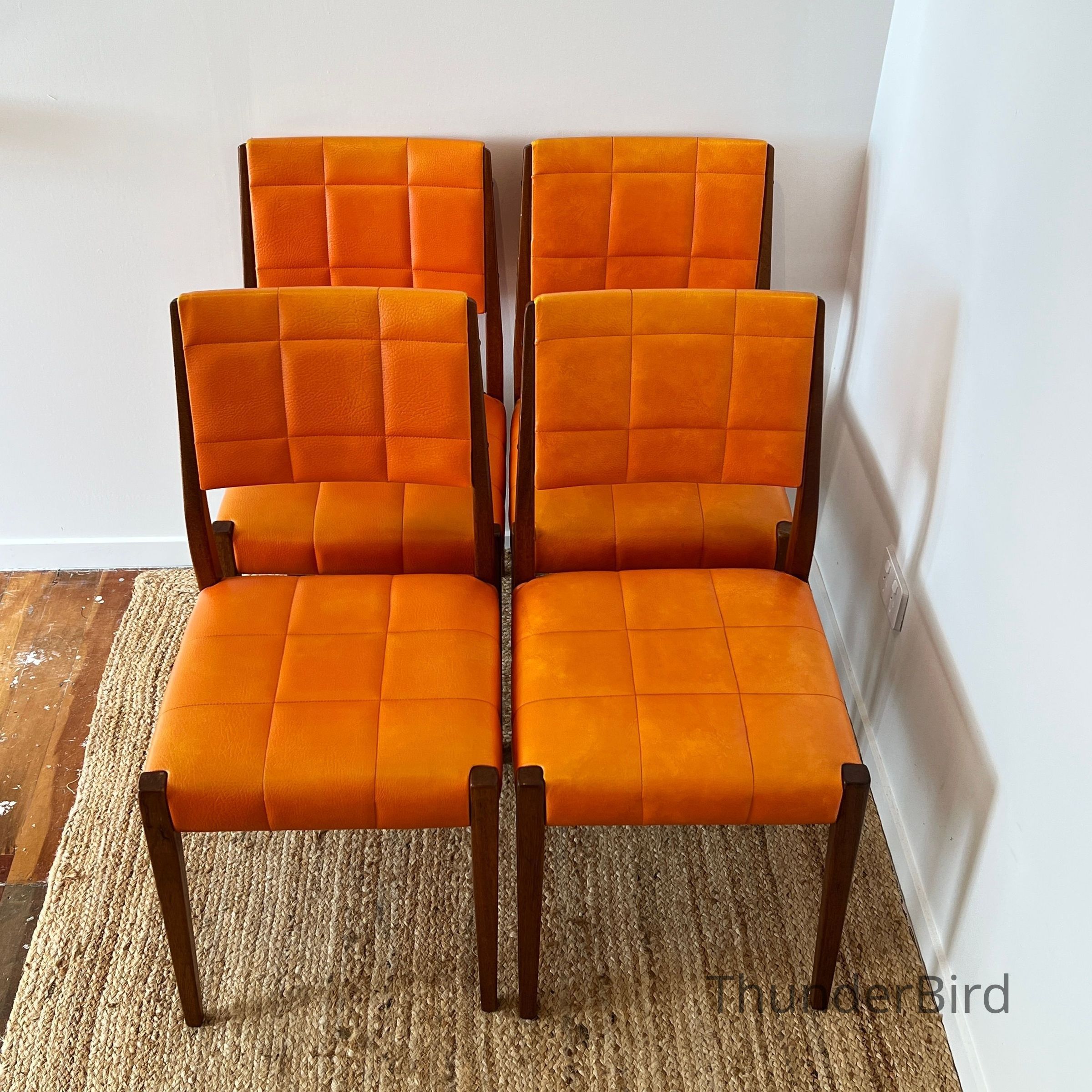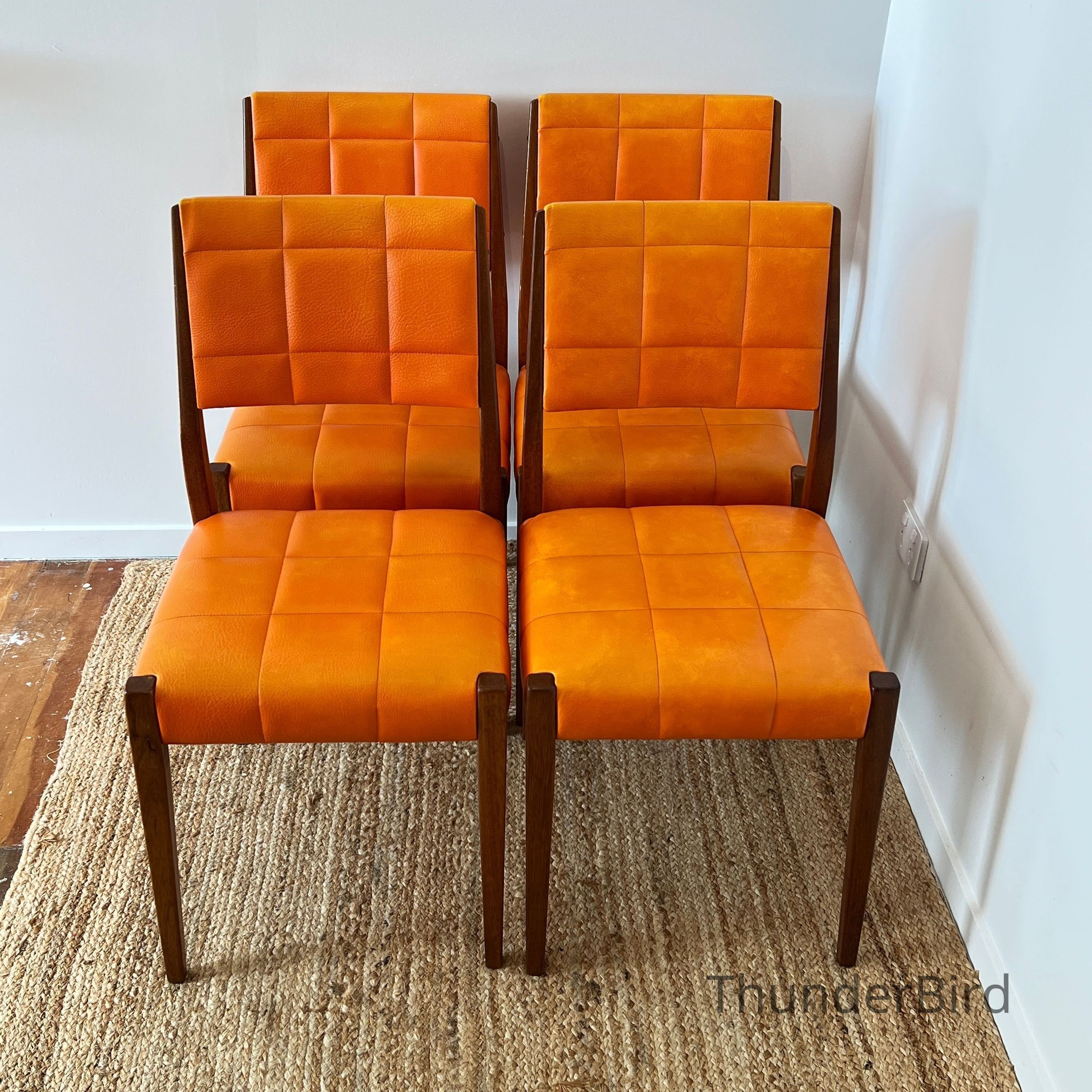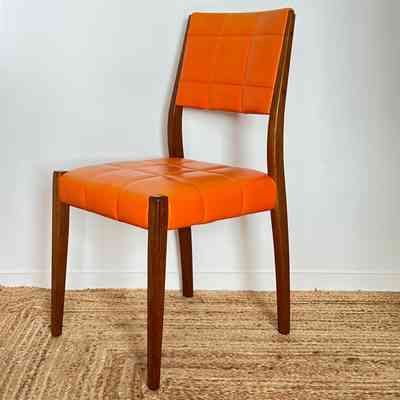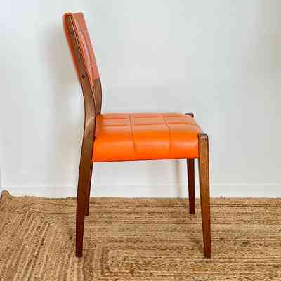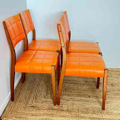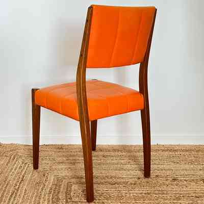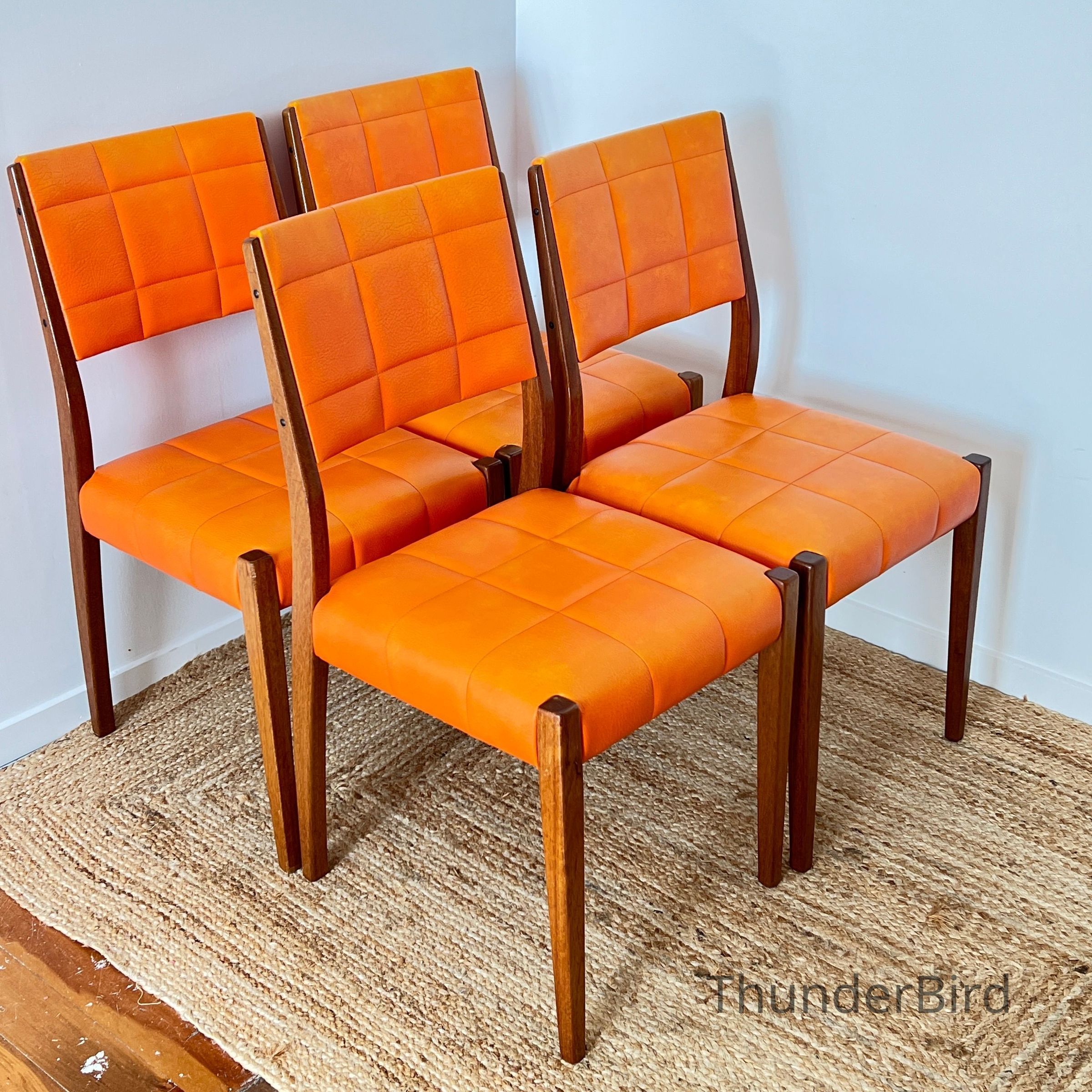 21.11.25a Authentic Mid Century Fler 64 Teak Dining Chairs In Vivid Orange VinylEntry/Object ID