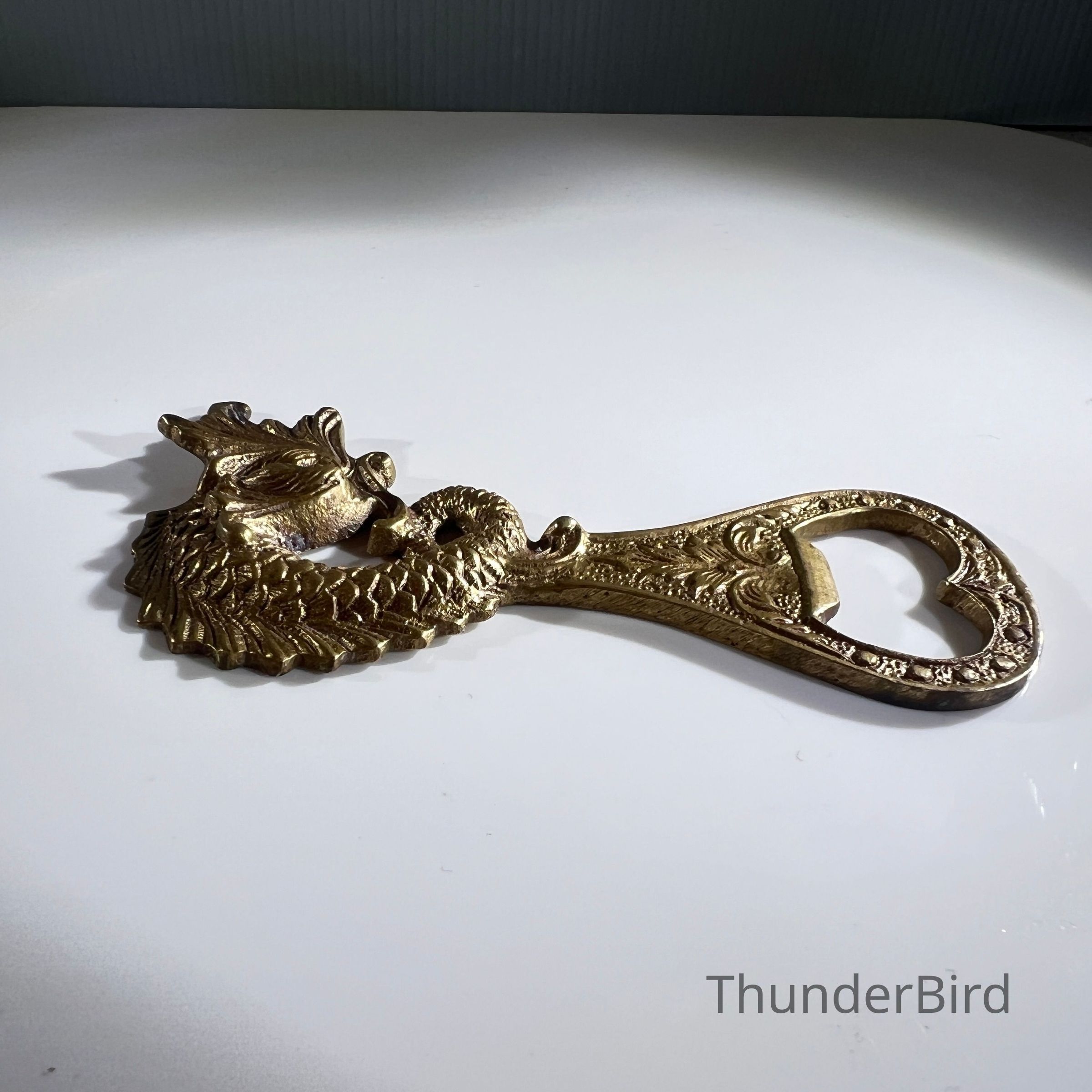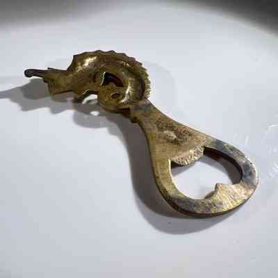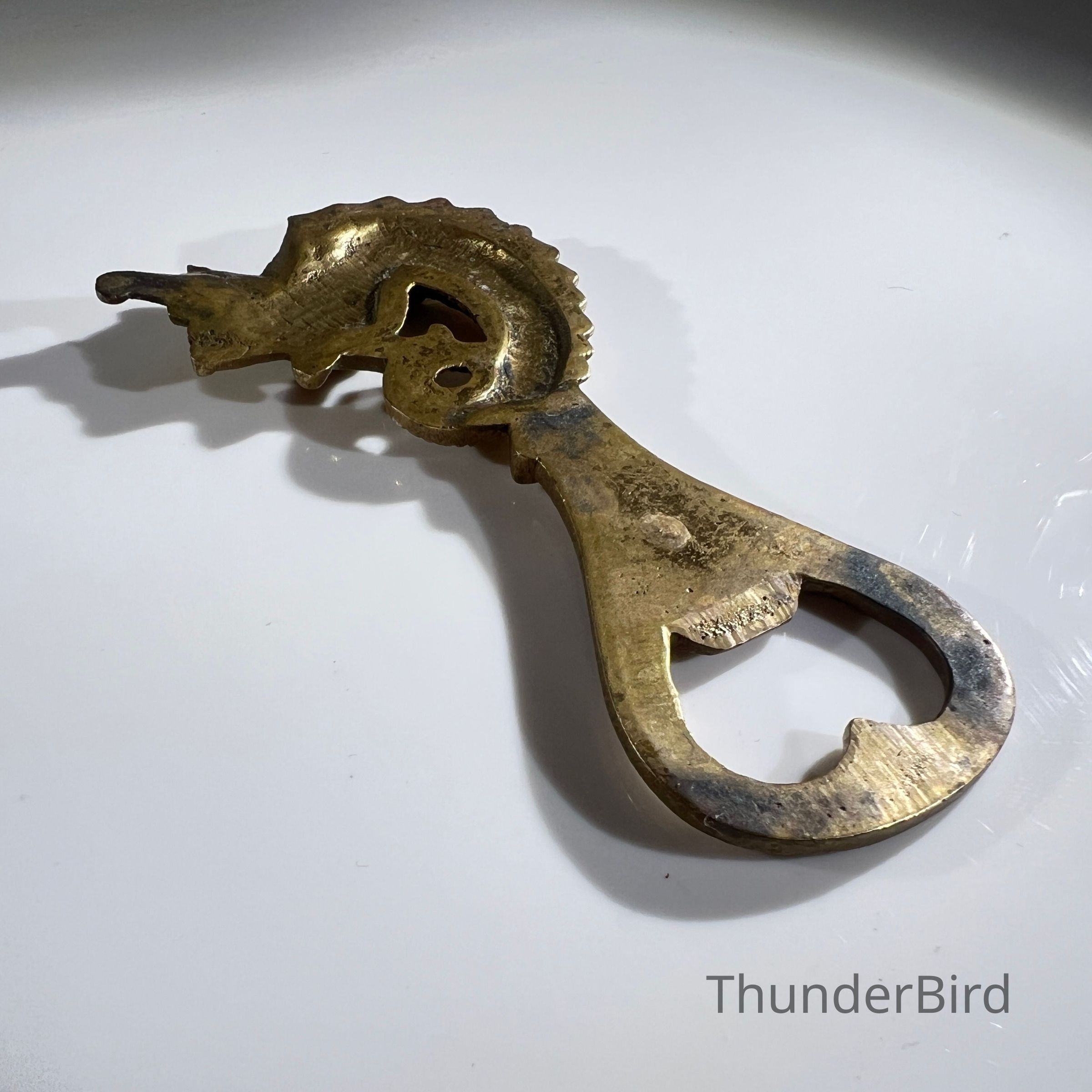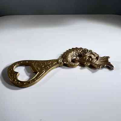 24.11.25c Vintage Brass Dragon / Seahorse Bottle Opener USSREntry/Object ID