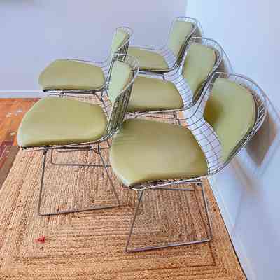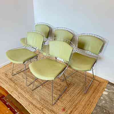 28.11.25b Authentic Early 2000s Bertoia Wire Side Chairs With Leather Pads (Set Of Five)Entry/Object ID