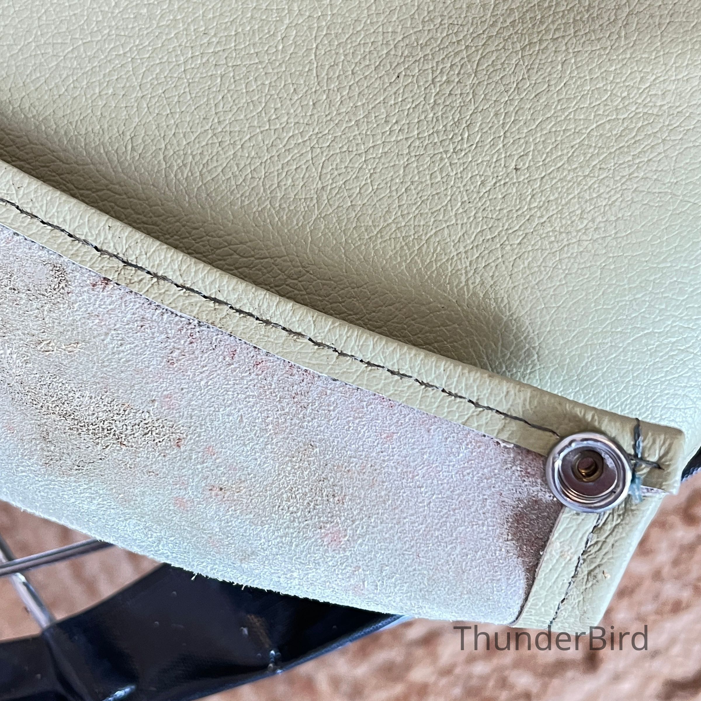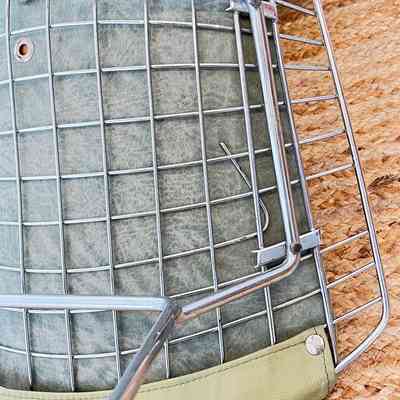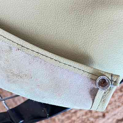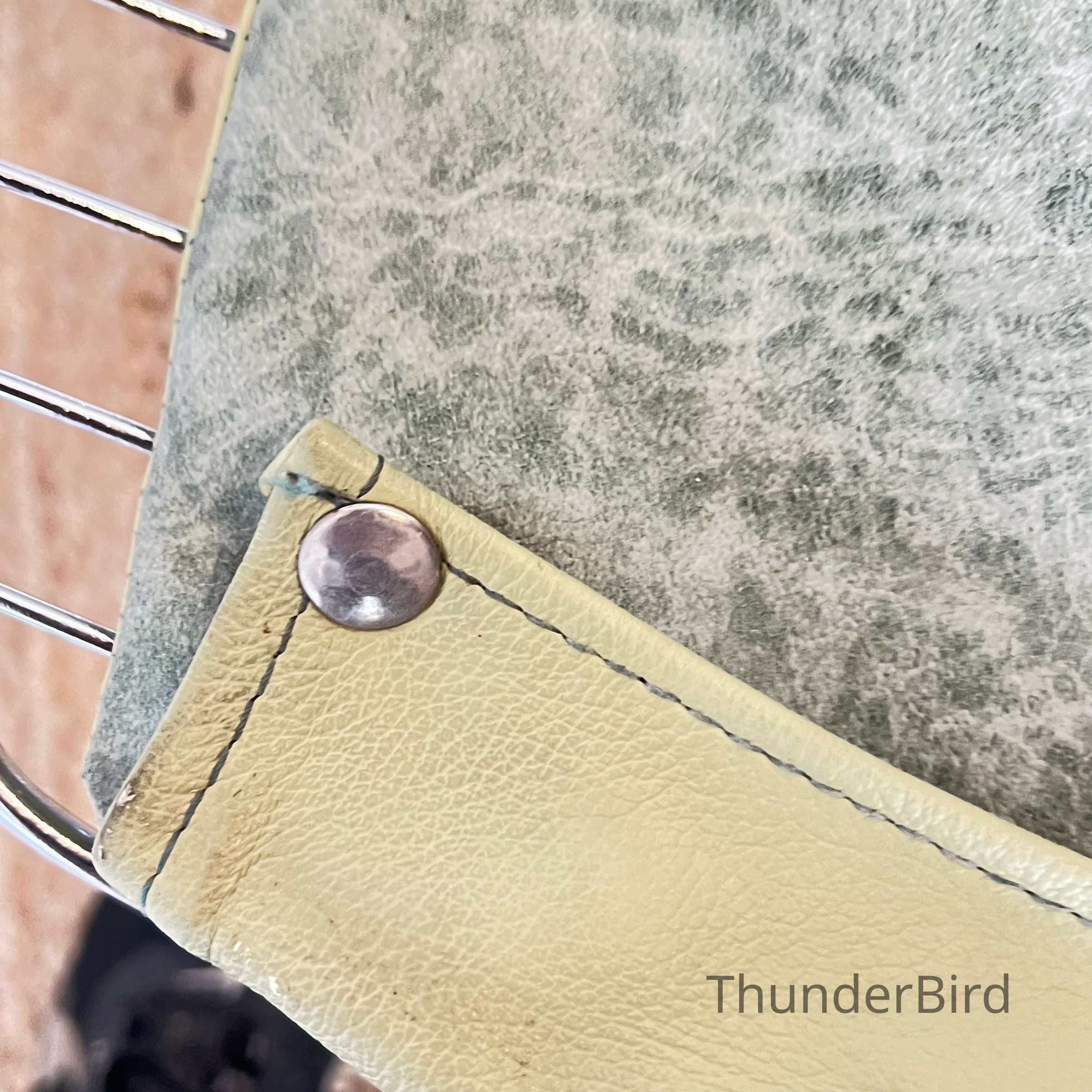 One chair has damage to a section of base wire which is hidden beneath the seat pad. Additional wear or wire fatigue may be present. Visible areas show general age-related wear to the chrome, minor oxidation, and expected surface marks. On some chairs black tape appears to have been placed on the front seat edge wire to possibly protect the leather seat pads from wear. Leather pads show creasing and light discolouration consistent with use. All chairs remain stable and usable.