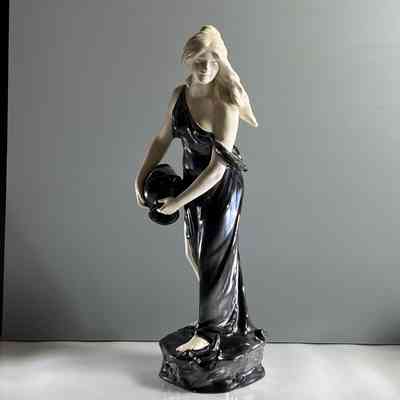 29.11a Art Nouveau Theodore Schoop Maiden Figurine In Black And Ivory GlazeEntry/Object ID
