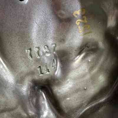 Overall very good condition for age. No cracks or repairs observed. Light wear and minor firing irregularities present, typical of early twentieth century ceramic production. The T Schoop signature is faint due to glaze pooling on the base.