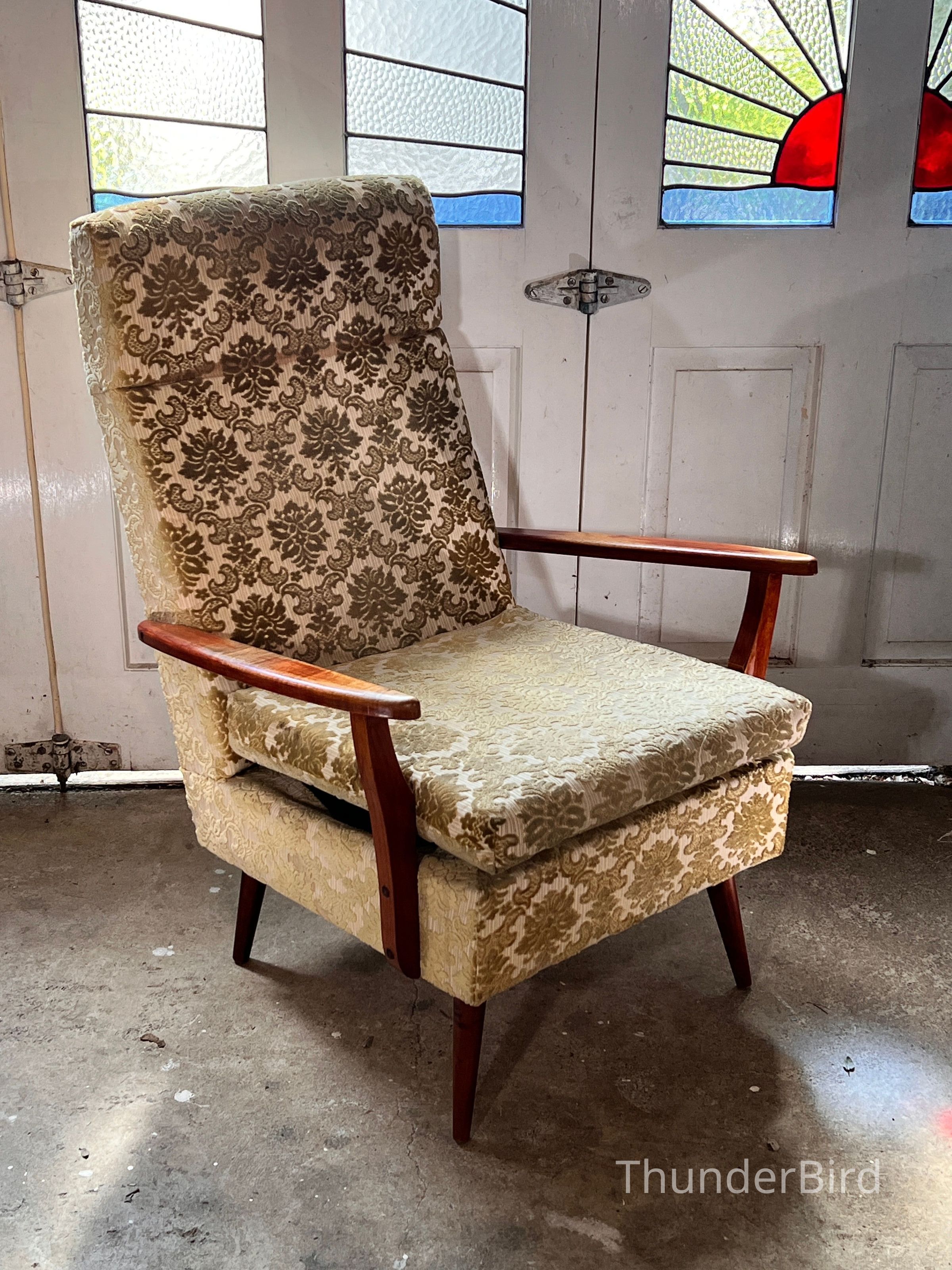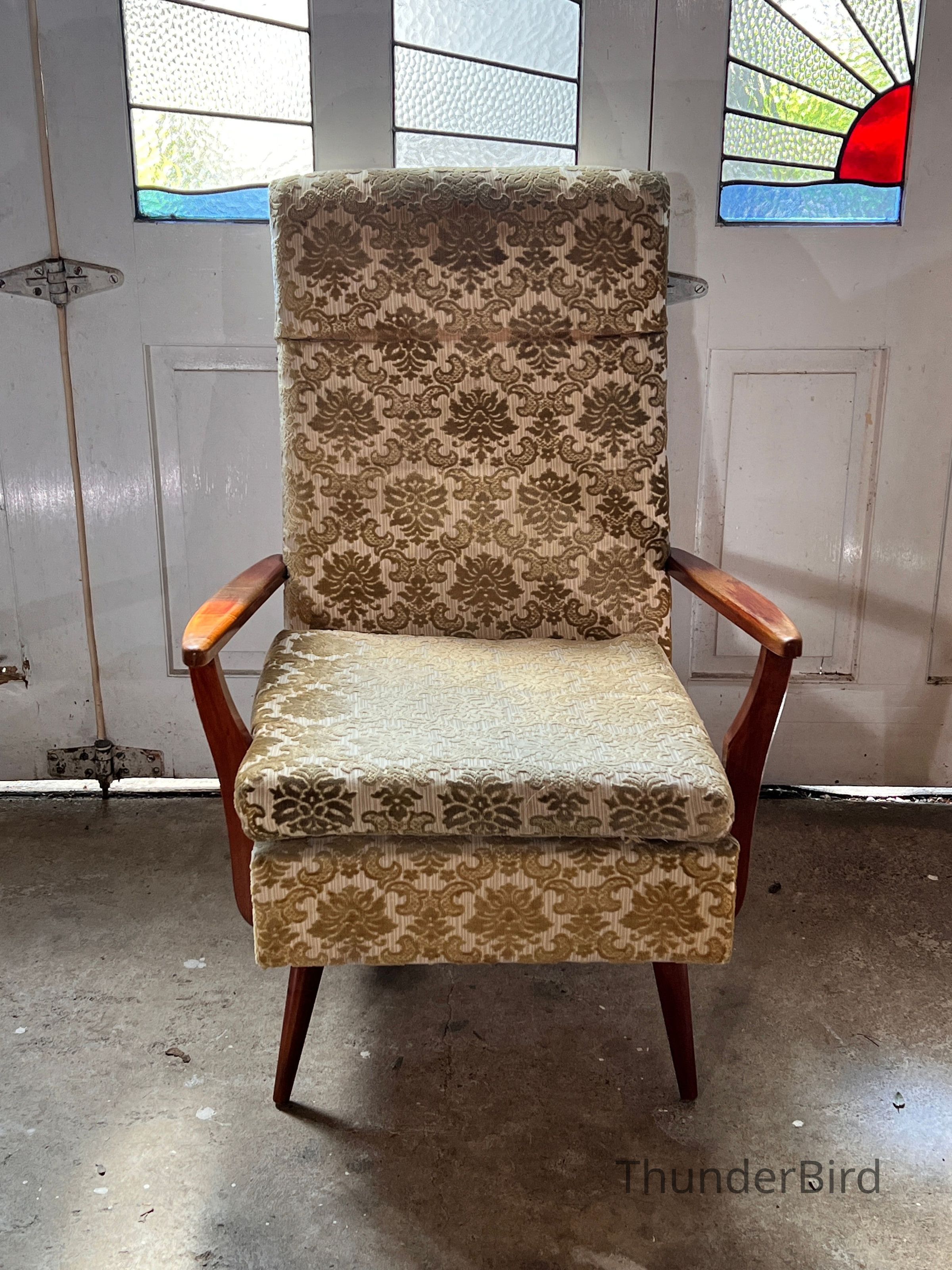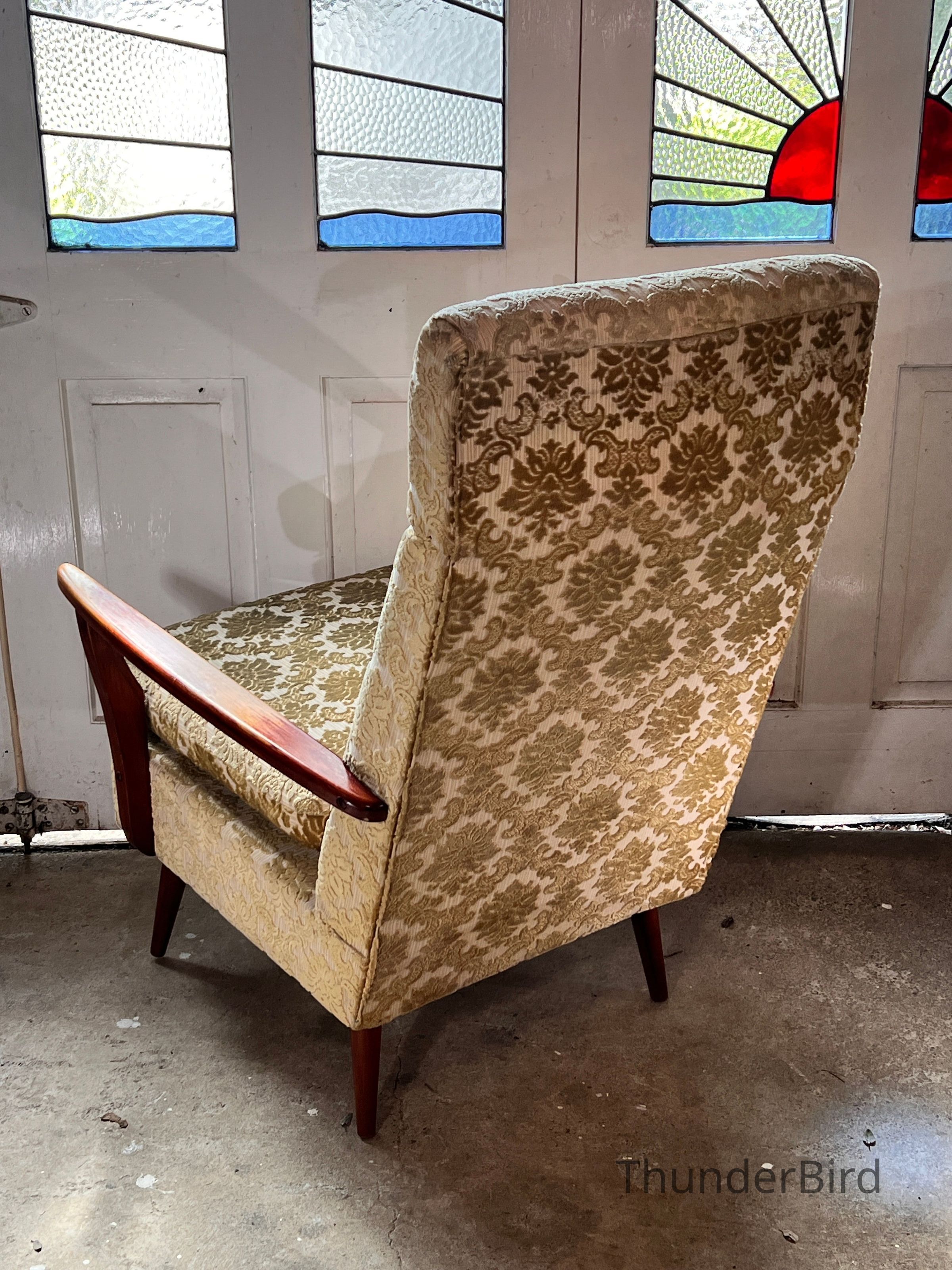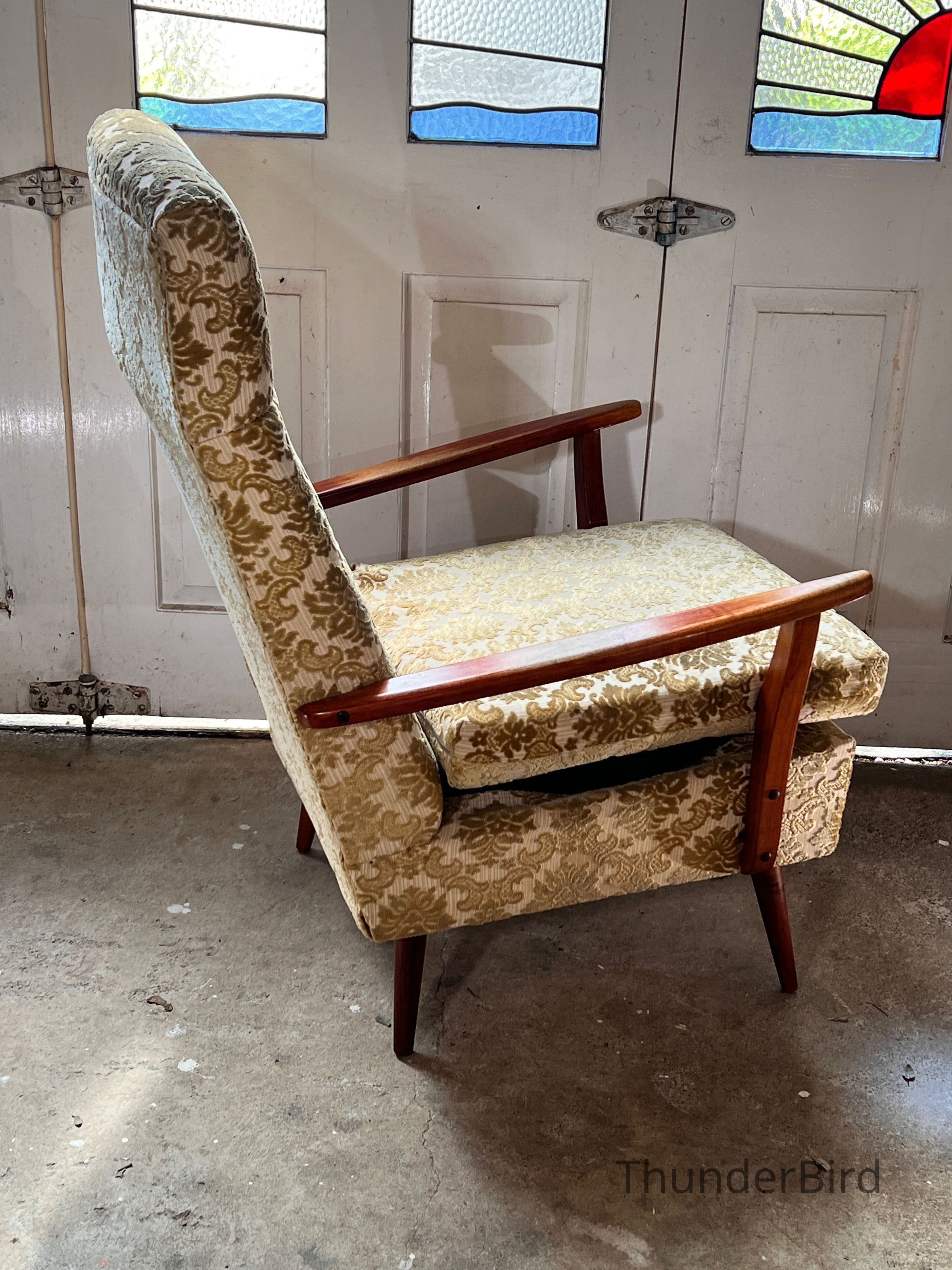 'DIKBILT' [Label] Plush Gold Mid-Century NZ Made 'Contour' Teak Arm ChairEntry/Object ID