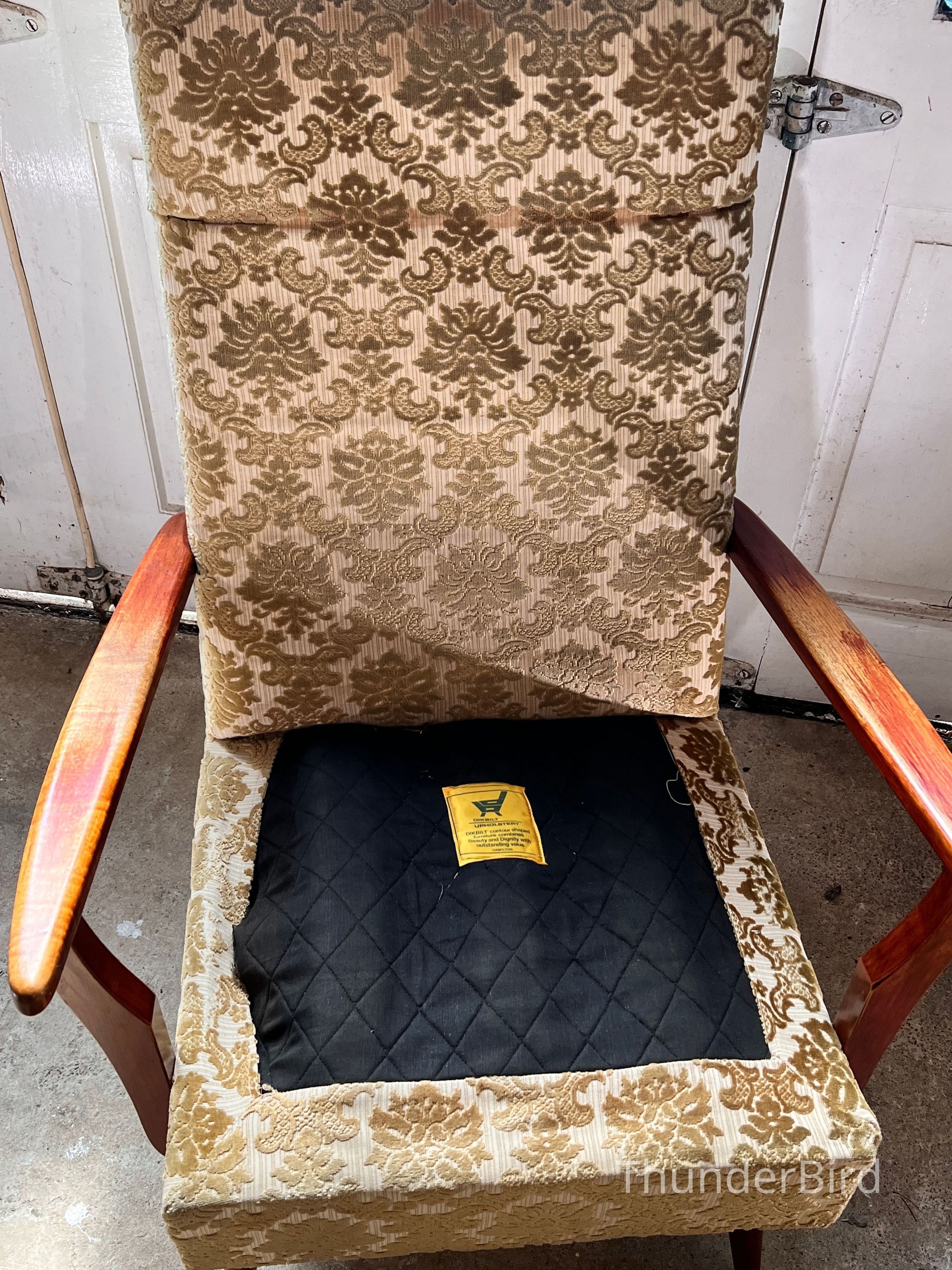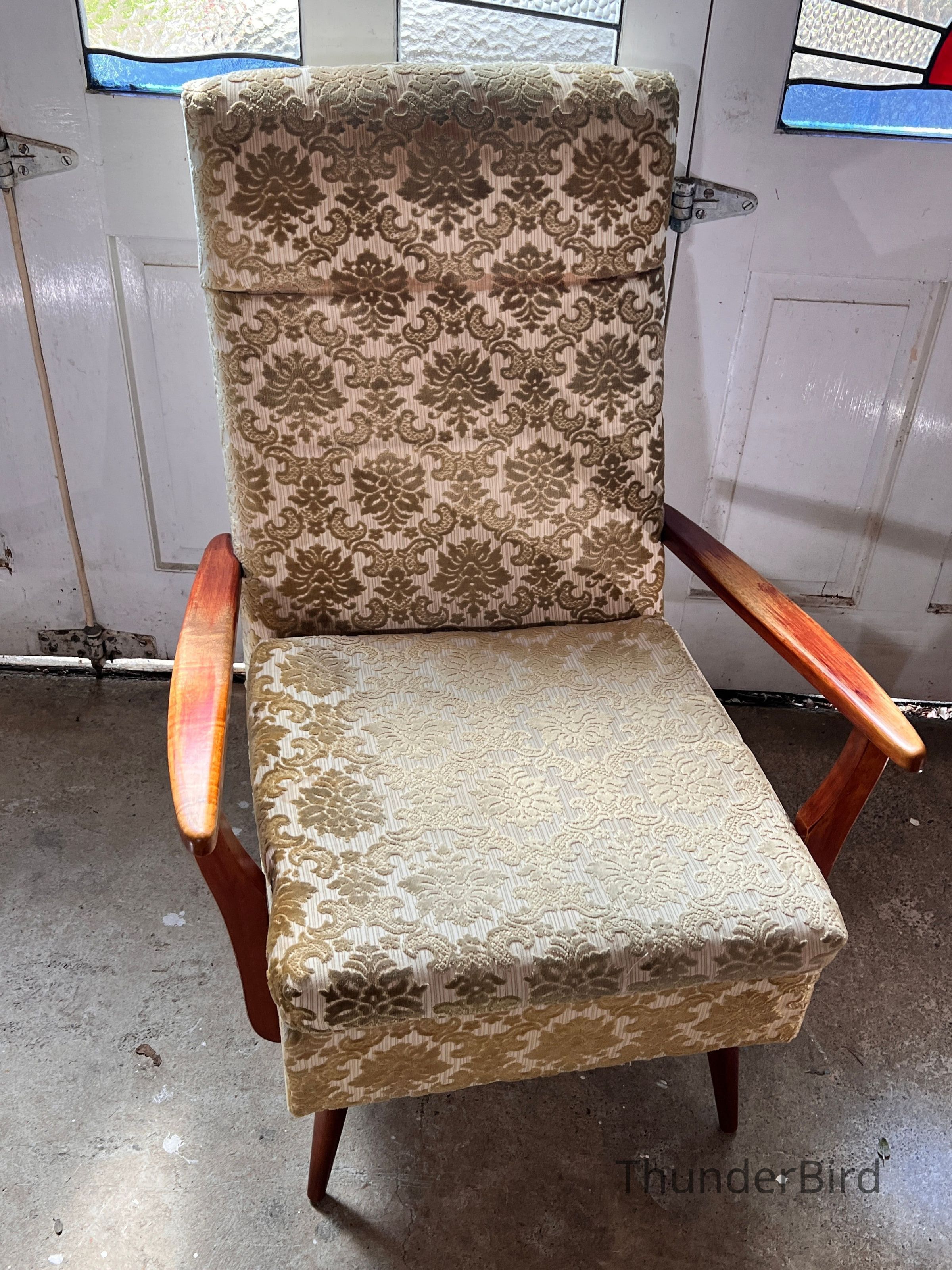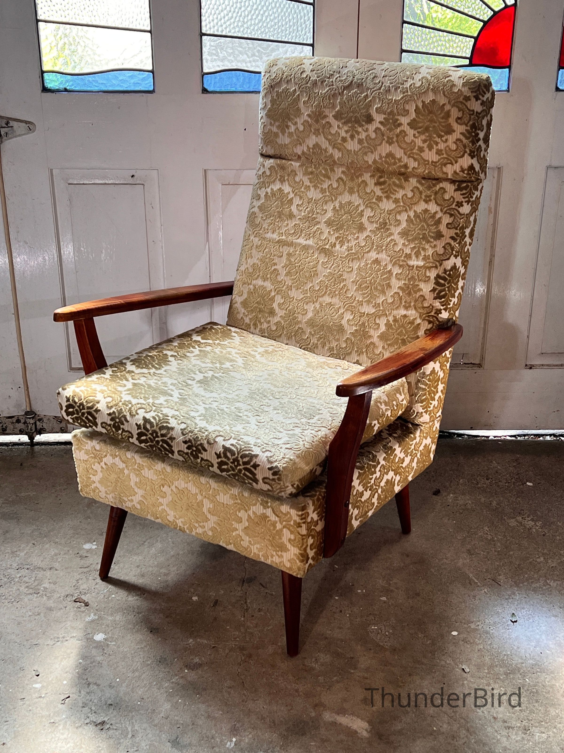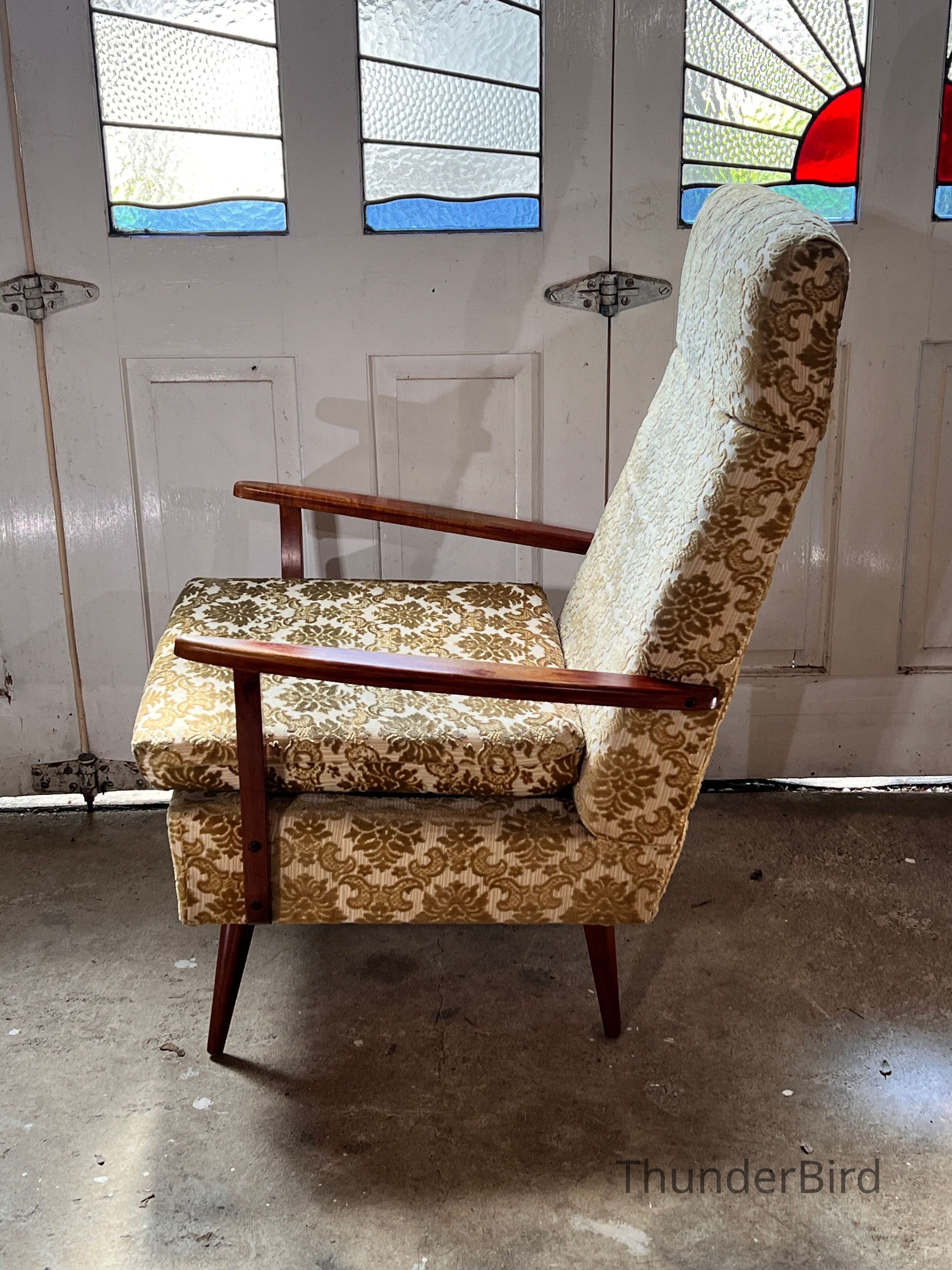 'DIKBILT' [Label] Plush Gold Mid-Century NZ Made 'Contour' Teak Arm ChairEntry/Object ID