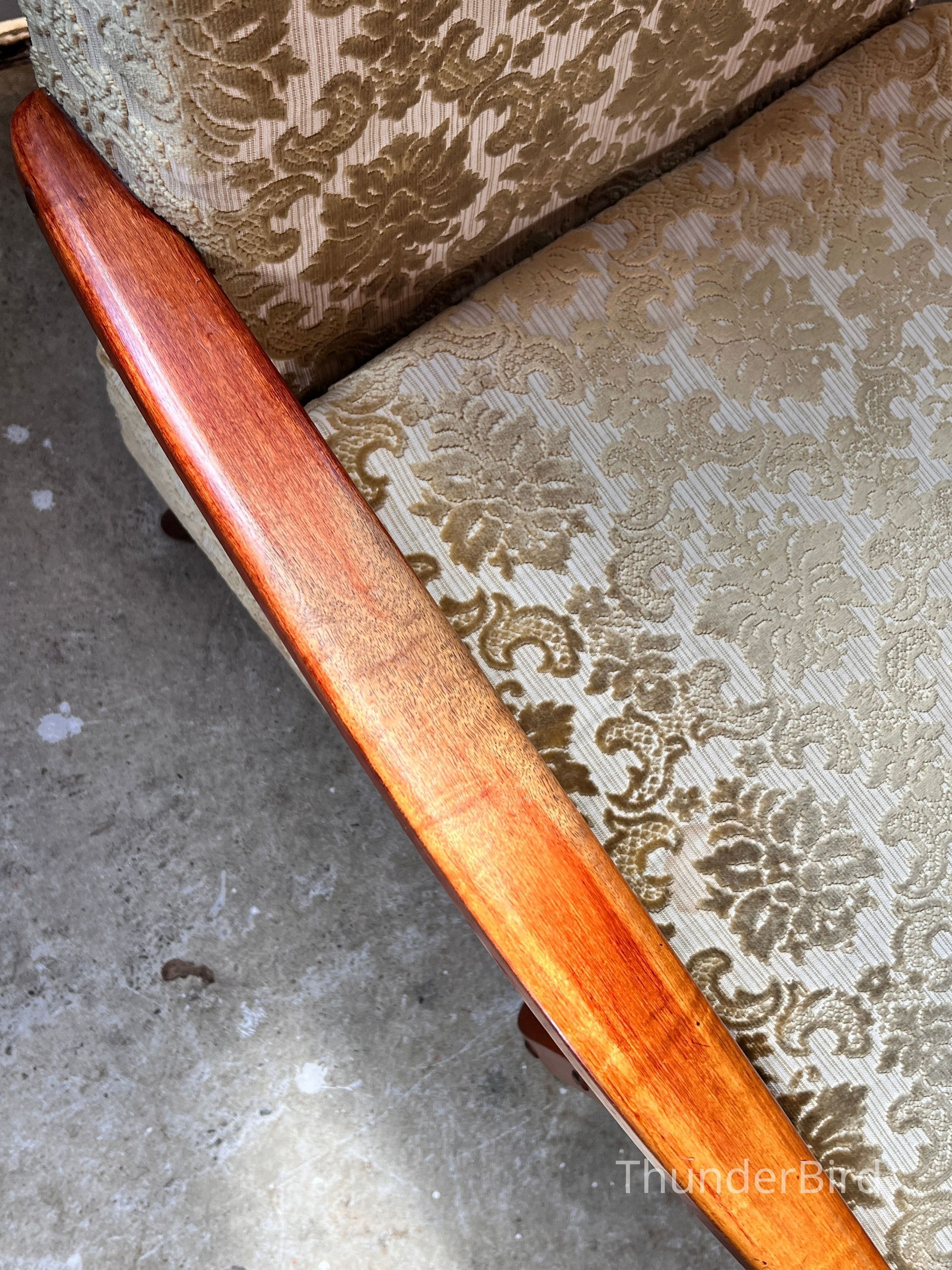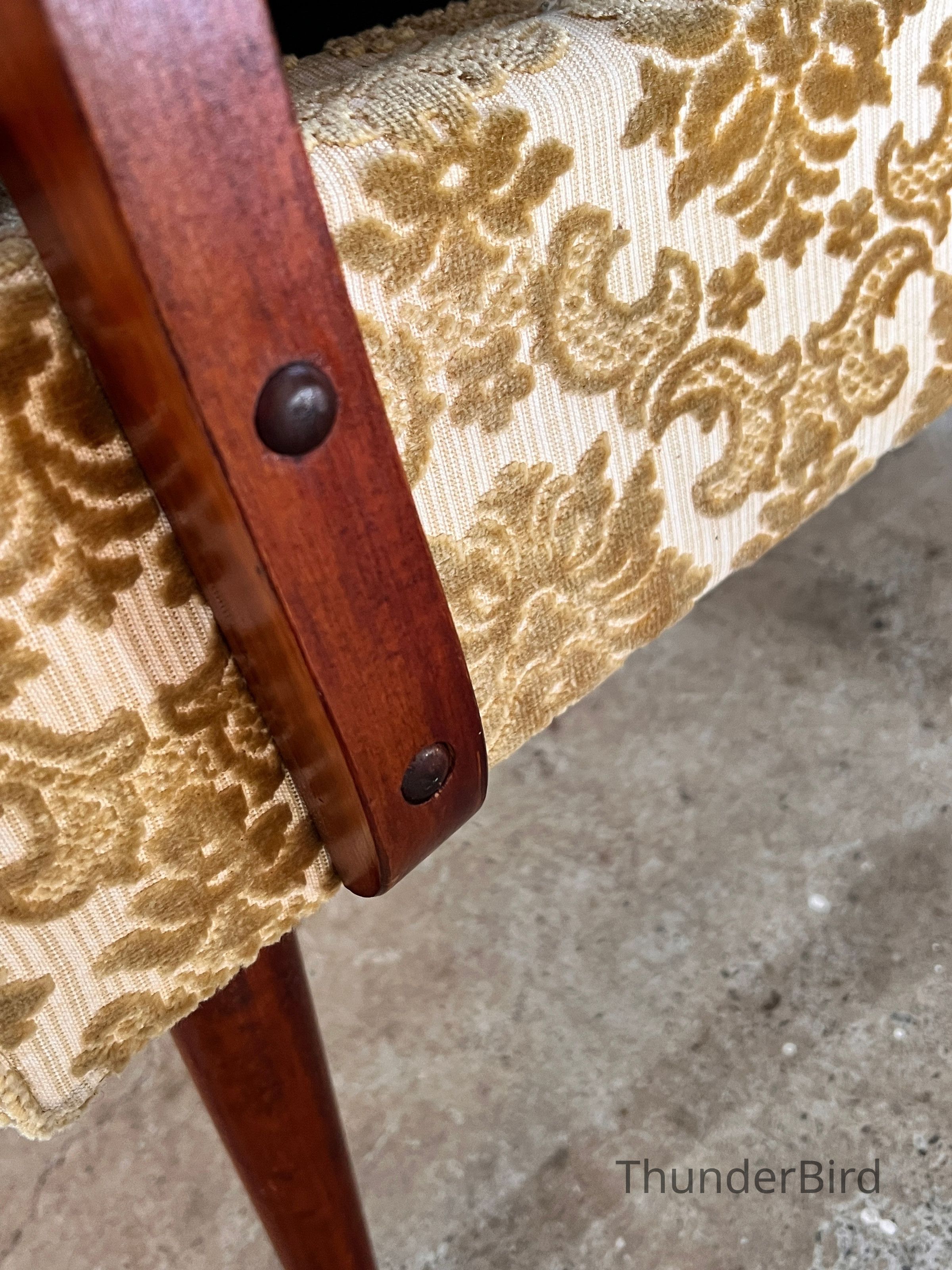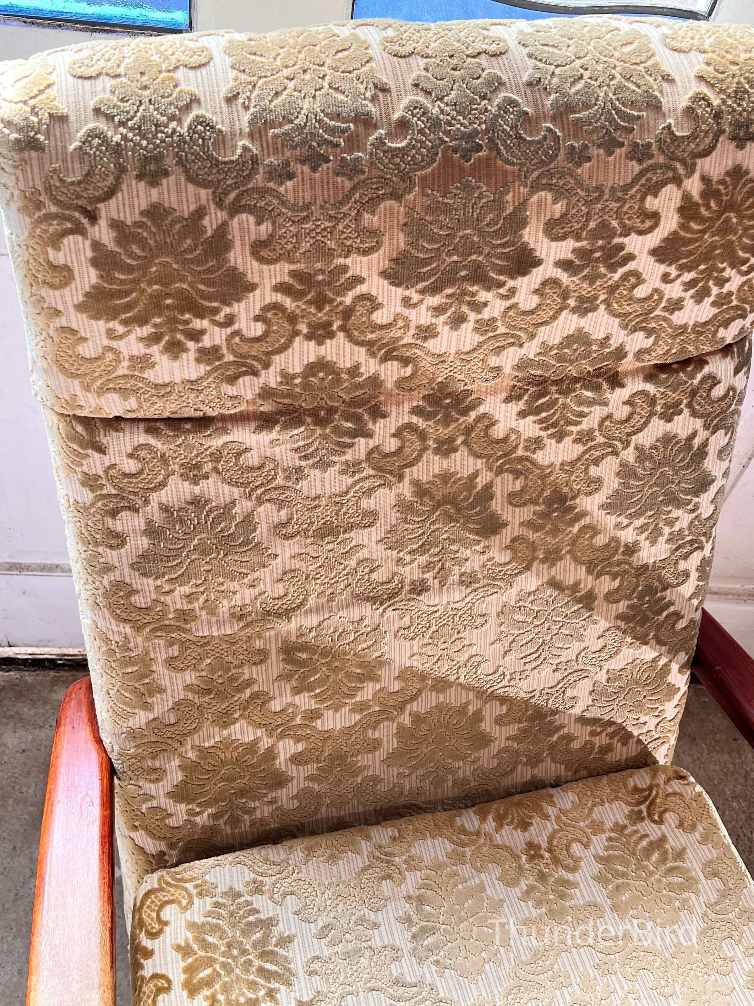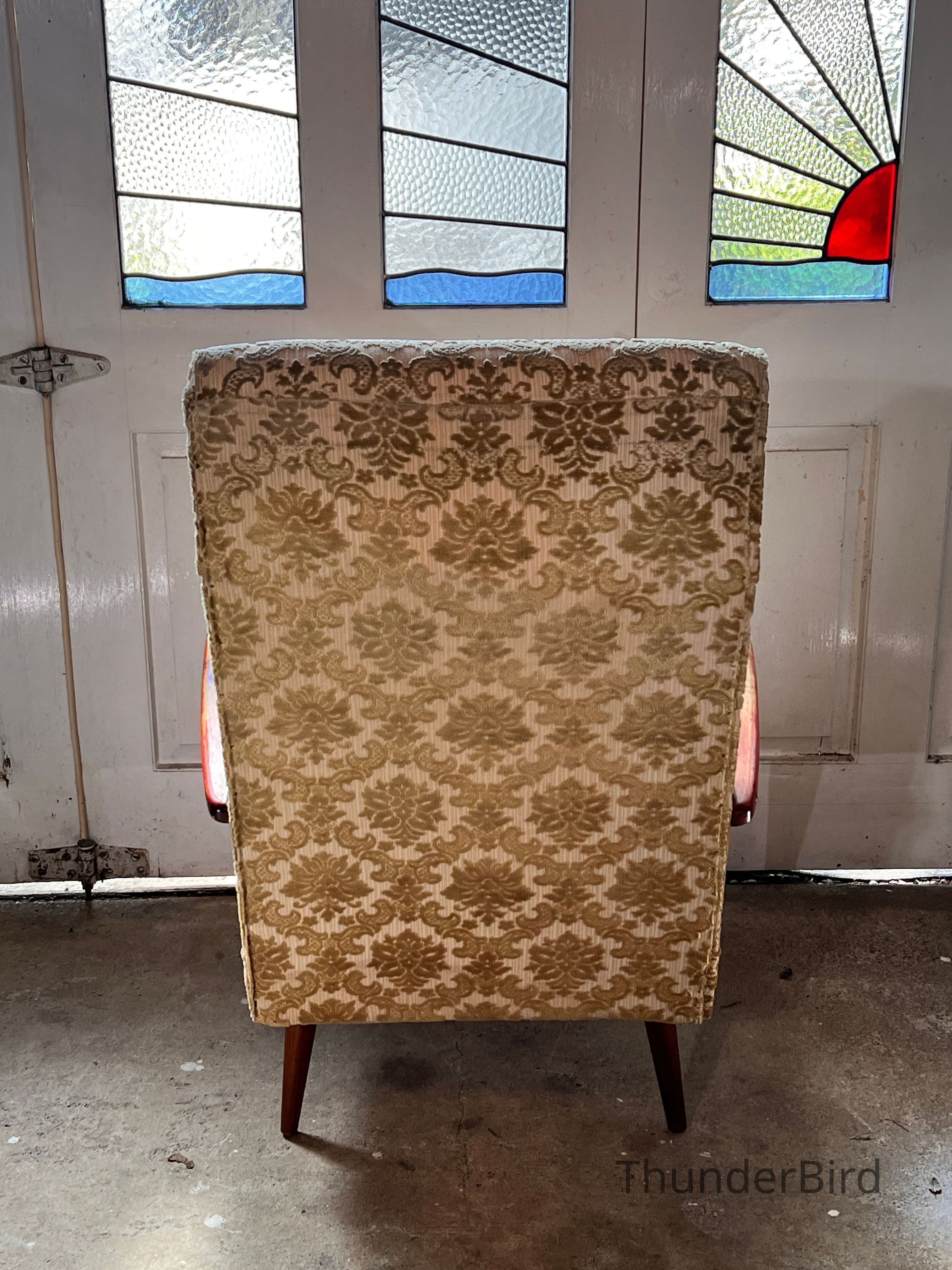 'DIKBILT' [Label] Plush Gold Mid-Century NZ Made 'Contour' Teak Arm ChairEntry/Object ID
