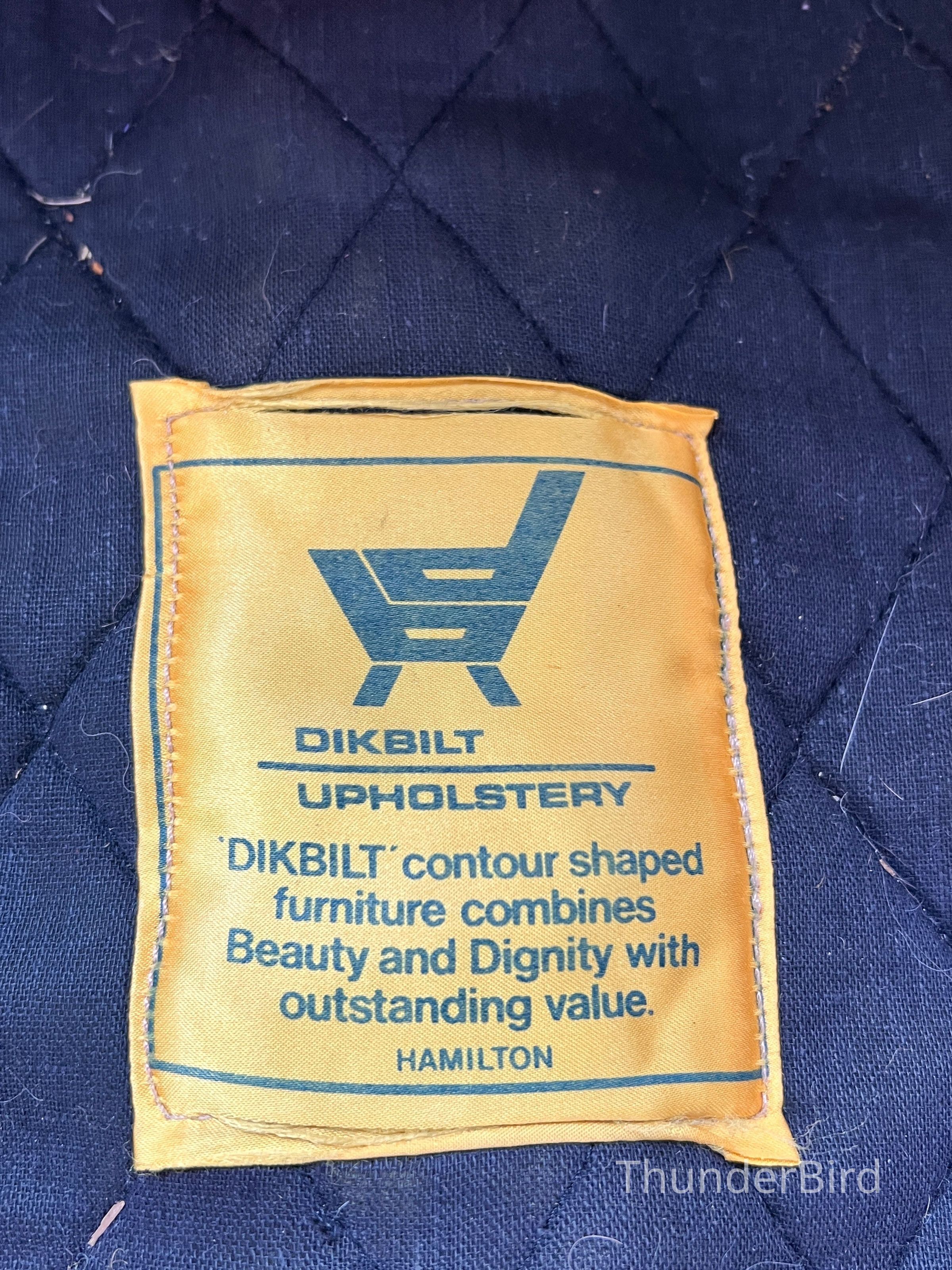 Crafted in New Zealand, this 'DIKBILT contour chair' is a celebration of mid-century design, boasting the warm, rich tones of teak wood. Its original upholstery, with a pattern quintessential of the era, complements the wood's durability and finish. This chair does not merely provide seating; it exudes the mid-century aesthetic we all love. As a blend of comfort and vintage charm, it stands as a distinguished addition to any sophisticated interior.