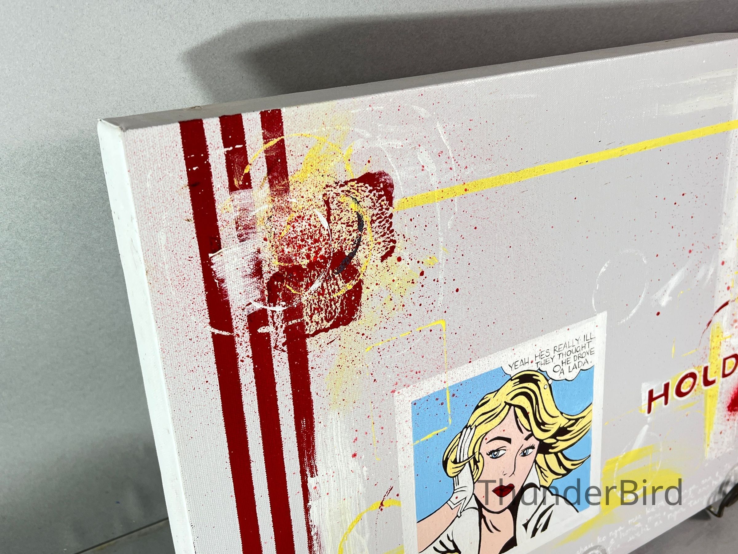 An original NZ painting intertwining vintage Coca-Cola and Holden iconography, Maori text with modern elements, creating a narrative rich in nostalgia and cultural evolution, signed by the artist (I can't read it!).
