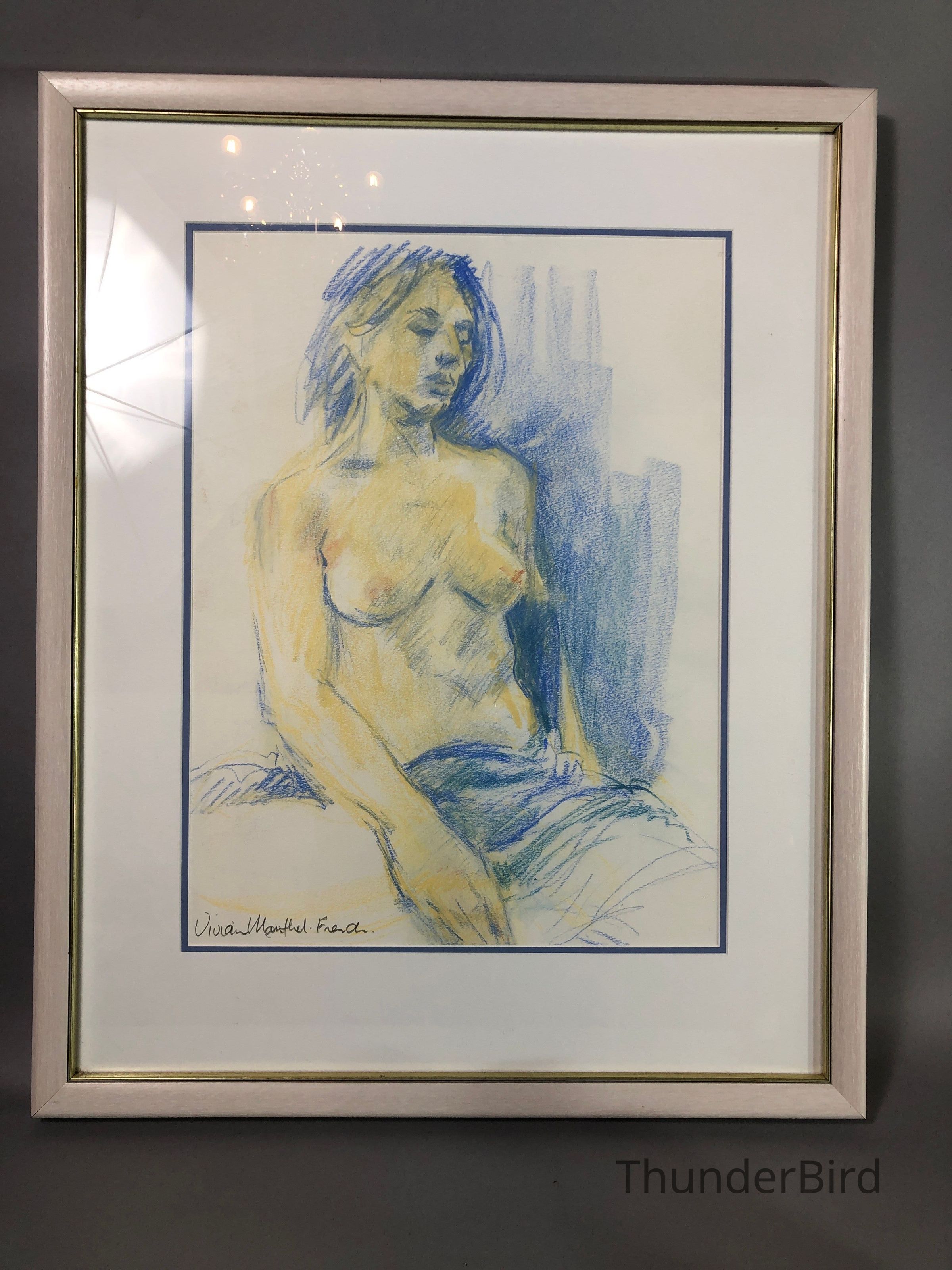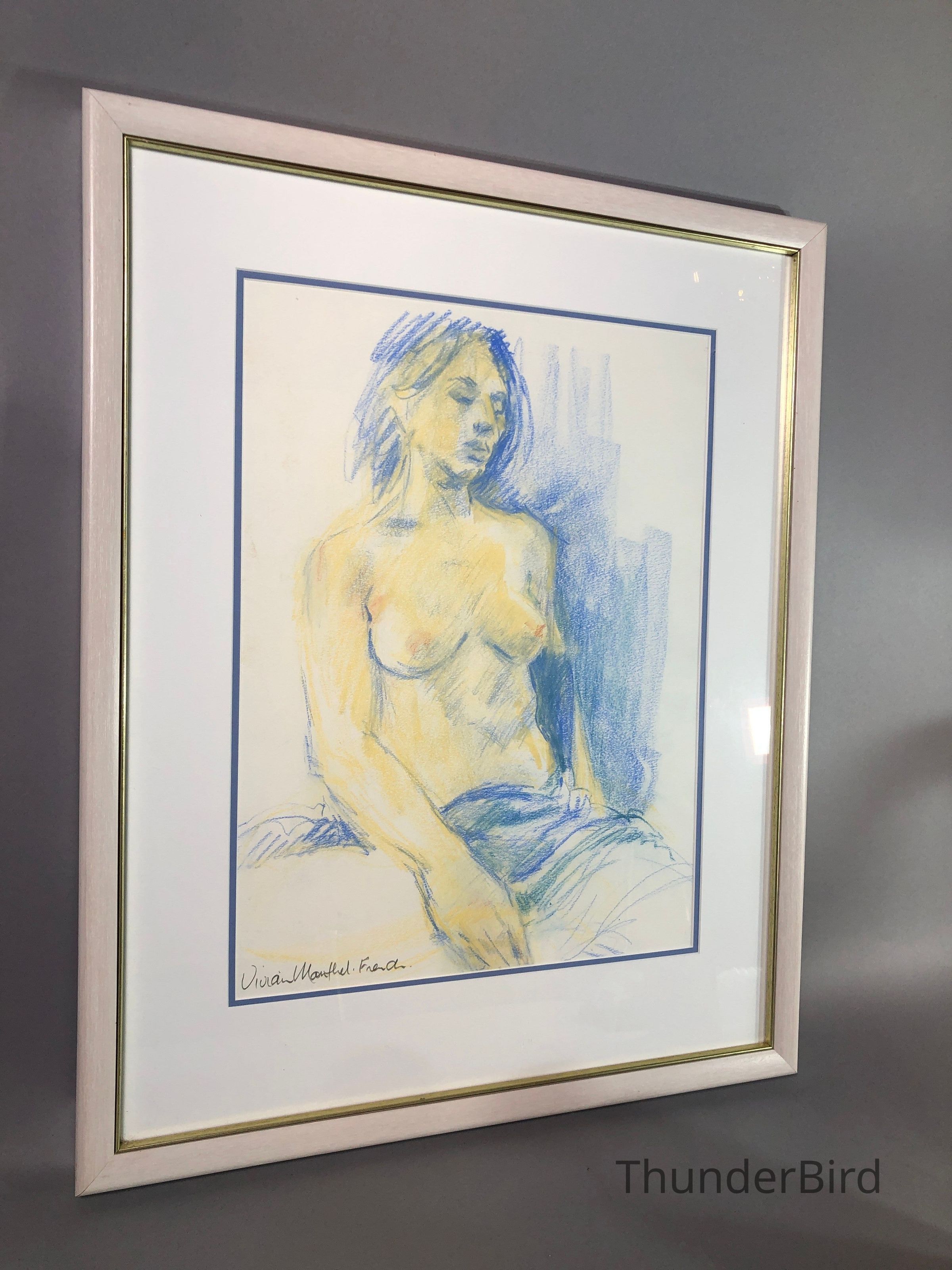 Beautiful Original Nude by New Zealand artist Vivian Manthel-French showcases exceptional skill and artistic mastery. This professionally framed piece highlights its beauty and intricate details. Rendered with apparent expertise, the artwork seems to be created using pastels. A notable original price on the back of $695. Vivian Manthel-French's stature as an Artist Member of the New Zealand Academy of Fine Arts and her significant role in art societies like the Wellington Watercolour Society underline her influence in the artistic world. With global exhibitions and an esteemed legacy, her work is a treasured addition to any collection.