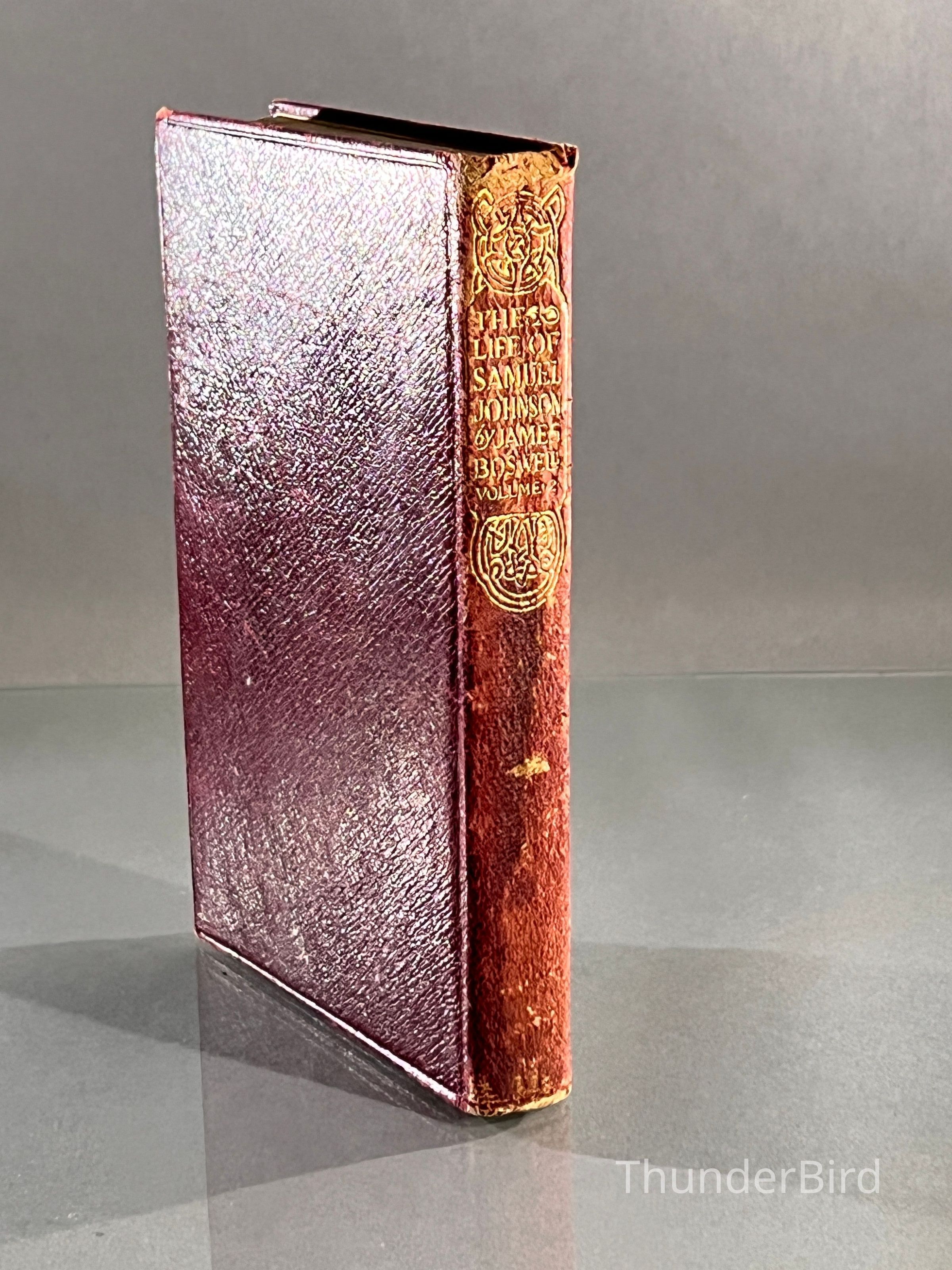 This 1925 edition of The Life of Samuel Johnson by James Boswell is a timeless classic, beautifully bound in a rich, burgundy cover with gold embossed emblems. As one of the most celebrated biographies in English literature, Boswell’s account offers an intimate portrayal of the life and character of Samuel Johnson. This compact edition is ideal for collectors of vintage literature or anyone with an appreciation for early 20th-century bookbinding.