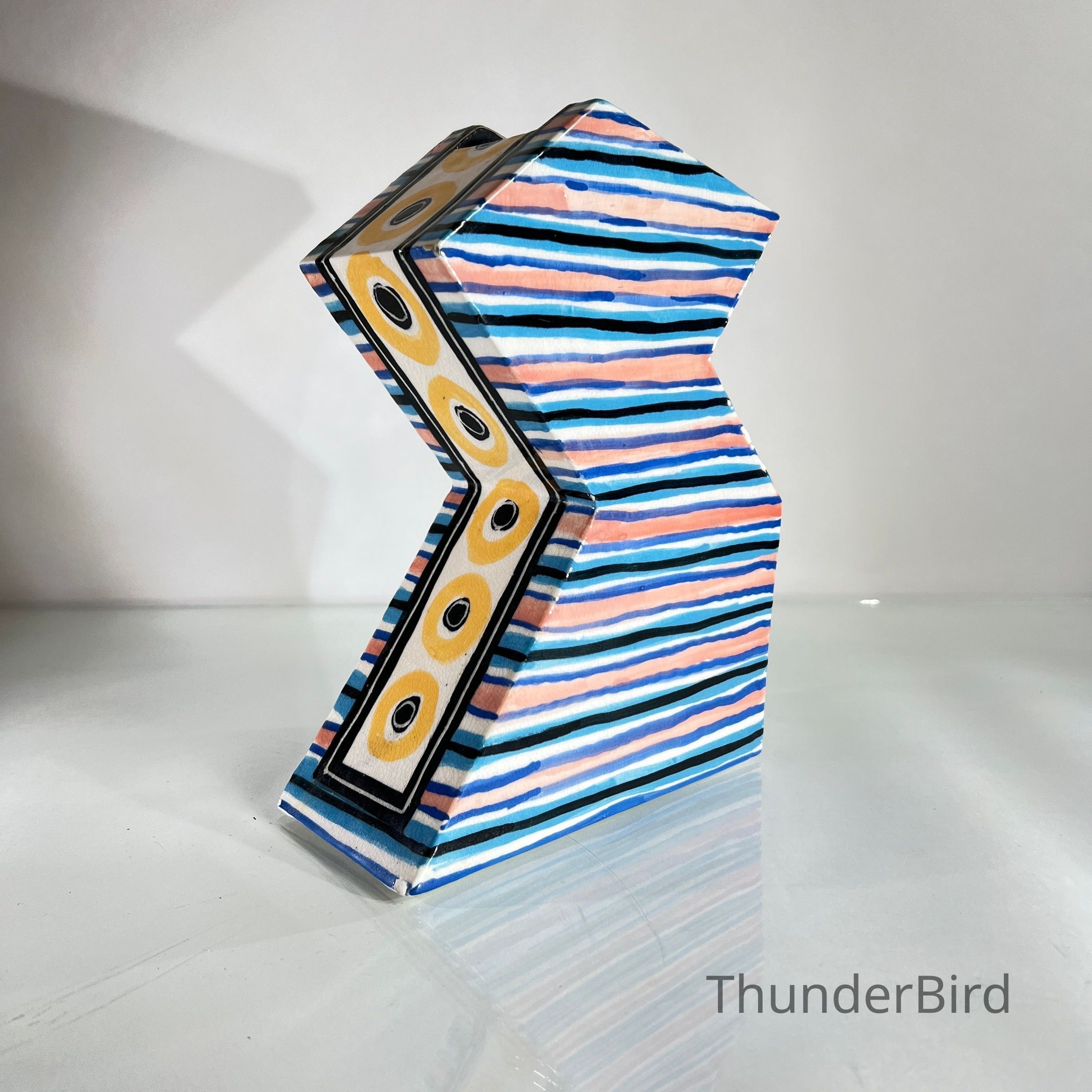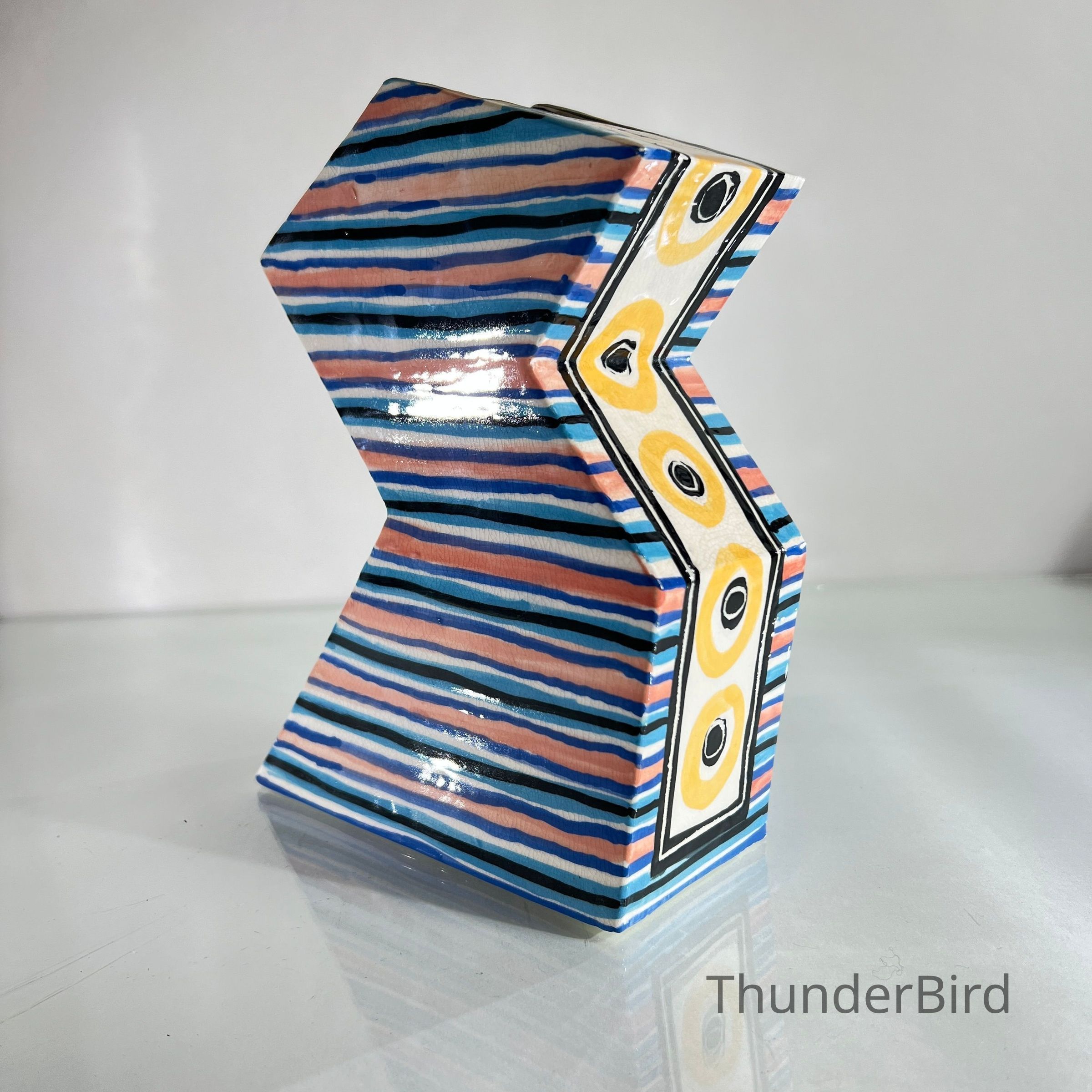 20.5.25I Postmodern Hand-painted Ceramic Vase | Zigzag Form | Memphis Milano StyleEntry/Object ID