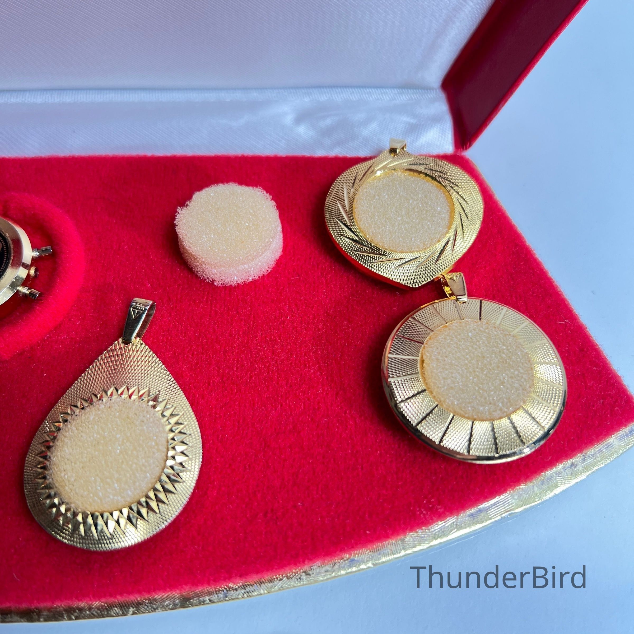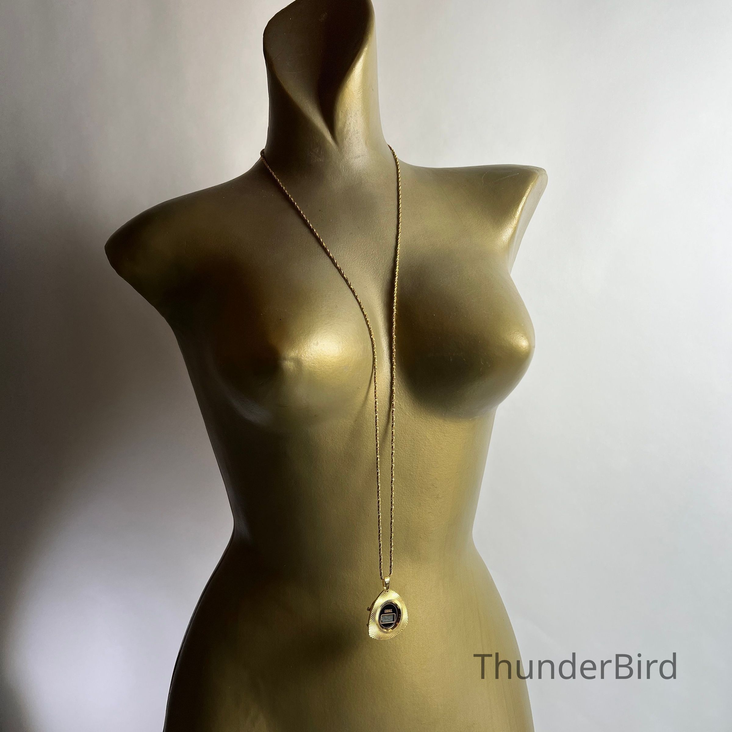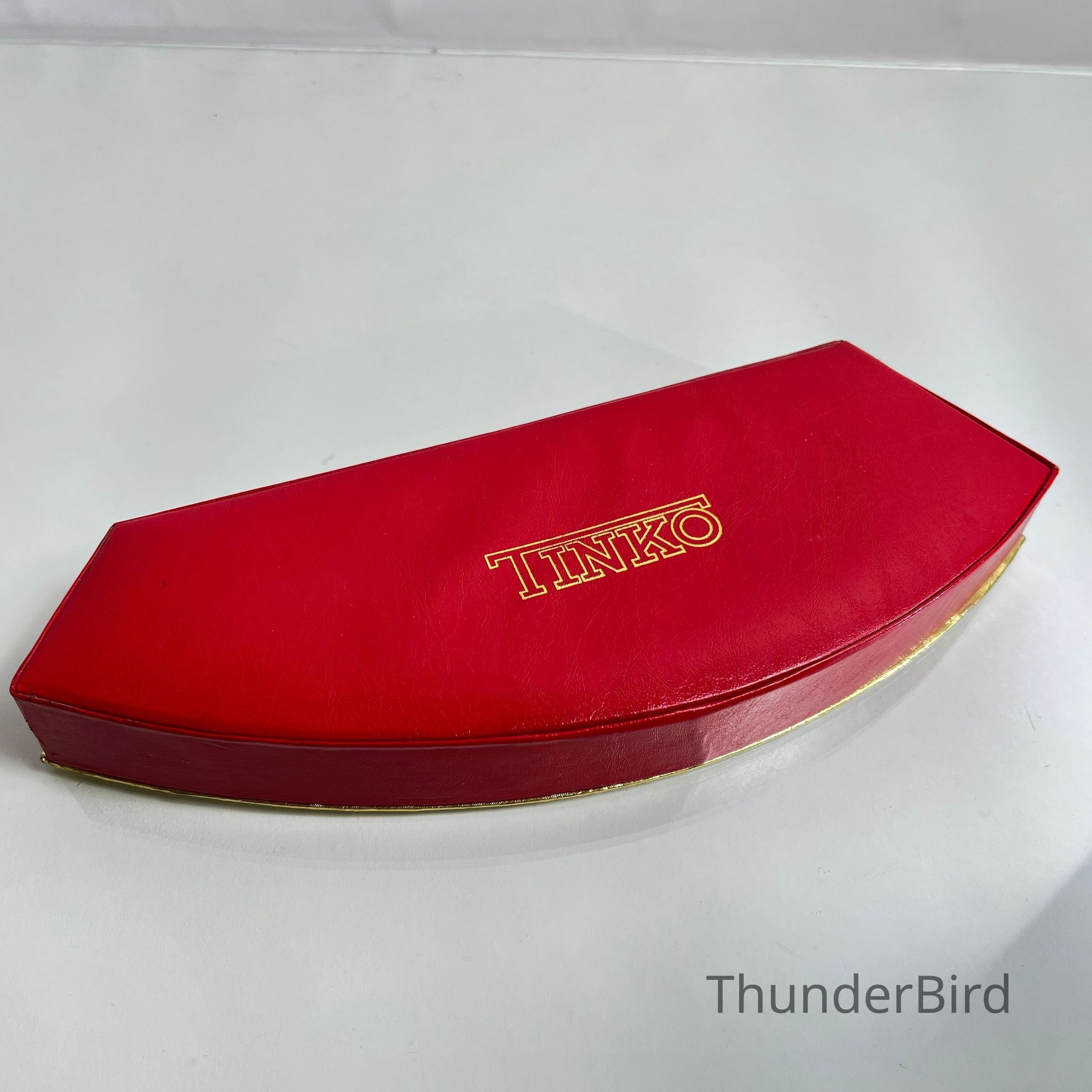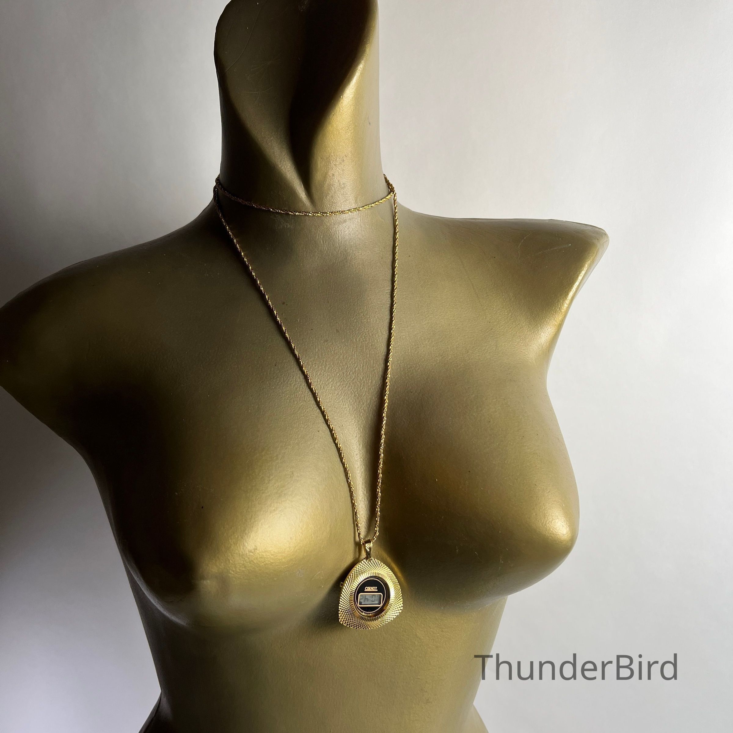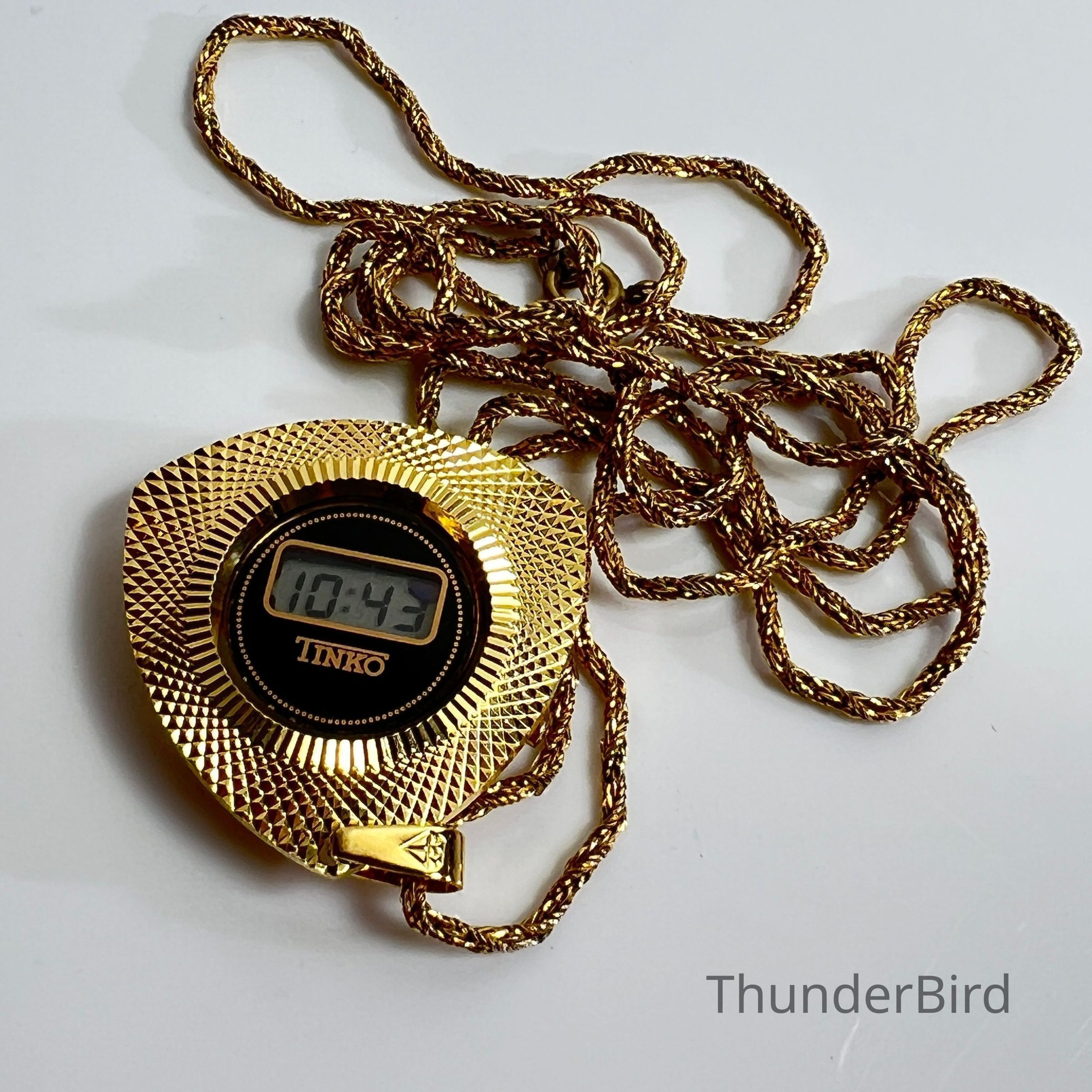 A complete cased set of the TINKO Convertible VII digital pendant watch, made in Hong Kong circa 1970s. This innovative jewellery-watch hybrid features a central digital timepiece module with interchangeable gold-tone pendant frames and a rope-style necklace chain. Set includes 1 digital timepiece, 1 chain, and 7 decorative pendant attachments, all presented in the original fitted red vinyl case with gold detailing. Pretty cool!!