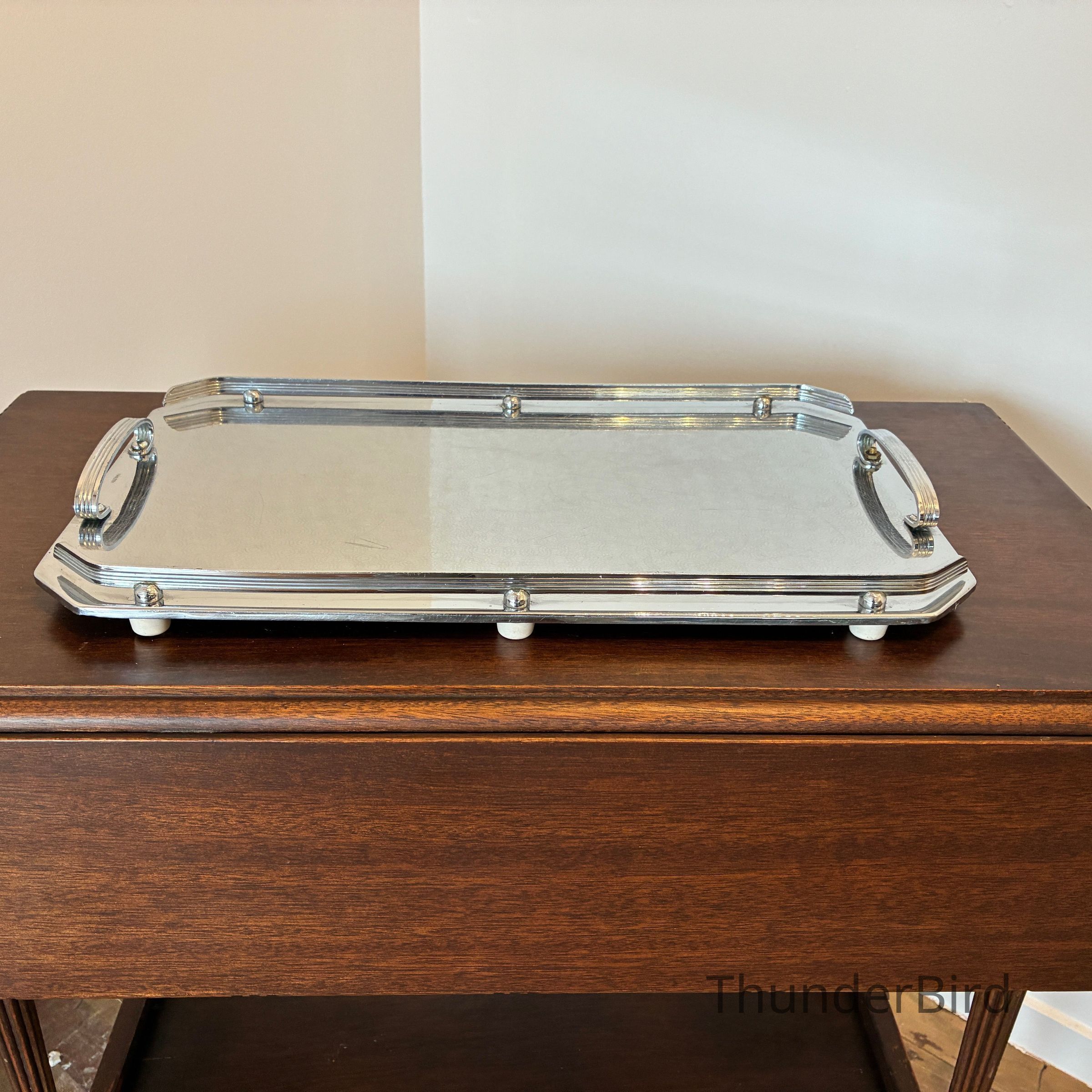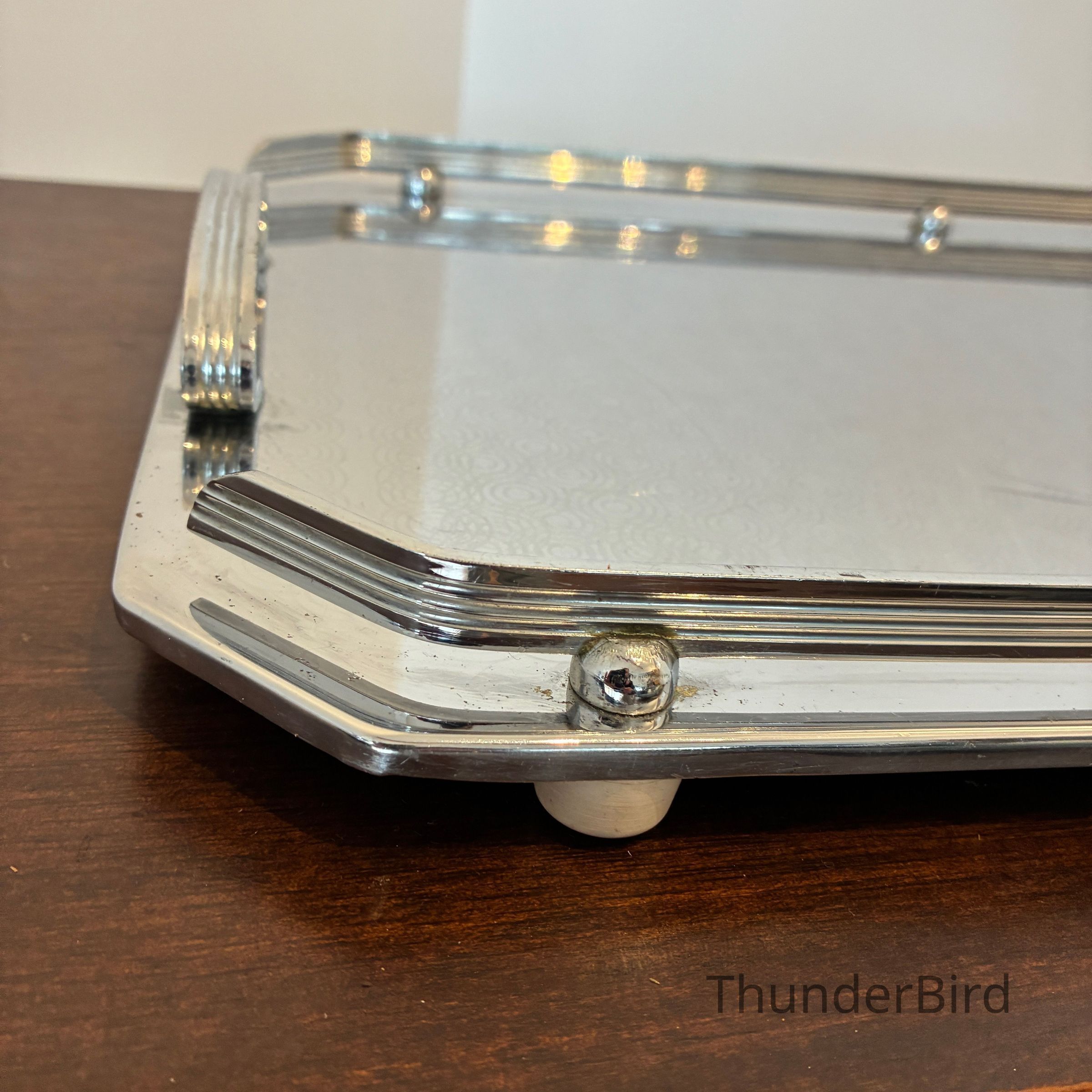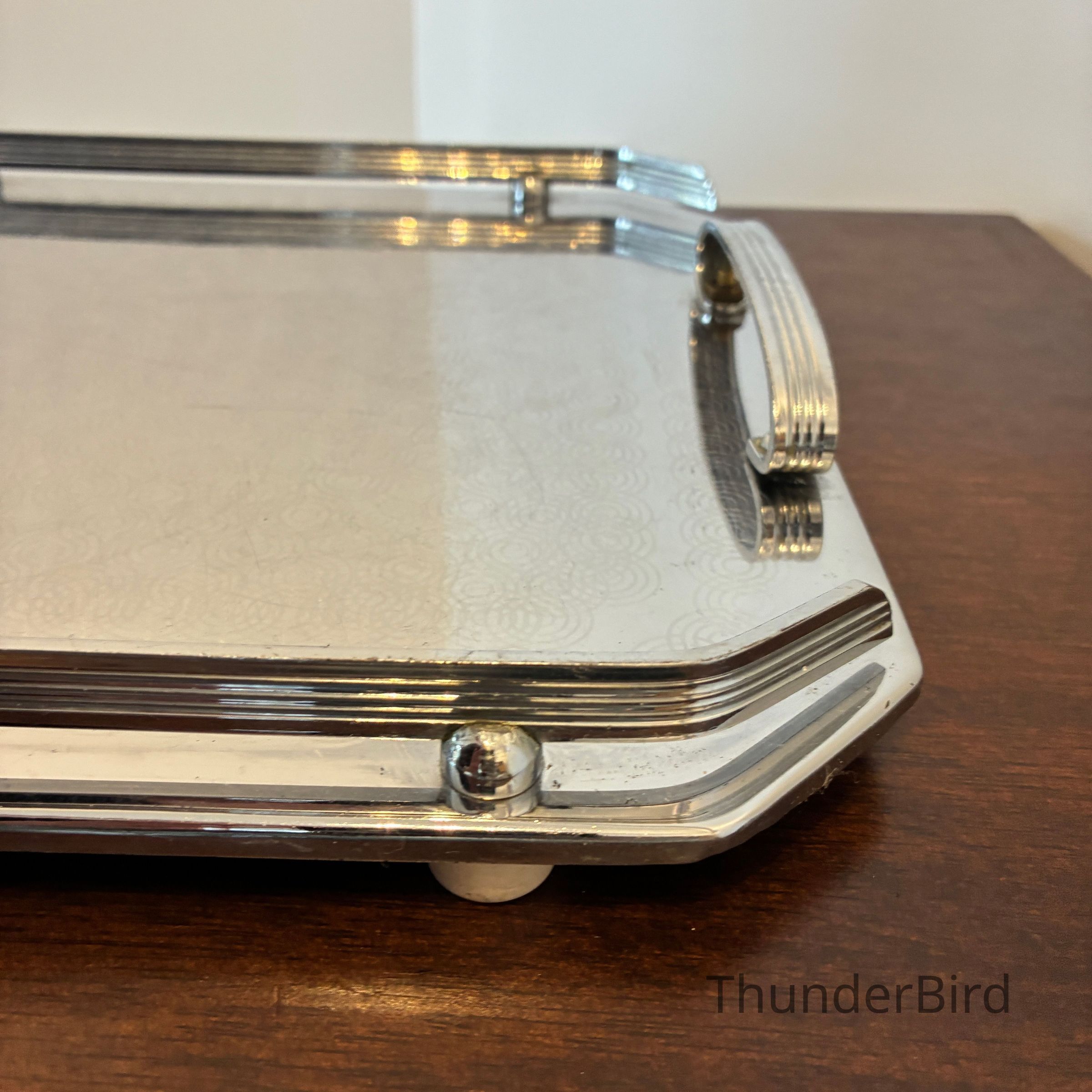 An original Art Deco chrome tray by Ranleigh, featuring classic geometric styling and clean, modernist lines.